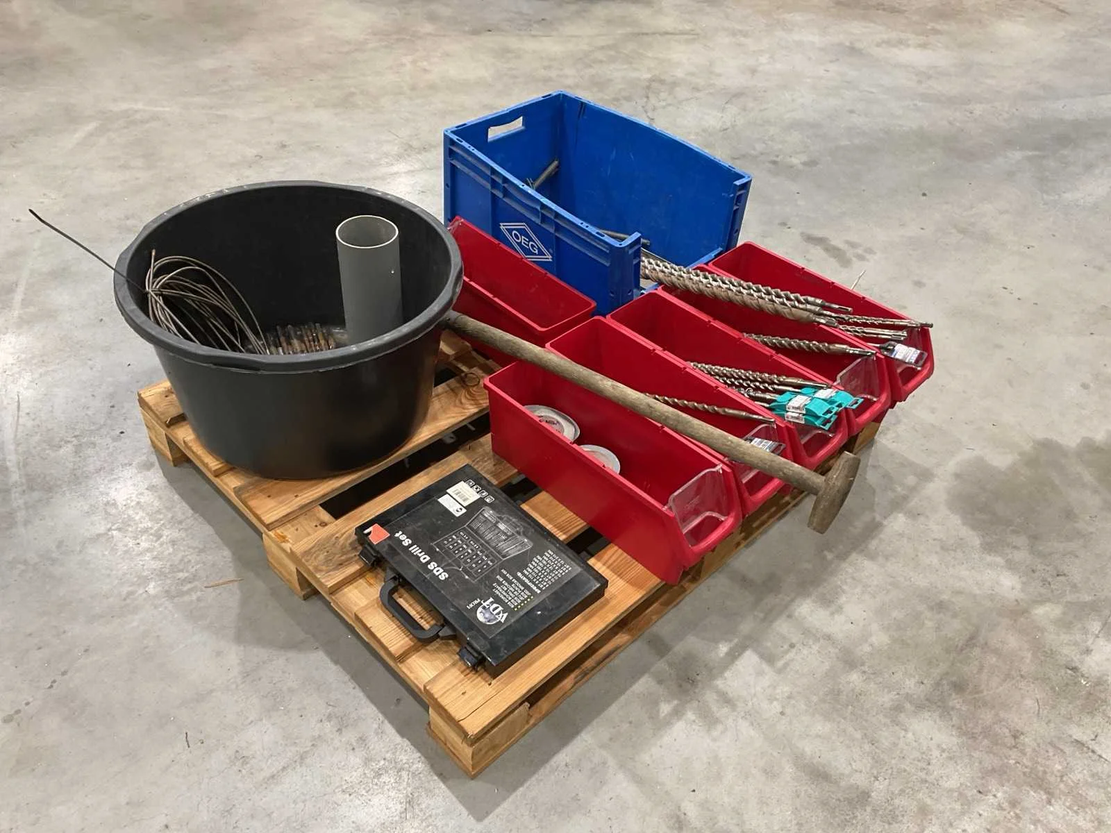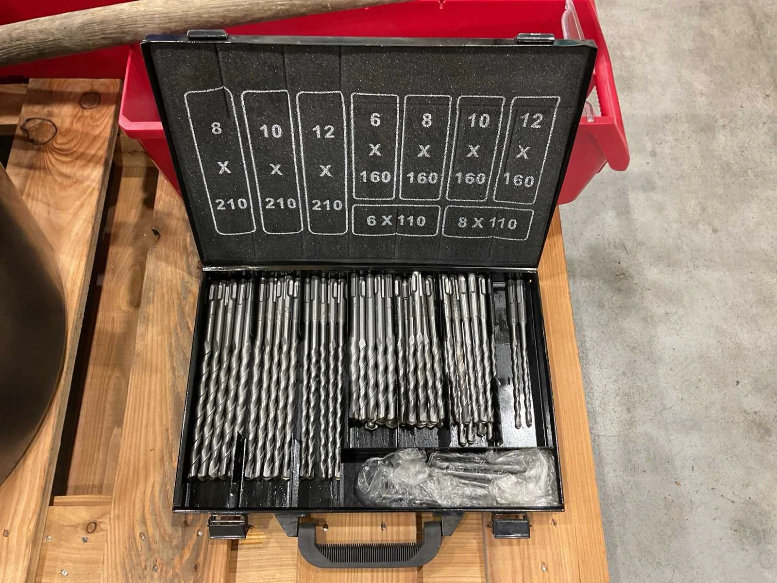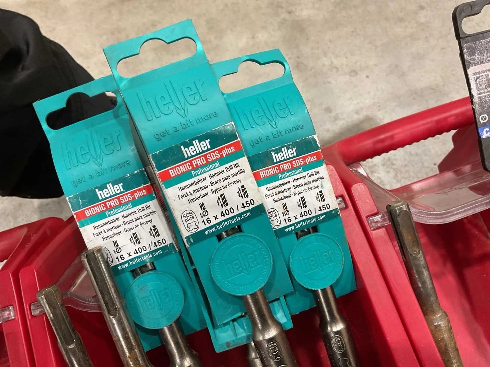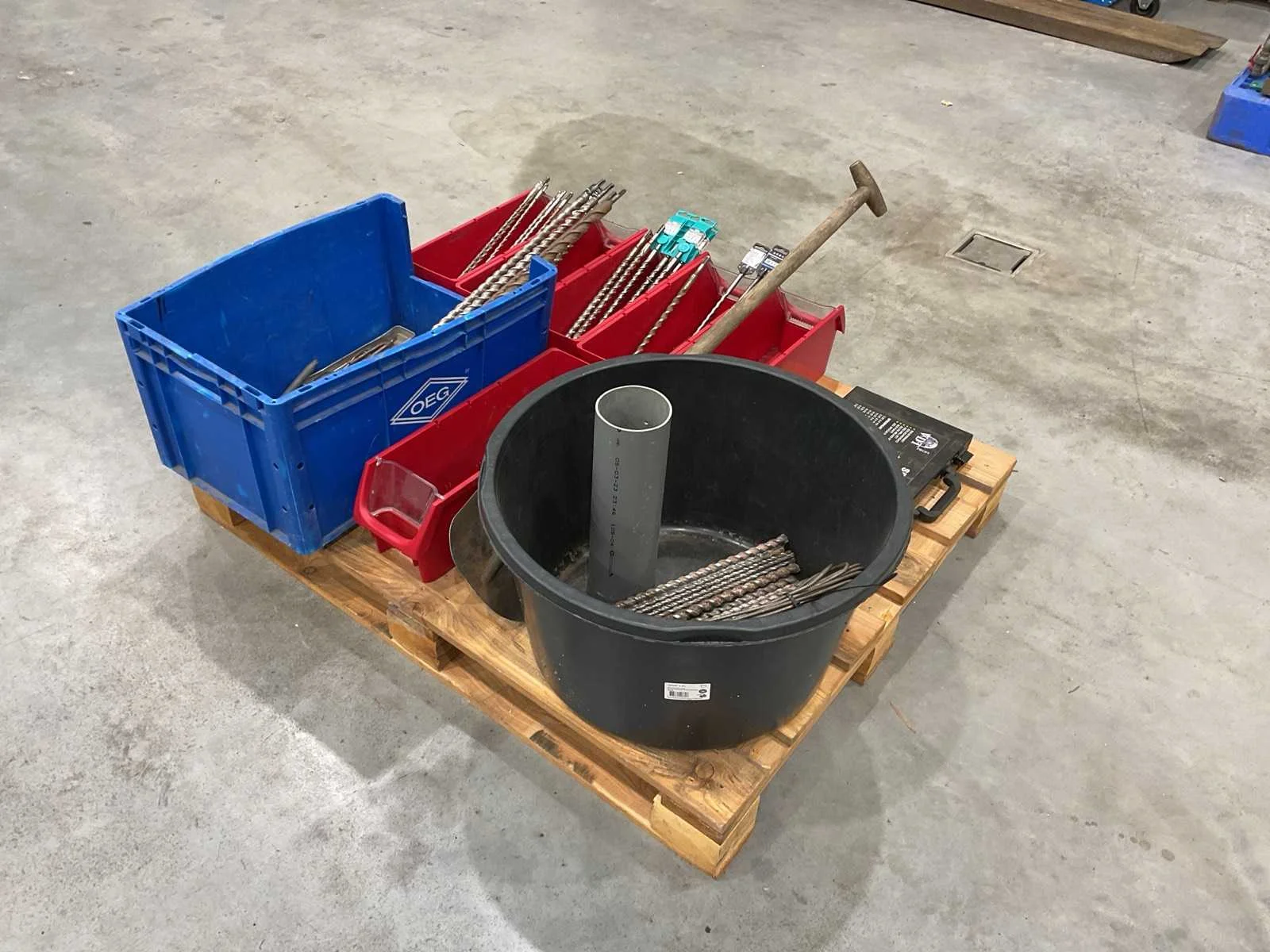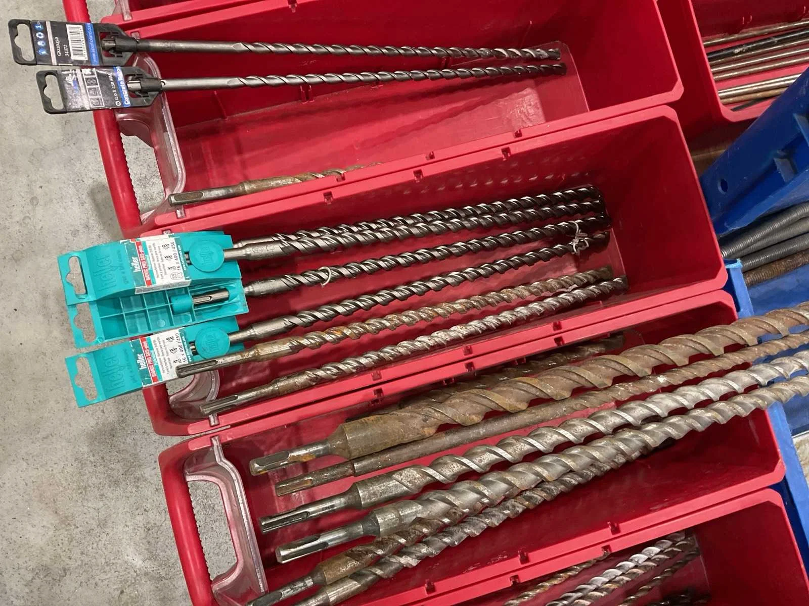 Meerdere steenboren gebruikt en nieuw; div lengtes; incl bakken SDS fitting: true Lengte: 1000mm Breedte: 1200mm