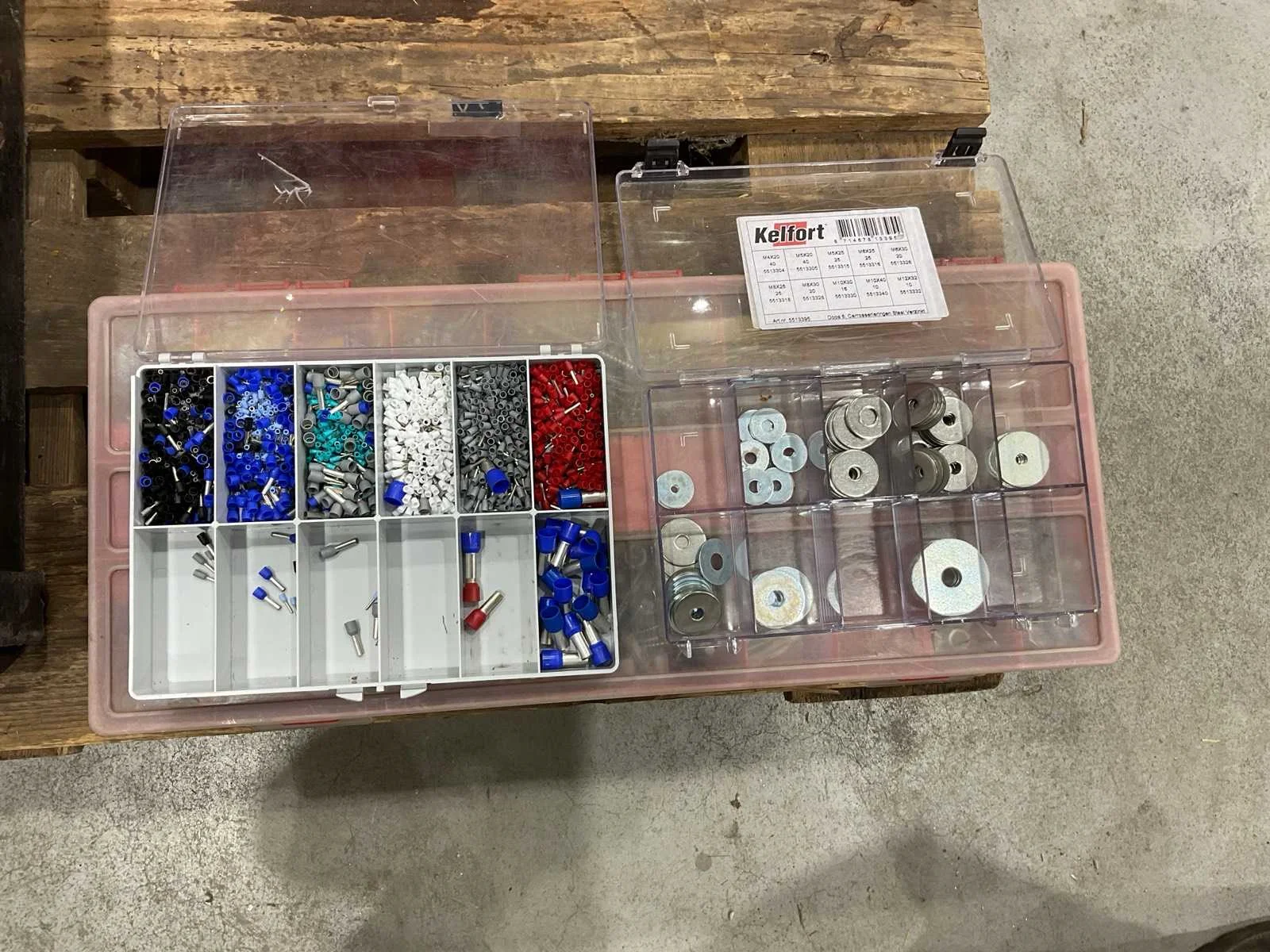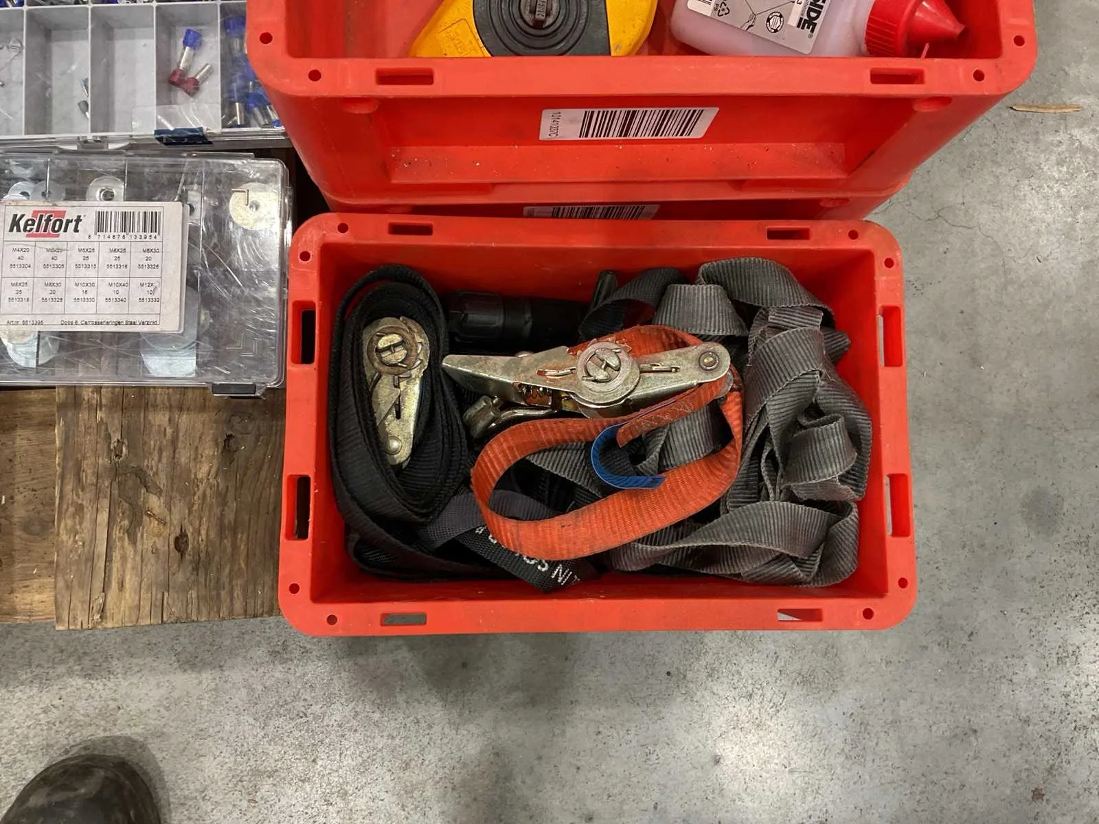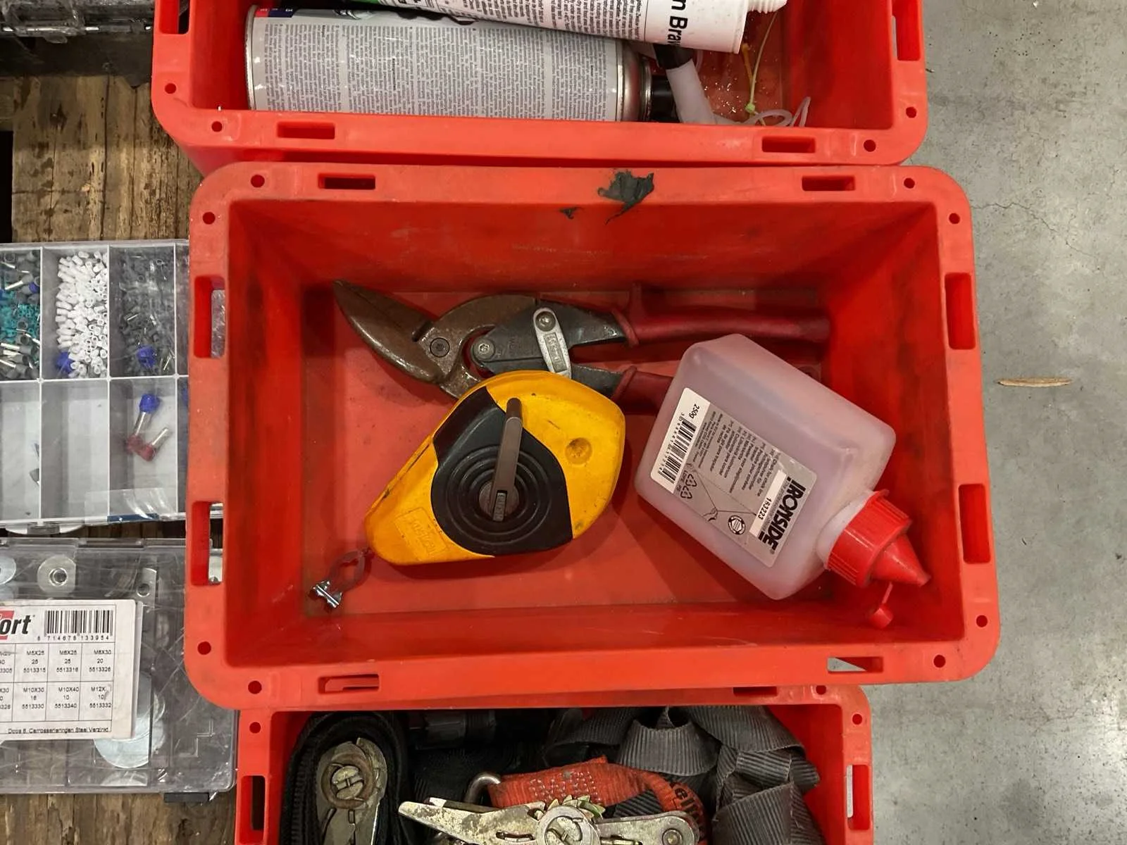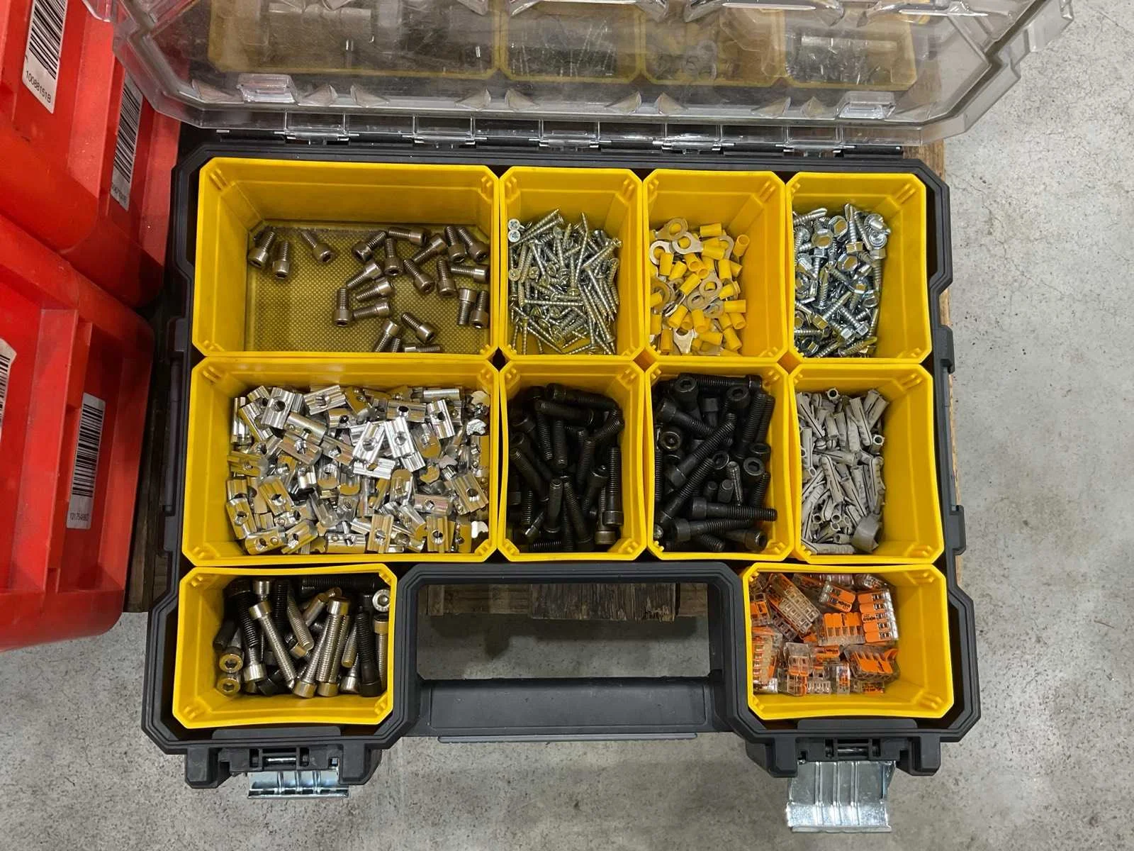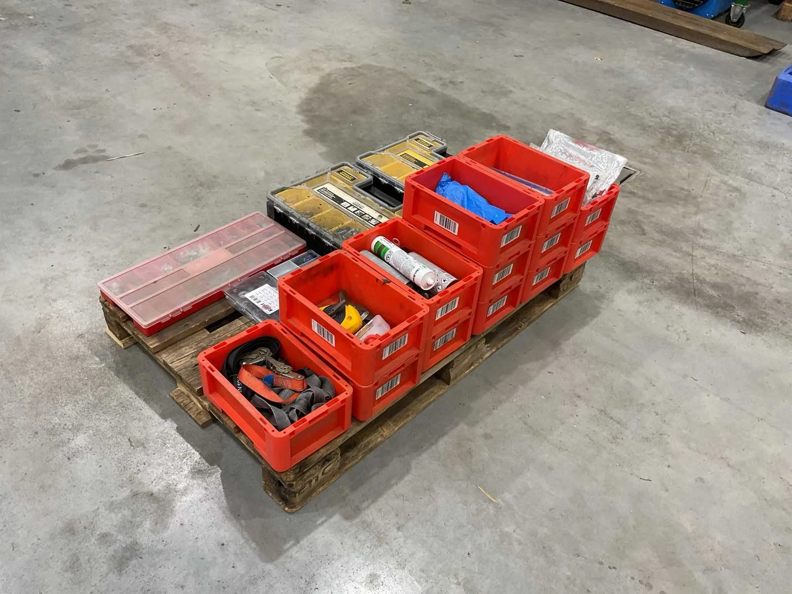 Voorzien van. 5x assortiment koffer met inhoud; div bakjes; Merk: Stanley Afmeting l: 1200mm Afmeting b: 800mm