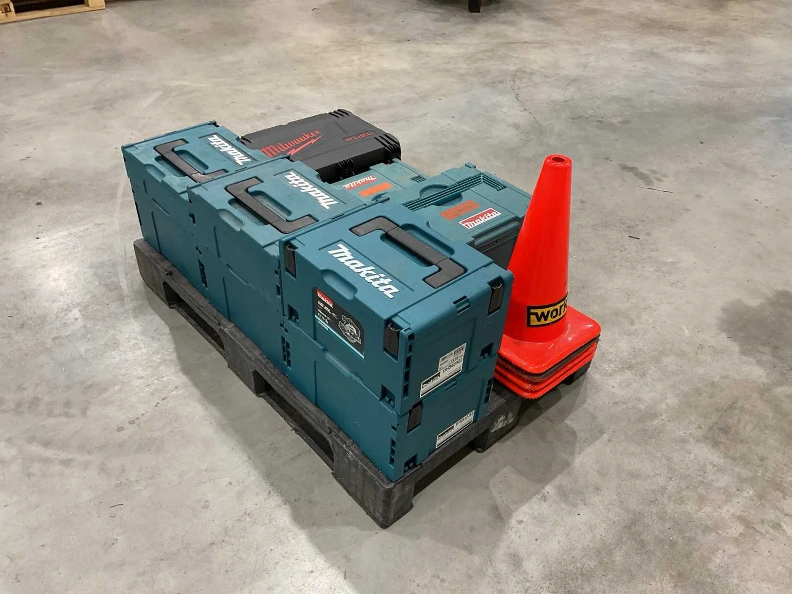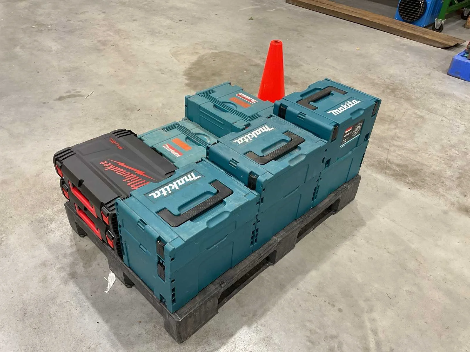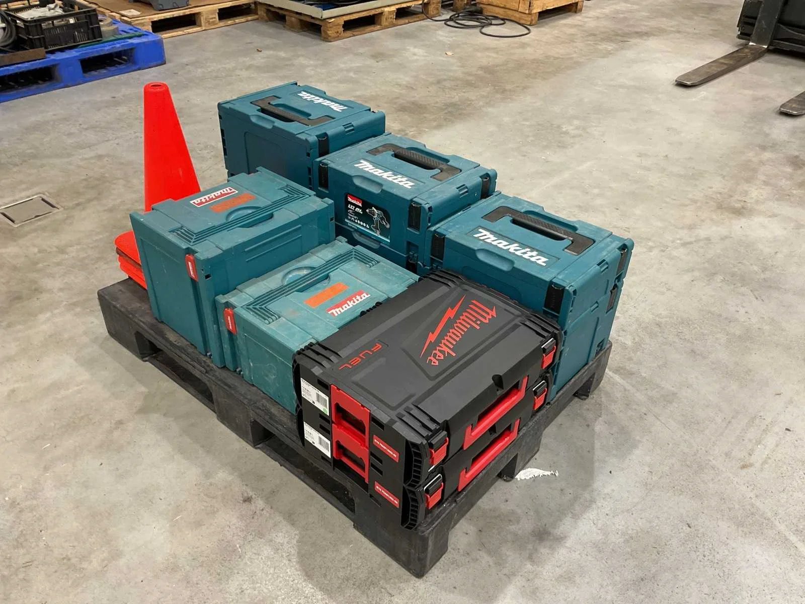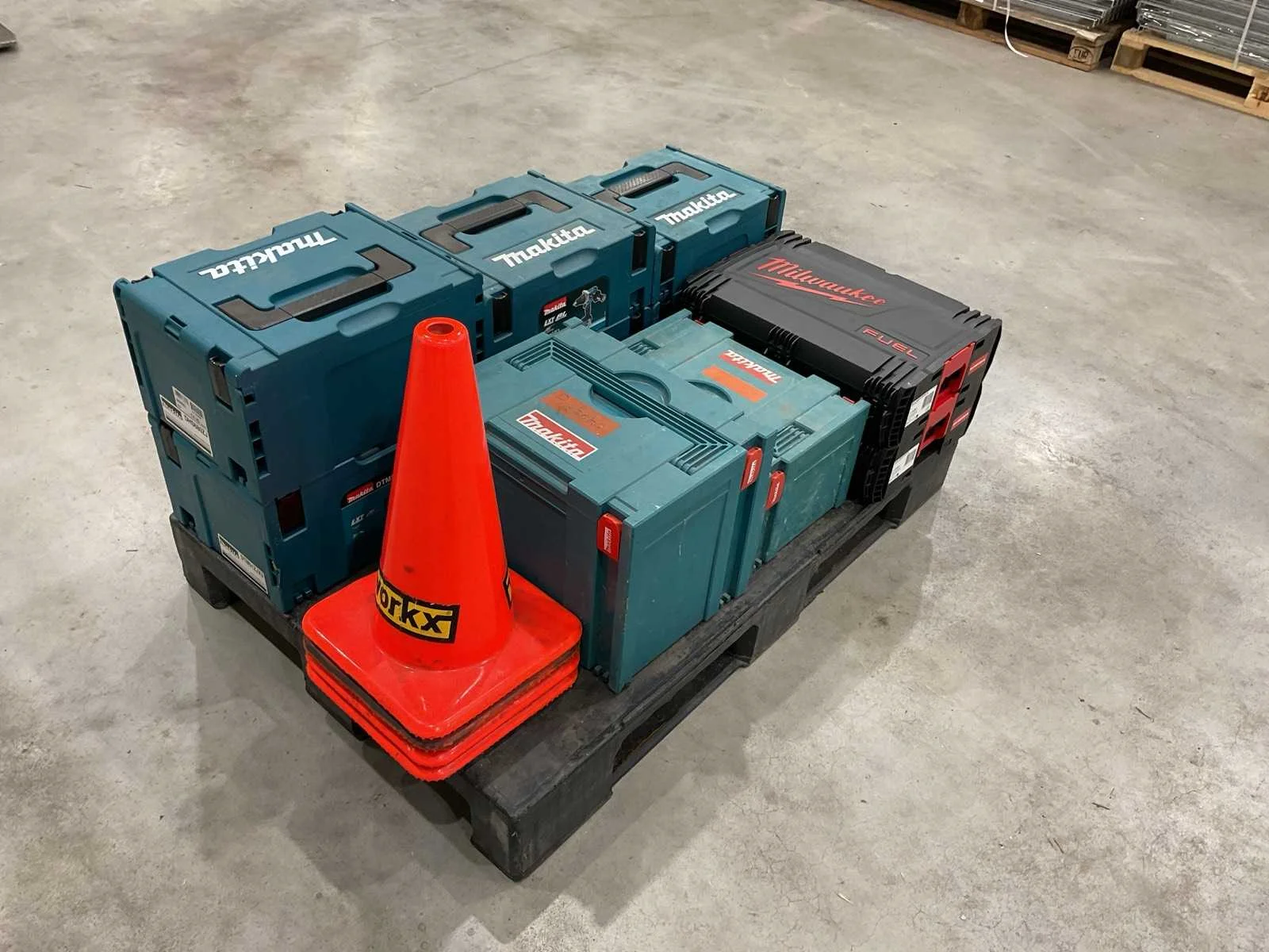 Voorzien van. 8x makita koffer; 2x milwaukee koffer; 4x afzetpion Kunststof: true Afmeting l: 1200mm Afmeting b: 800mm Afmeting h: 600mm