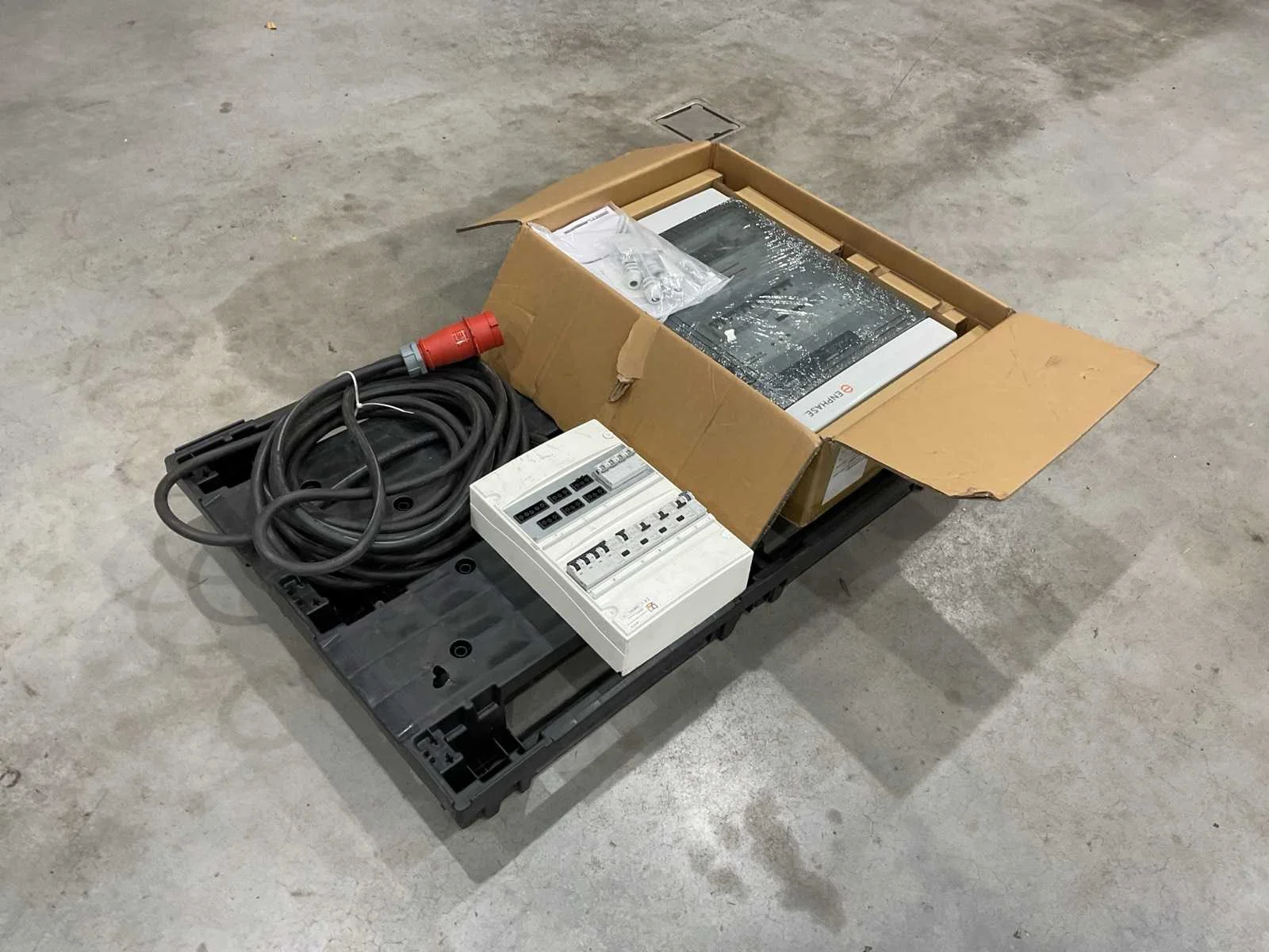 Voorzien van. 1x afmeting L:600 B:400 H:150; 1x afmeting L:360 B:250 H:120 Merk: Enphase Kleur: Wit Lengte: 120cm Breedte: 80cm Hoogte: 35cm