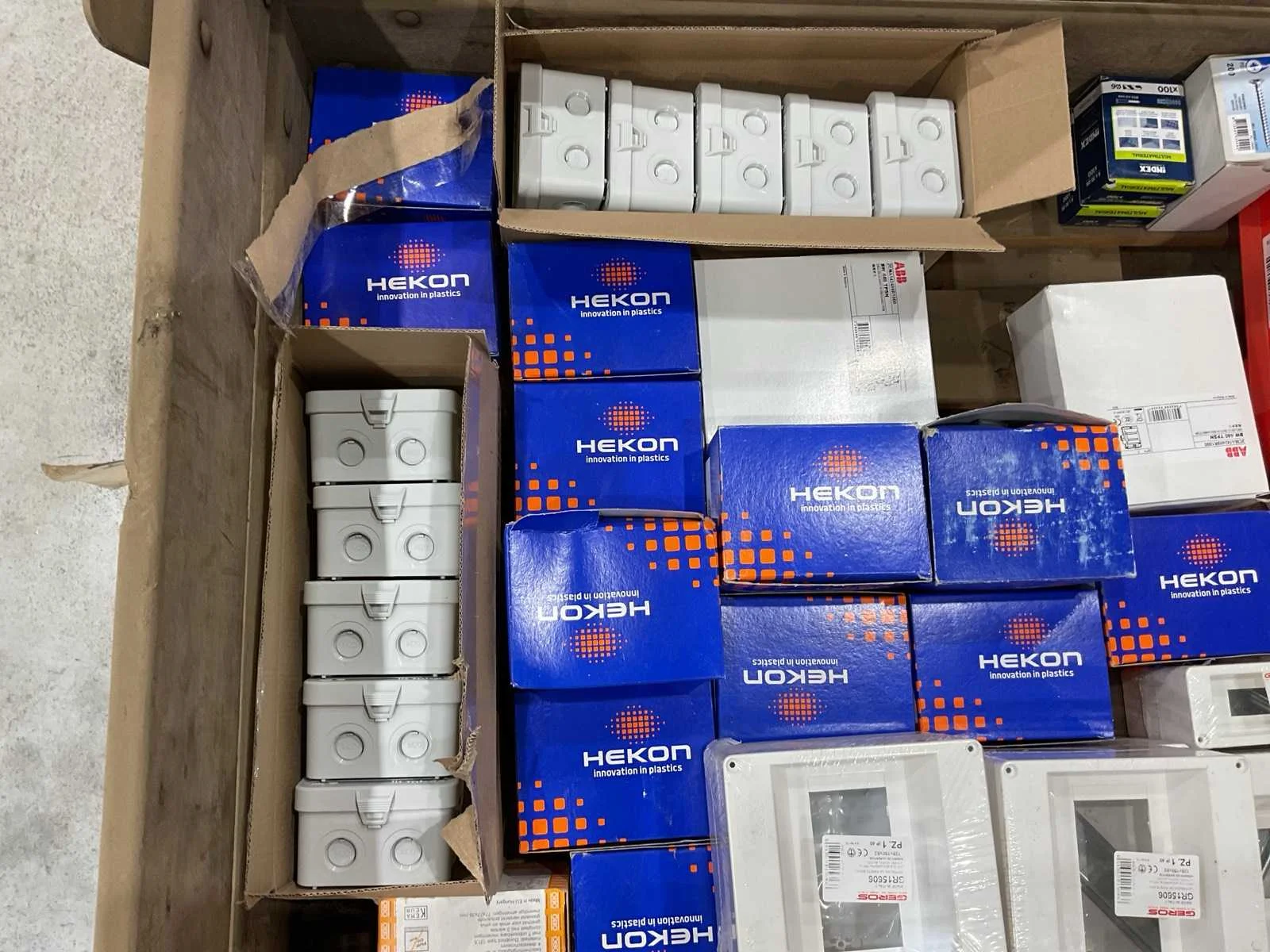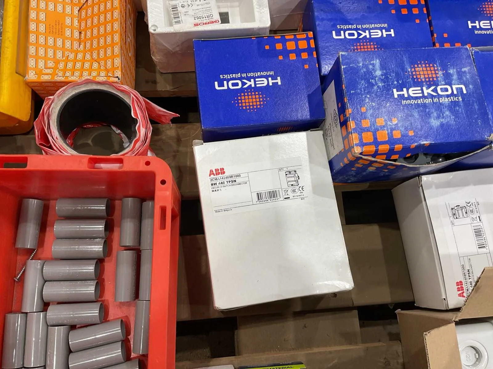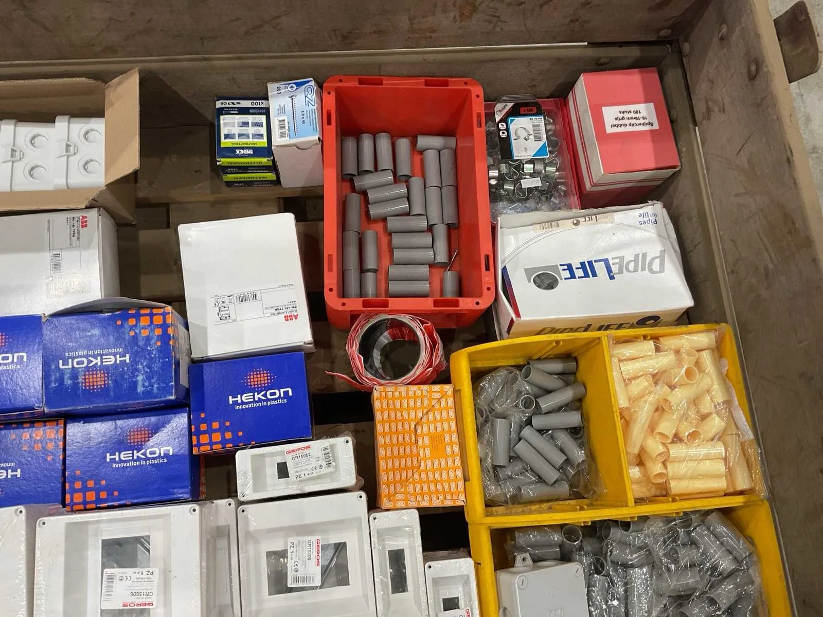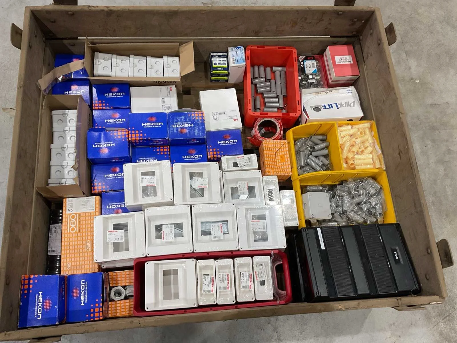 Voorzien van. Div kastjes; klemmen;
