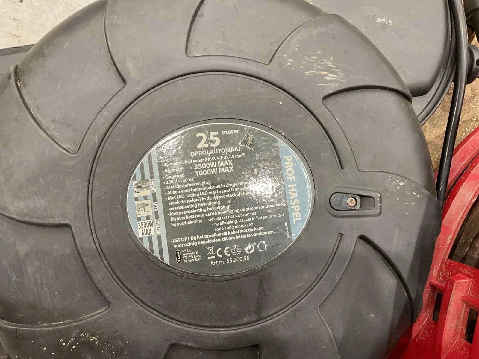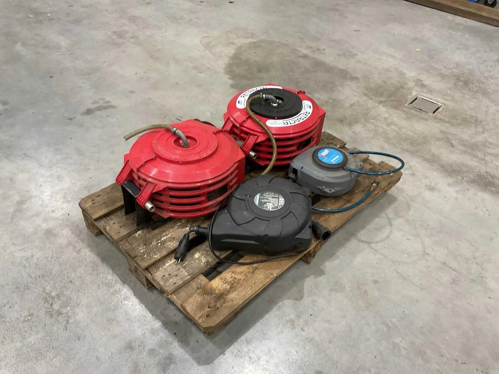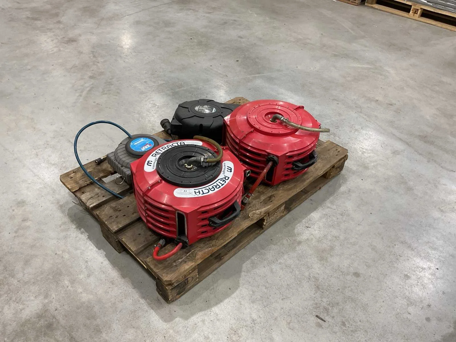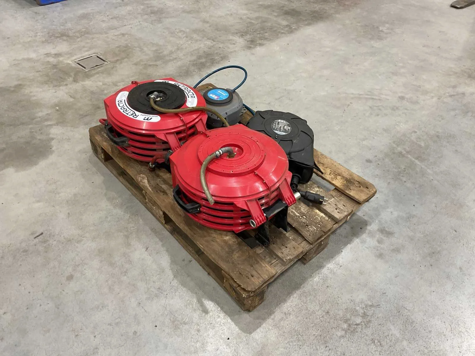 Voorzien van. 3x luchthaspel; 1x stroom 230v haspel Merk: Retracta Lengte: 120cm Breedte: 80cm Hoogte: 45cm