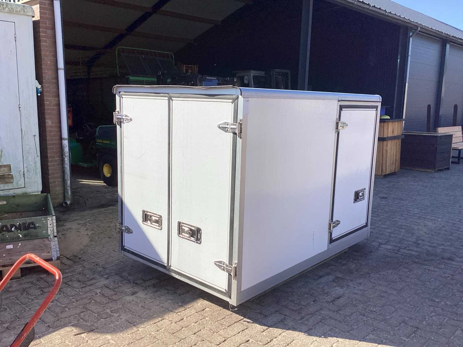 Voorzien van. Aluminium traanplaat bodem; bakhaken; zij deur; achter deuren Lengte: 225cm Breedte: 145cm Hoogte: 170cm