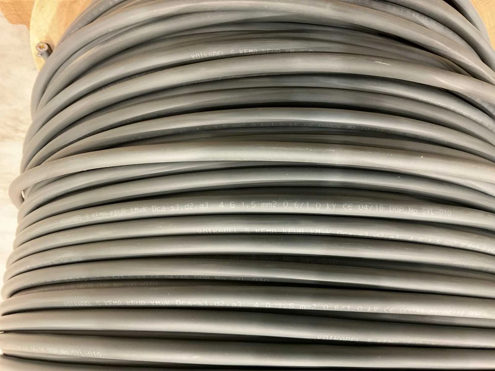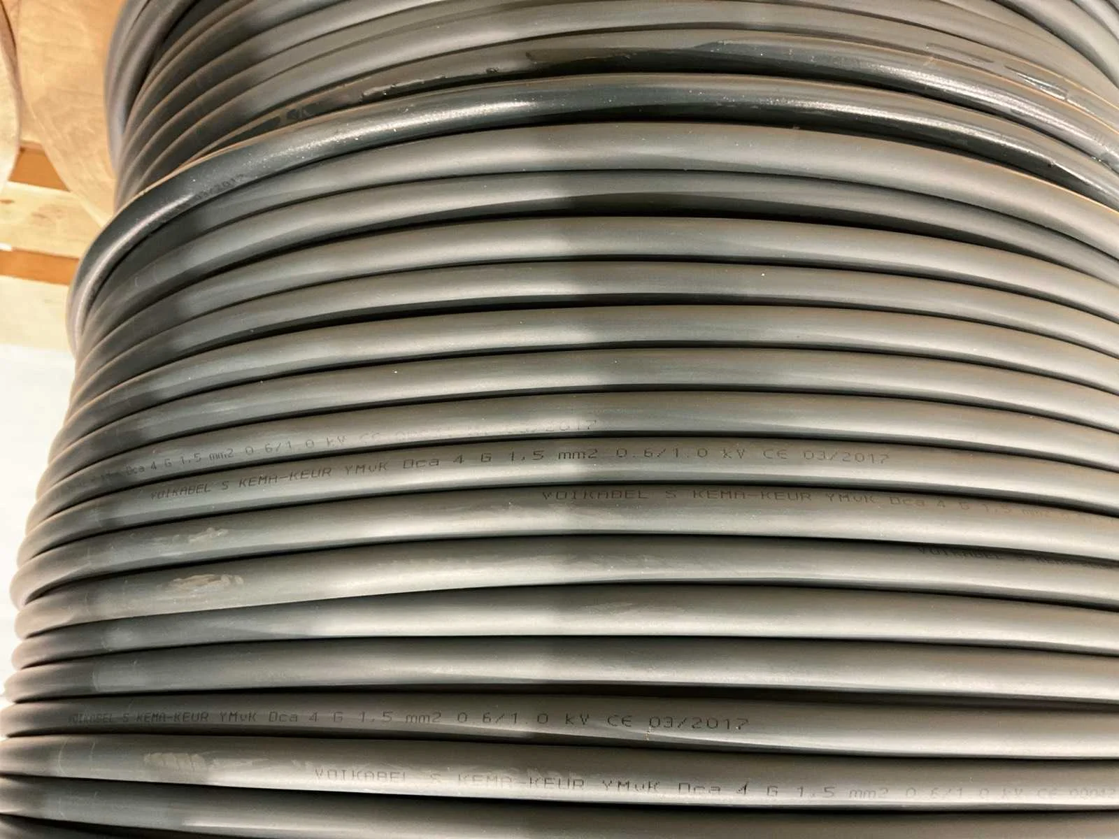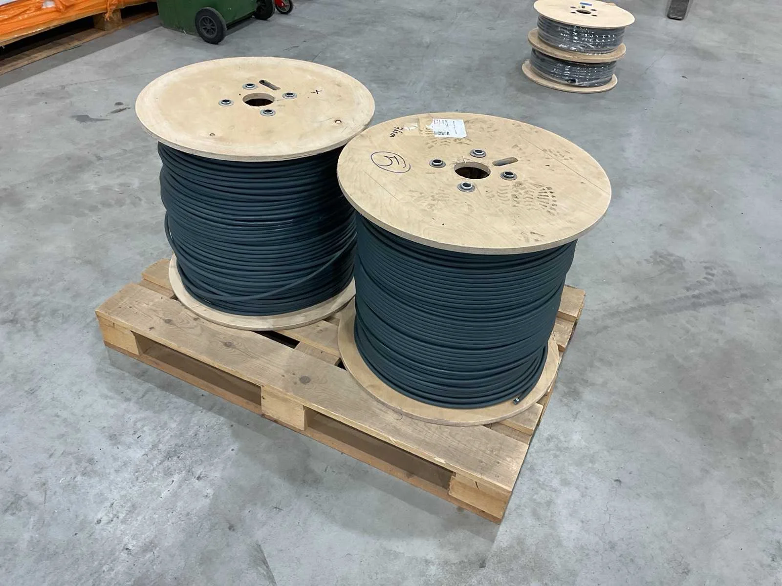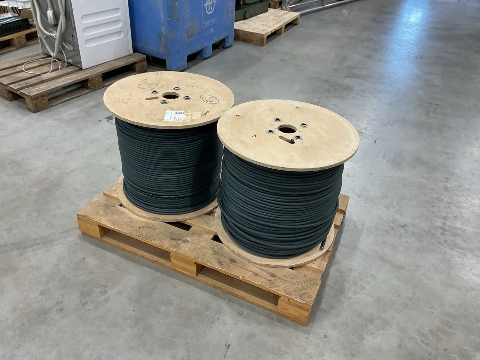 Voorzien van. 2 rollen 4x1,5mm2; 700 meter per rol. Merk: Voikabel Gewicht: 275kg Lengte: 120cm Breedte: 80cm Hoogte: 67cm Materiaal: Koper kabel
