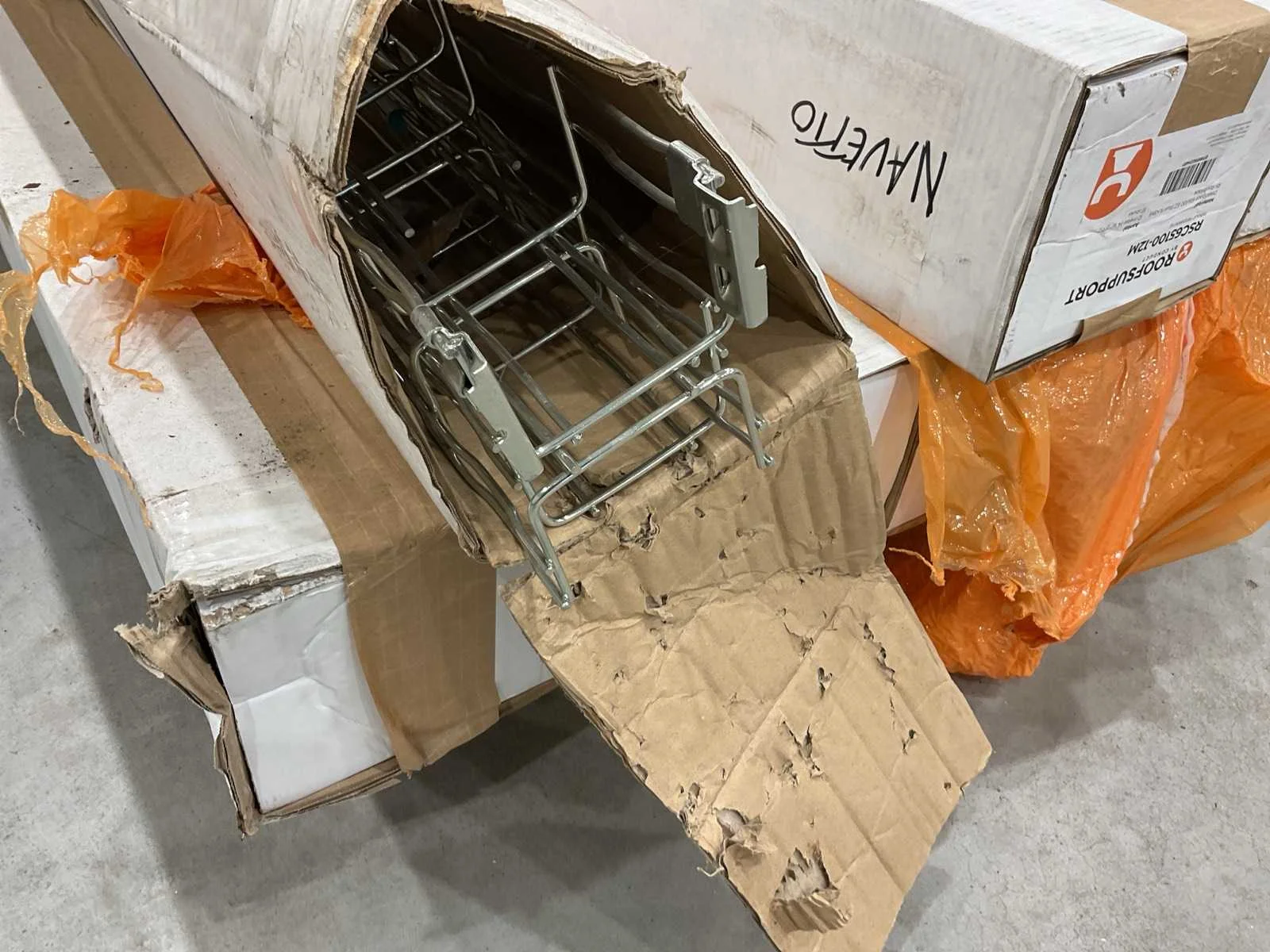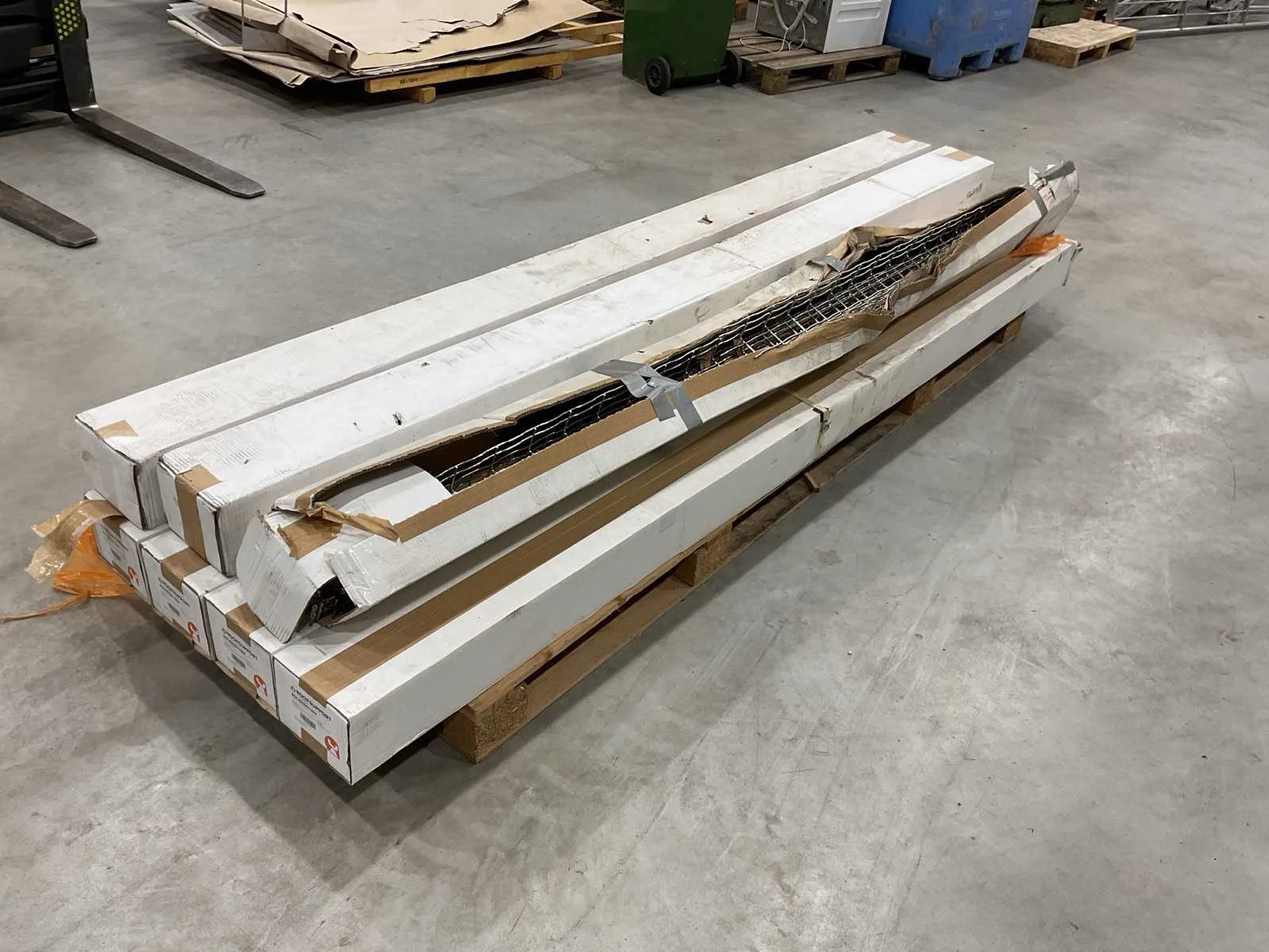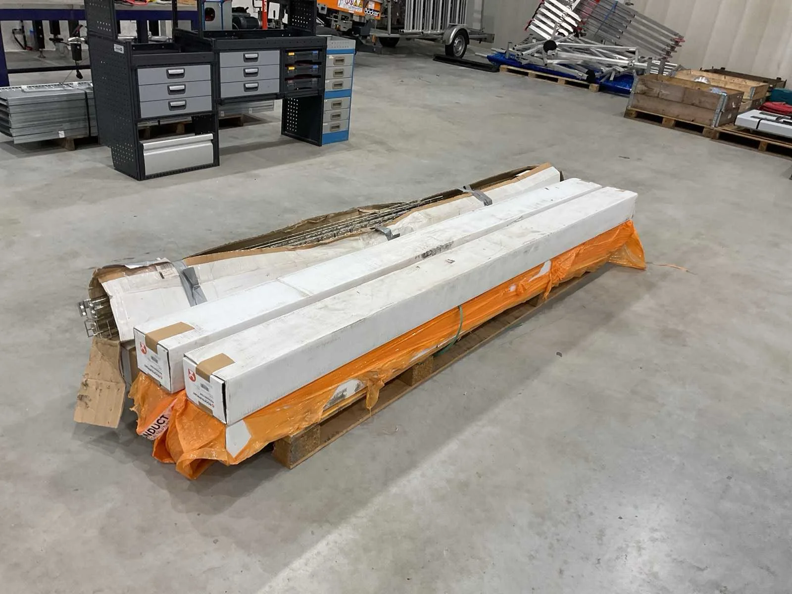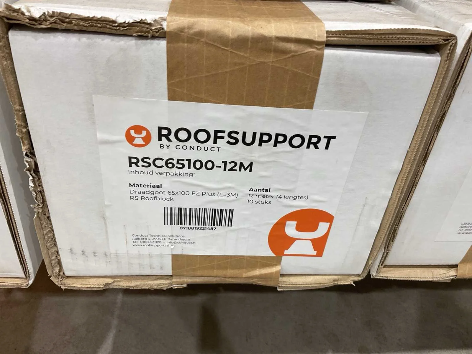 Voorzien van. 6x doos compleet met blokken; 1 doos 3x meter goot; Totaal 80 meter goot 65x100 Merk: Roofsupport Model: Rsc65100-12m Lengte: 310cm Breedte: 85cm Hoogte: 50cm Materiaal: Staal