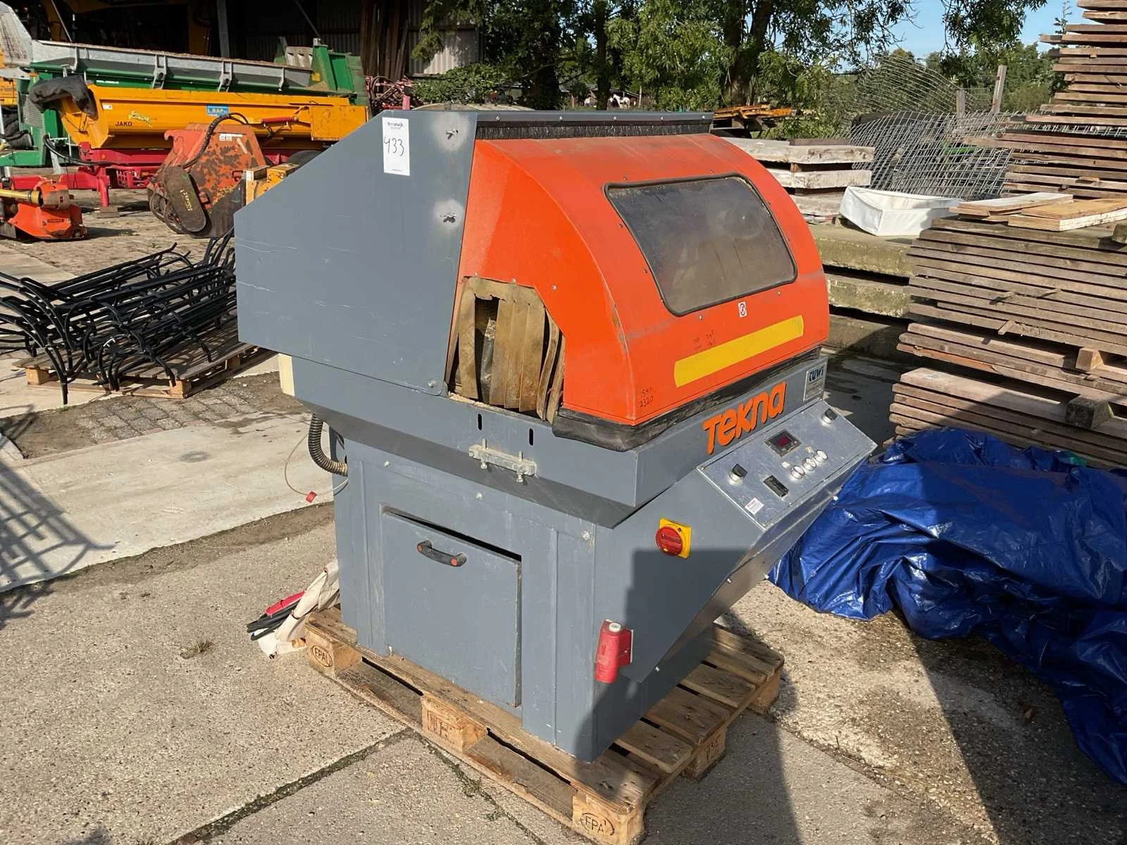 Voorzien van. 3 zaagbladen; verlengkabel. Merk: Tekna Type: TK 133 Zaagblad Ø: 450mm Verstek: true Motorvermogen (kW): 2.25kW Afmeting l: 1450mm Afmeting b: 930mm Afmeting h: 1620mm Aansluiting: 380V Machinegewicht: 450kg
