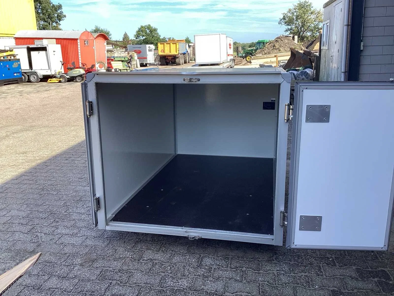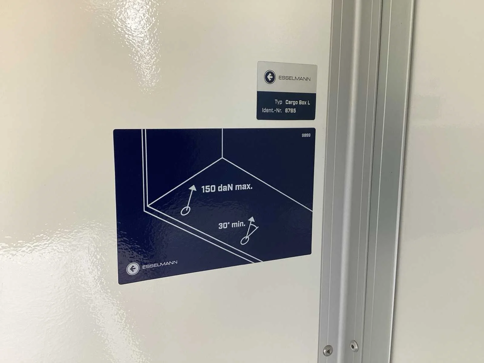 Voorzien van. Zij deur; achter deuren; rvs sluiting Merk: Esselmann Type: Cargo box L Lengte: 228cm Breedte: 140cm Hoogte: 120cm