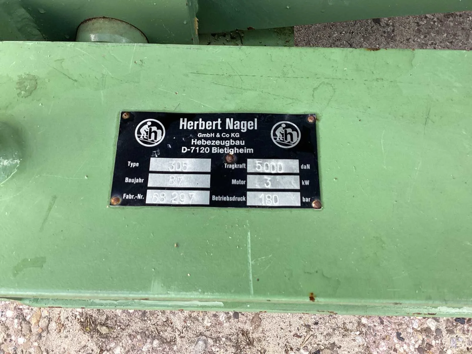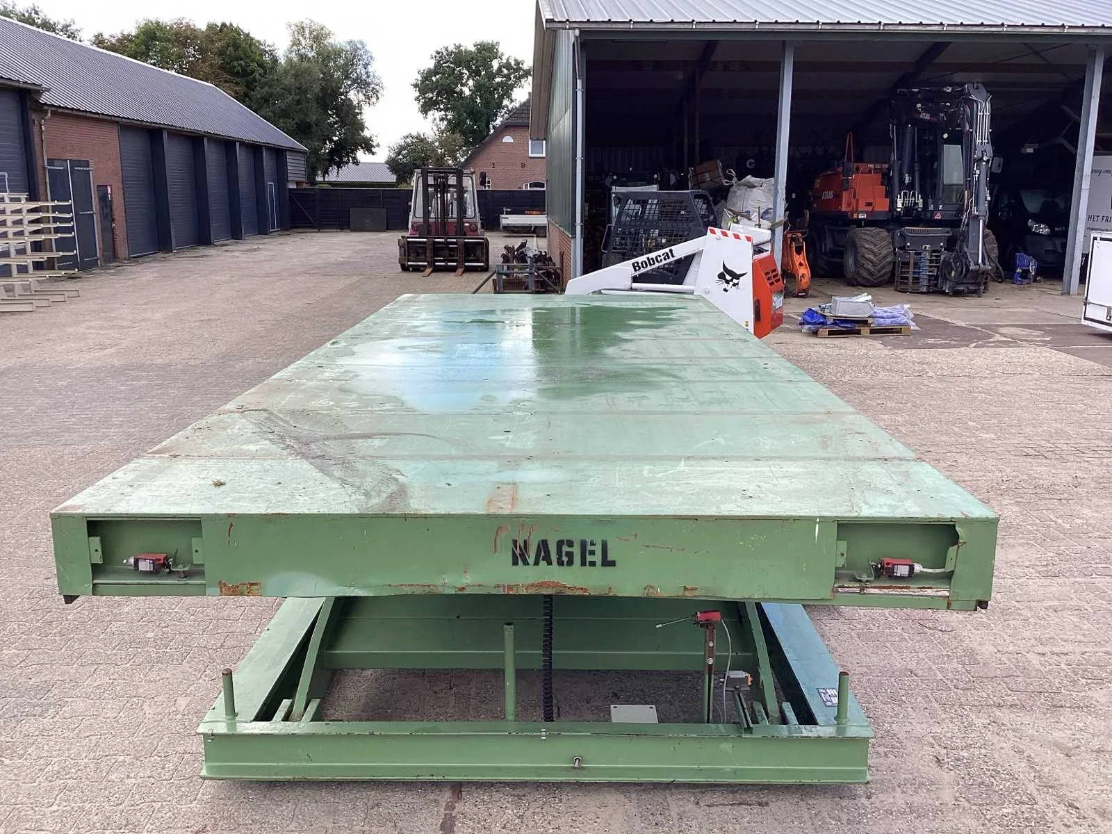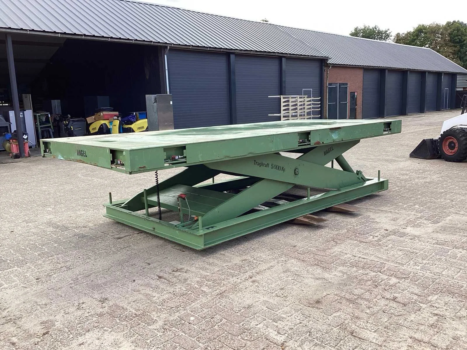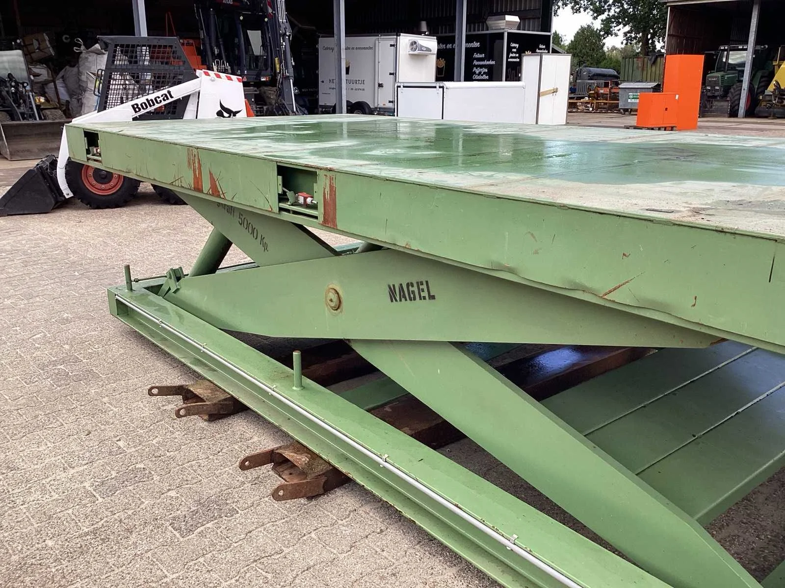 Voorzien van. Rand beveiliging; hef hoogte plateau +- 1700mm; exclusief unit Merk: Herbert Nagel Type: 305 Serienummer: 68297 Capaciteit.: 5000kg Totale afmeting L: 5000mm Totale afmeting Breedte: 2100mm