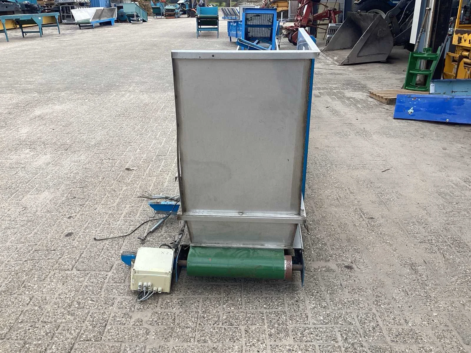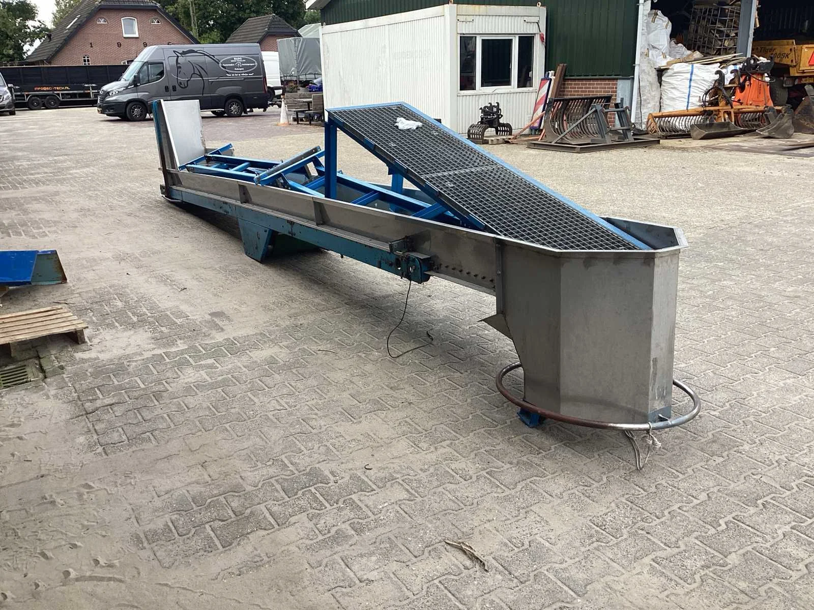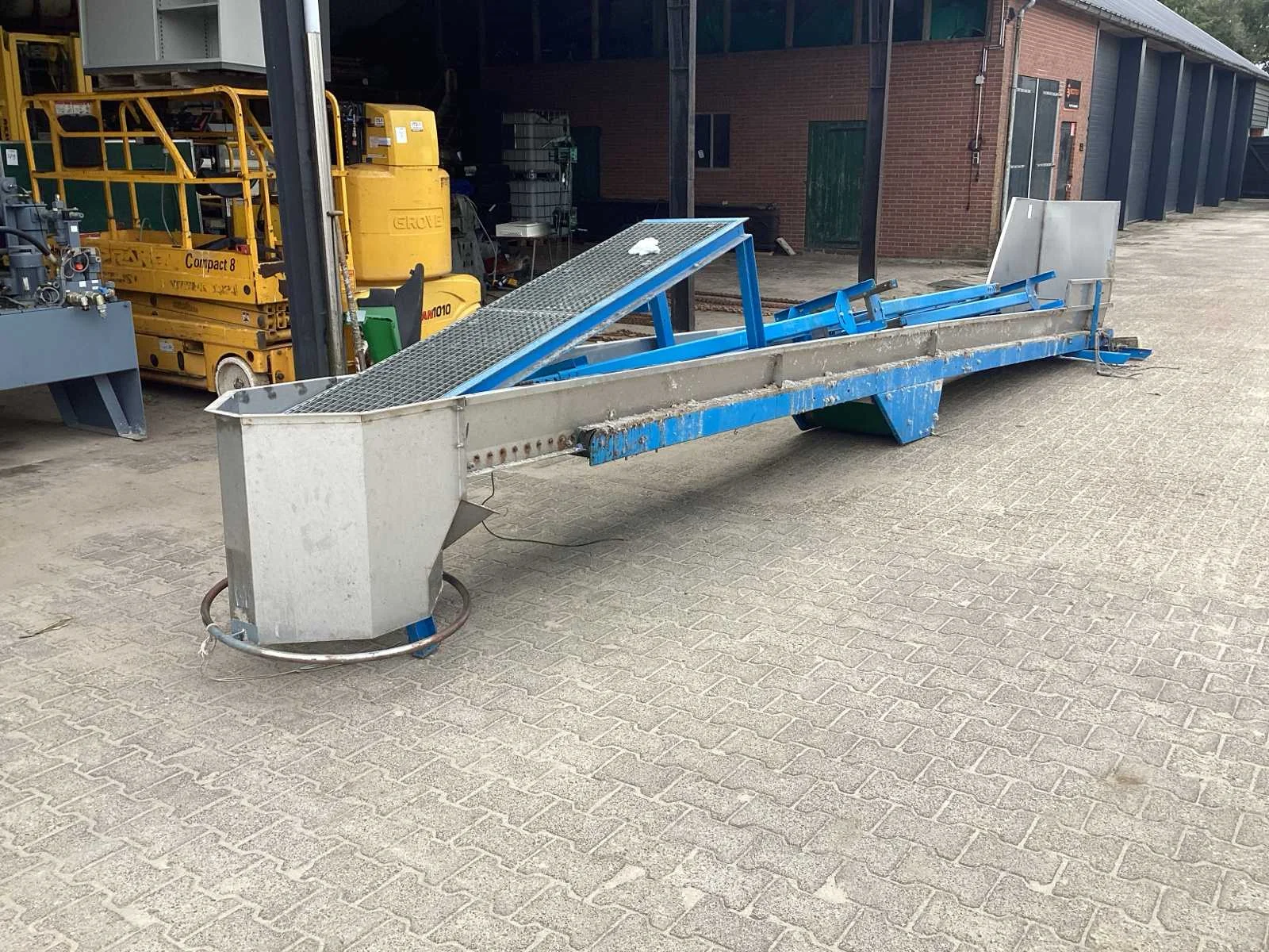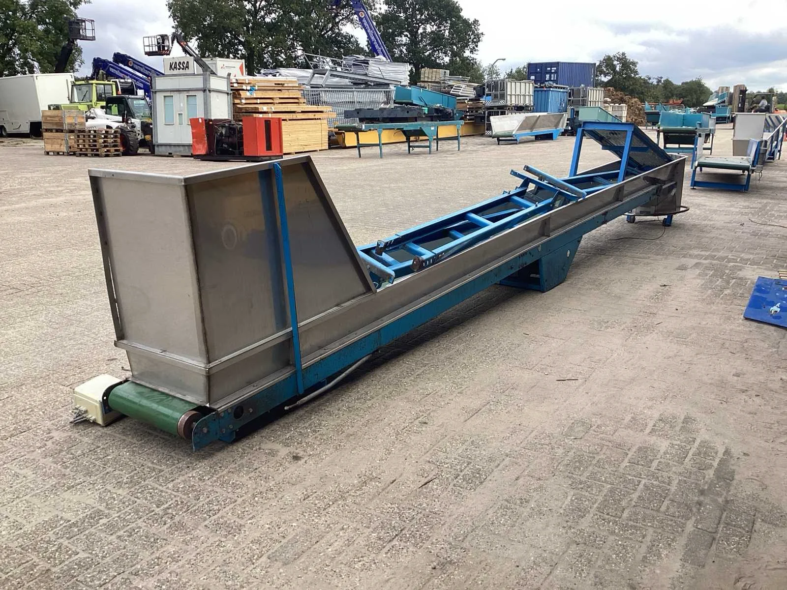 Voorzien van: spanrol; band loopt over in rollenbaan; 3 montage frames; 1 borders Merk: Van Riet Type: B3C Band afm. b: 500mm Band afm. l: 6800mm Elektrisch aangedreven: true Aansluiting: 400V Totale afmeting L: 8100mm Totale afmeting Breedte: 750mm Totale afmeting Hoogte: 1000mm