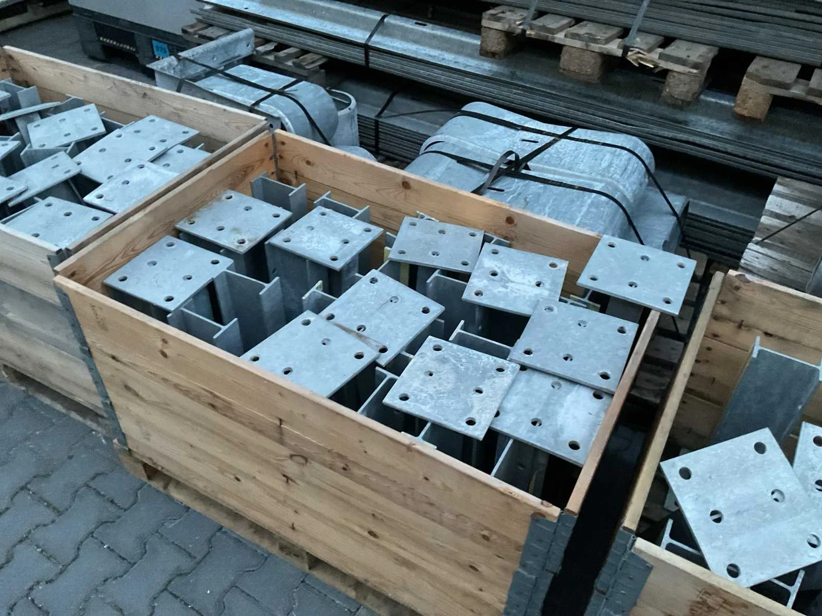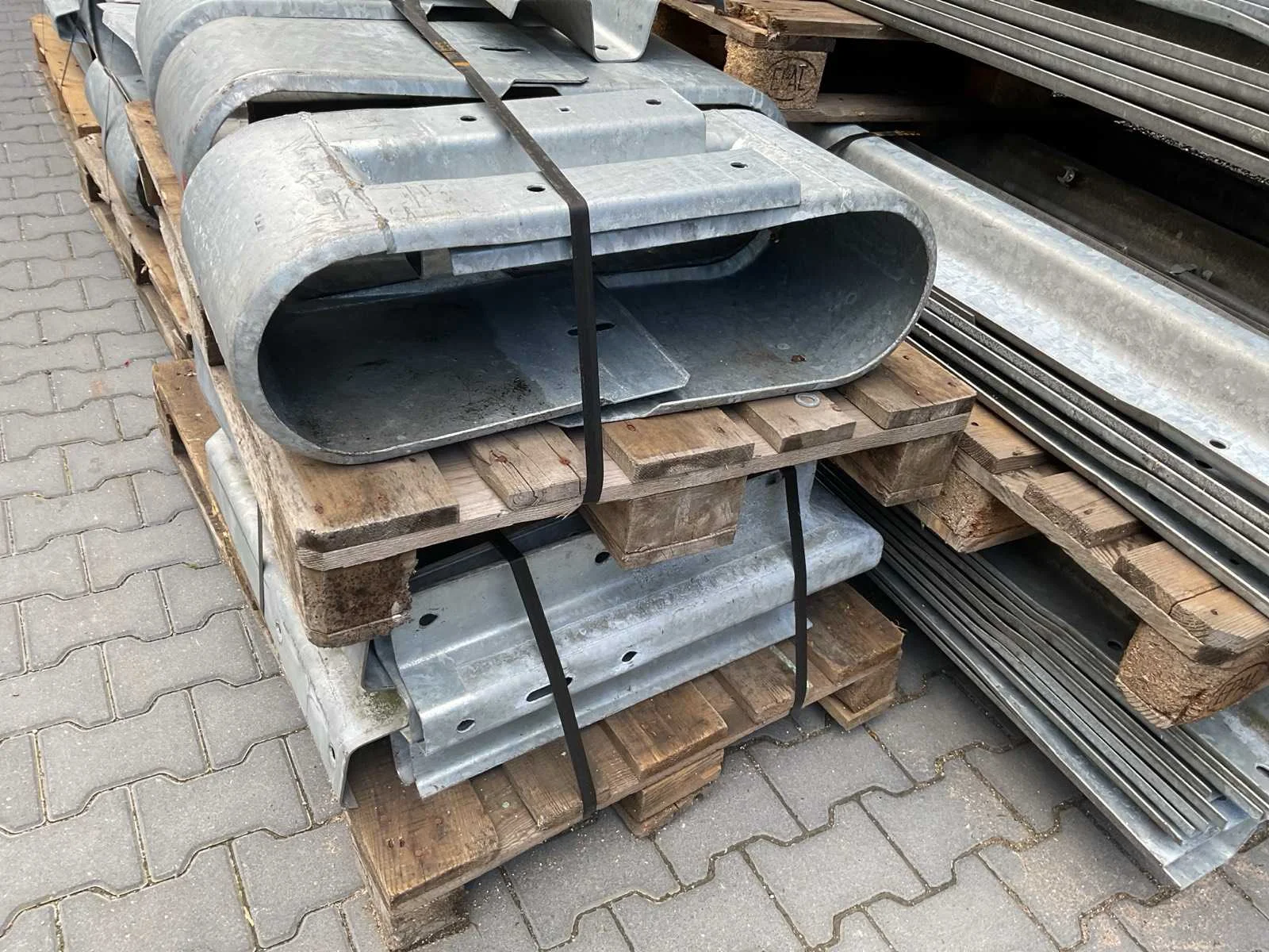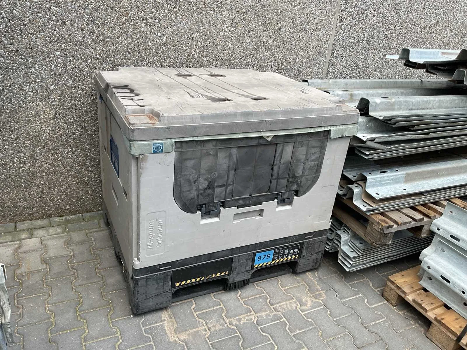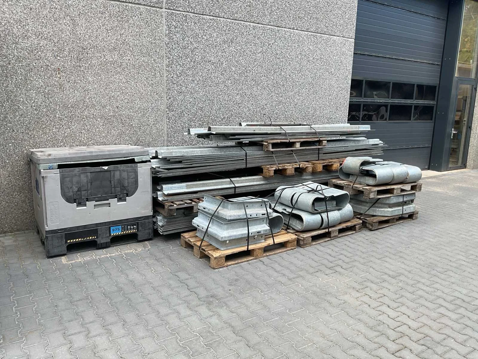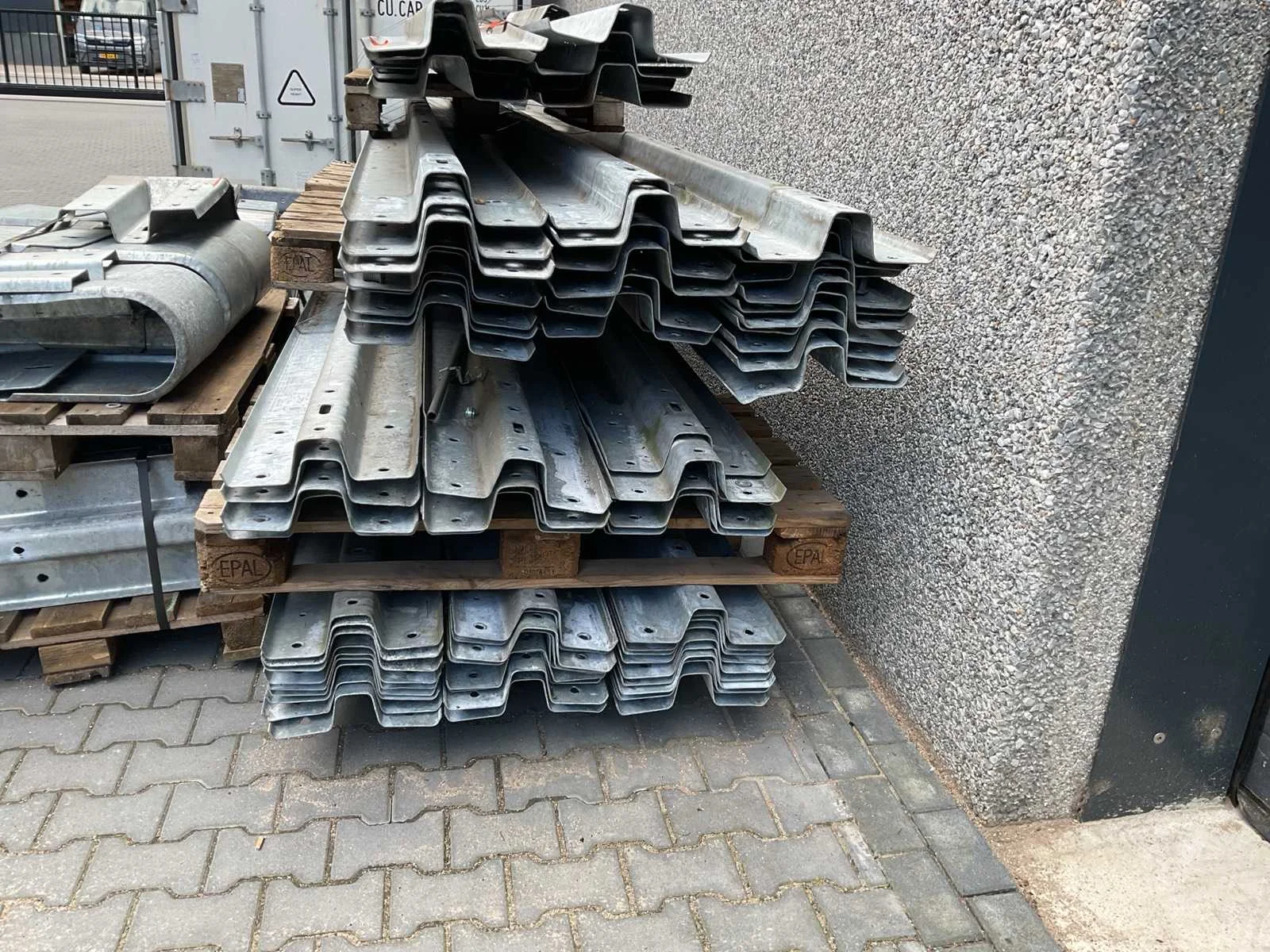 Voorzien van. 70x 430cm lang; div korte stukken; 24x eindstuk; 4x 90 graden stuk; div bevestigingsmateriaal; profiel hoogte 310mm; incl palletbox; 80x voet hoogte 51cm; totaal gewicht 5410kg. Totale afmeting L: 4300mm Totale afmeting Breedte: 2900mm Totale afmeting Hoogte: 1500mm