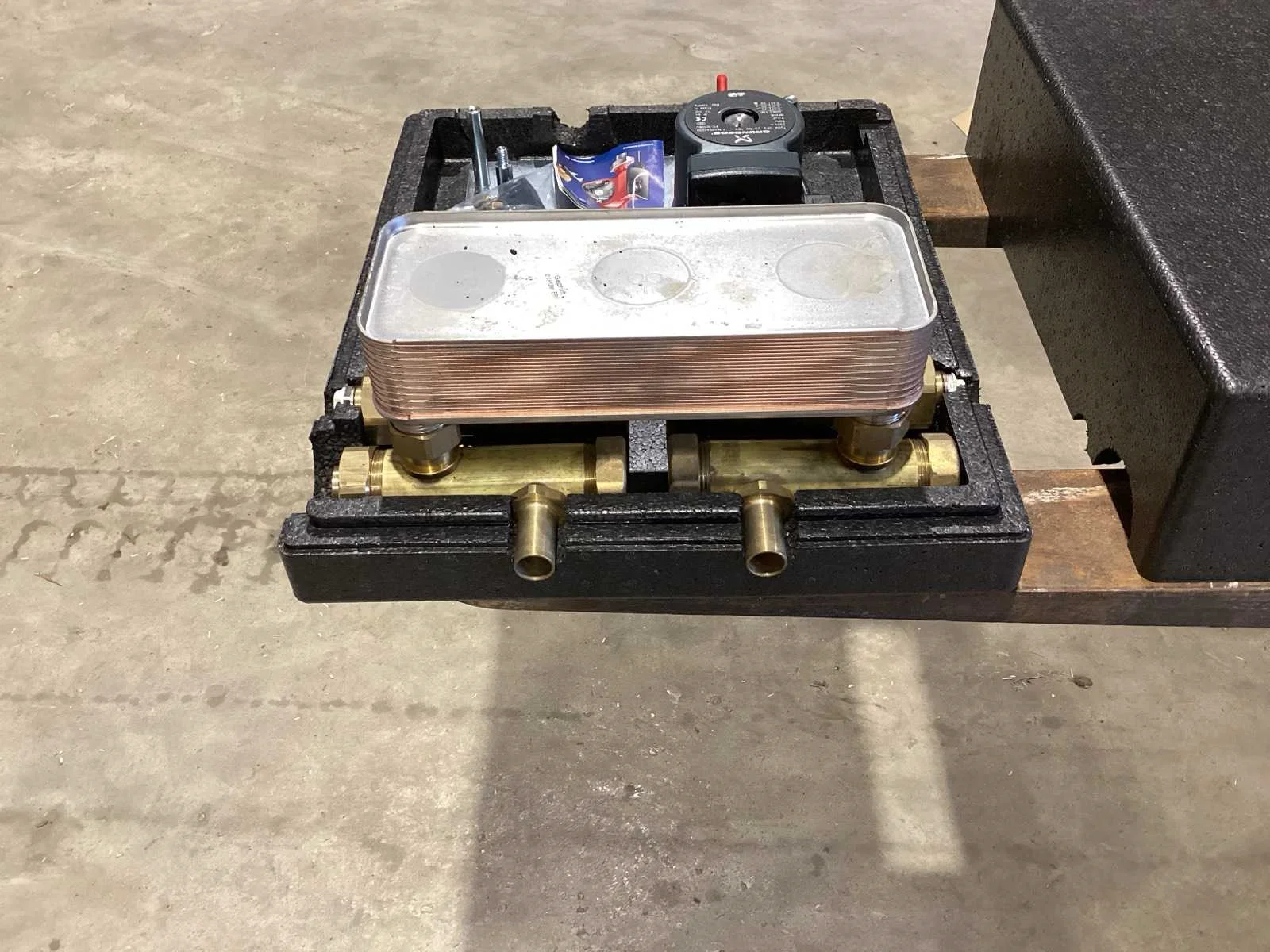 Voorzien van. Wisselaar; circulatiepomp; installatie materieel; isolatie unit; ongebruikt Merk: Grundfos Aansluiting: 230V Totale afmeting L: 620mm Totale afmeting Breedte: 420mm Totale afmeting Hoogte: 210mm