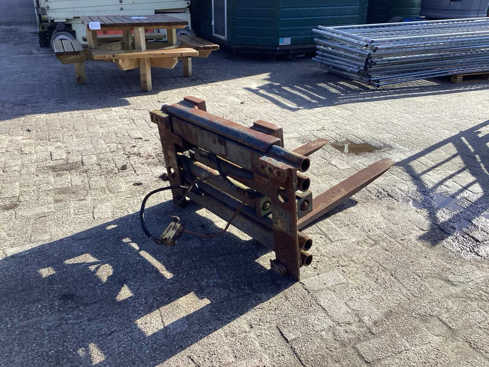 Voorzien van. Hydraulische verstelbare lepels