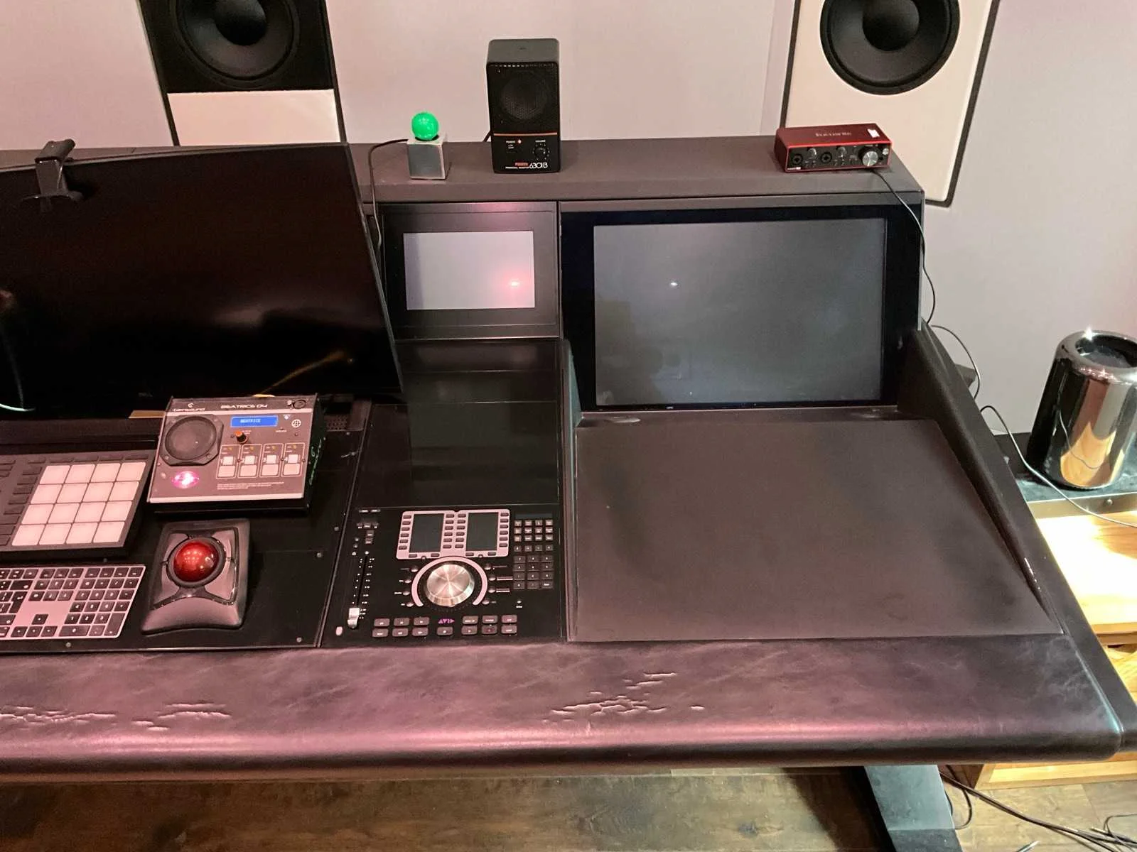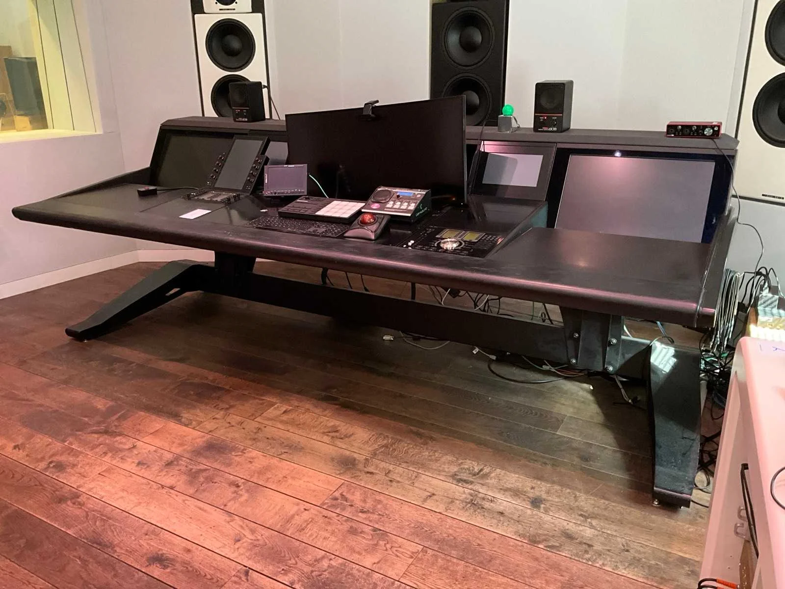 Apparatuur bestaat onder andere uit: Avid S6 M10 control surface, Datavideo tlm-700hd 7” tft LCD monitor, Native Instruments Maschine Mikro MK3 controller, Kensington M01286-M expert mouse, Glensound Beatrice D4 4 Channel Network Audio Intercom, 2x Fostex 6301B actieve speaker, Dell Ultrasharp U3818DW is een 38 inch curved ultrawidescherm, focusrite scarlett 2i2 interface, Lengte: 285cm Breedte: 100cm Hoogte: 100cm