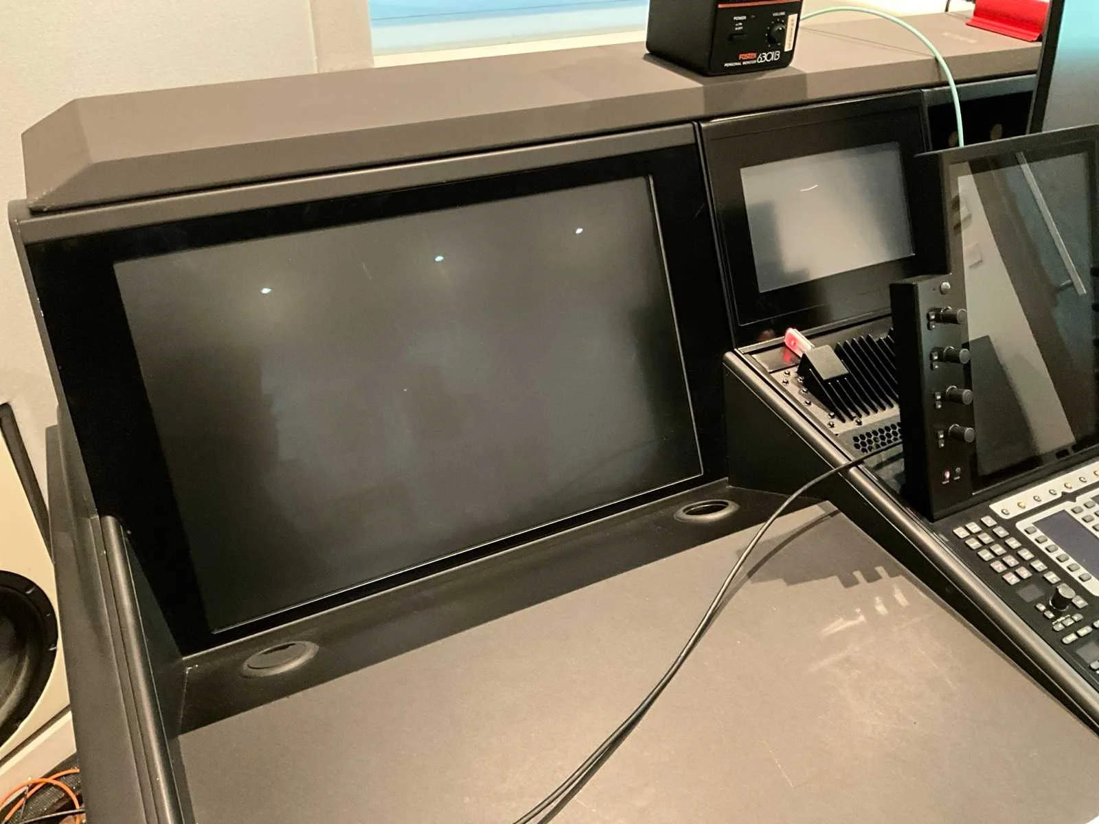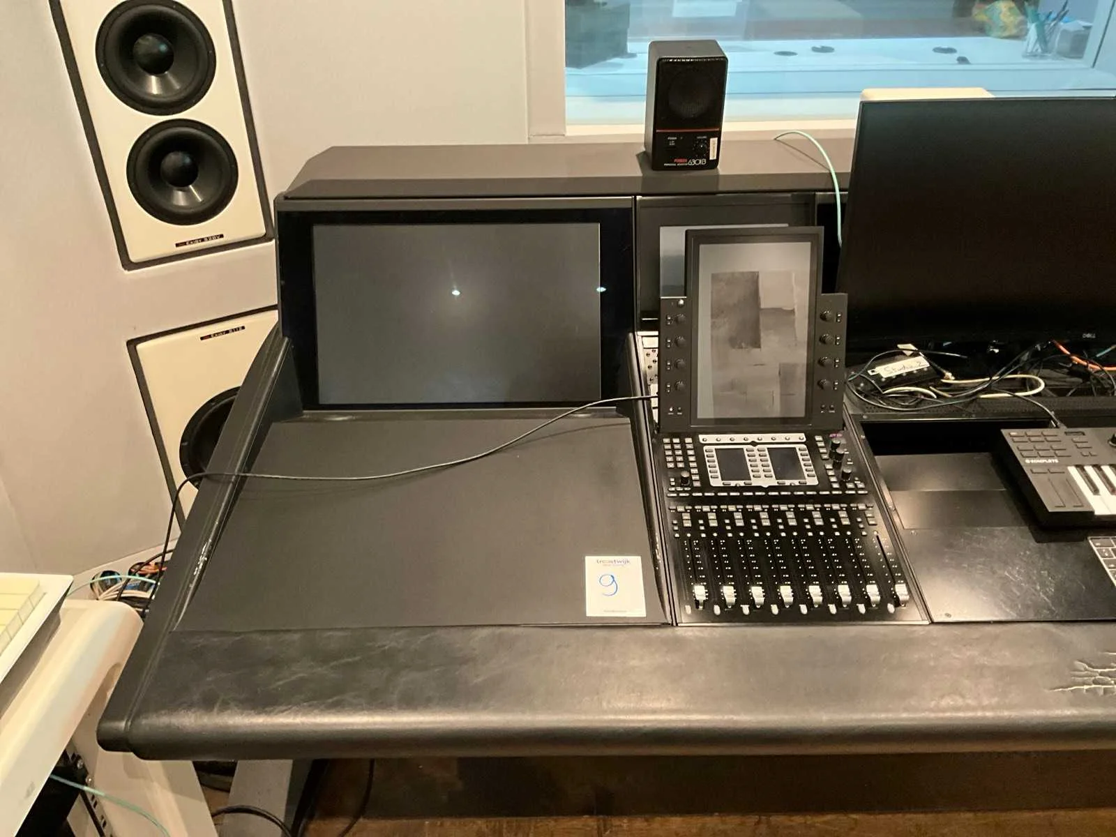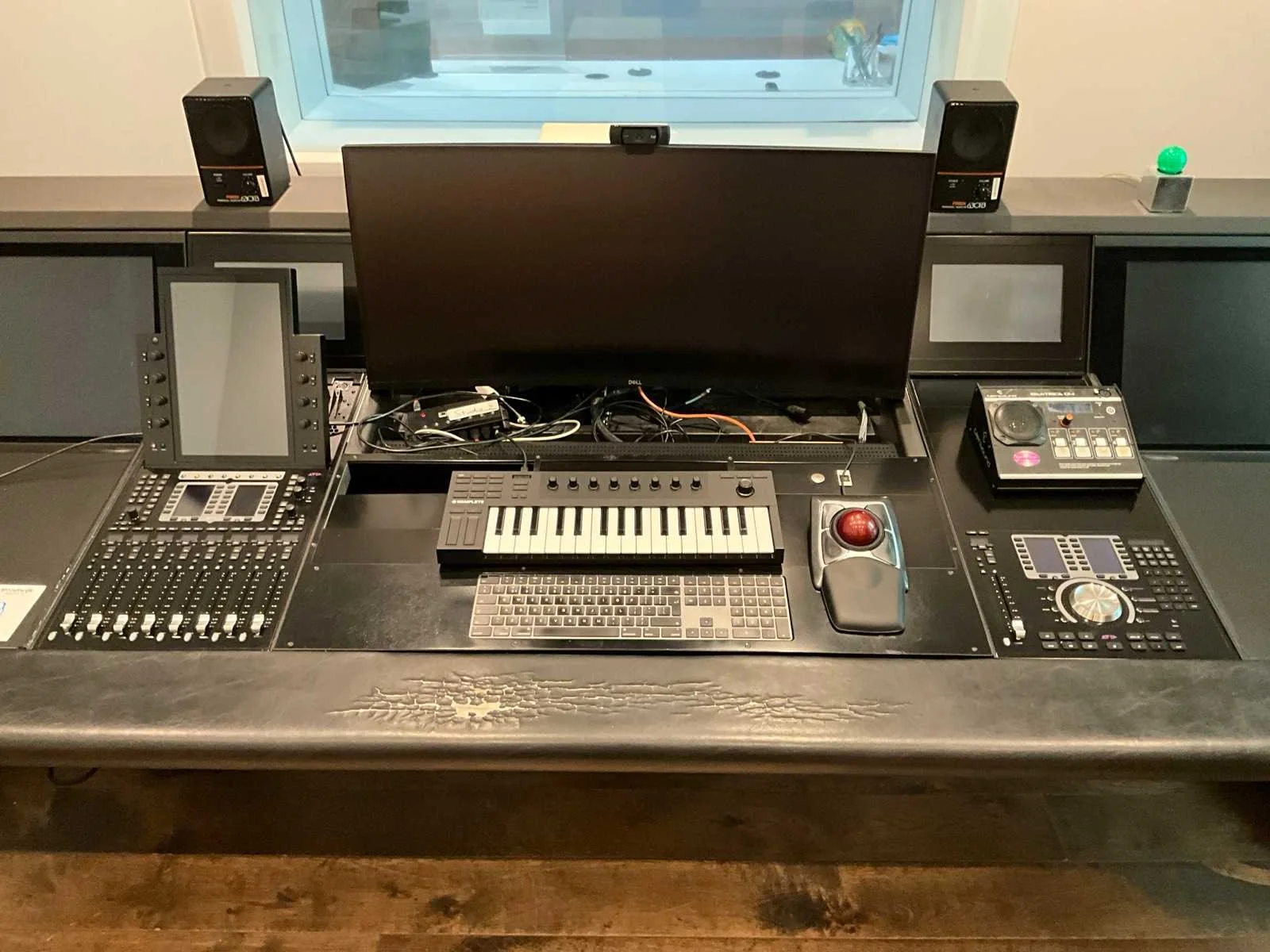 Apparatuur bestaat onder andere uit: Avid S6 M10 control surface, Komplete Kontrol M32, Kensington K64325 expert mouse, Glensound Beatrice D4 4 Channel Network Audio Intercom, 2x Fostex 6301B actieve speaker, Dell Ultrasharp U3818DW is een 38 inch curved ultrawidescherm, Sonifex Red Box Lengte: 285cm Breedte: 100cm Hoogte: 100cm