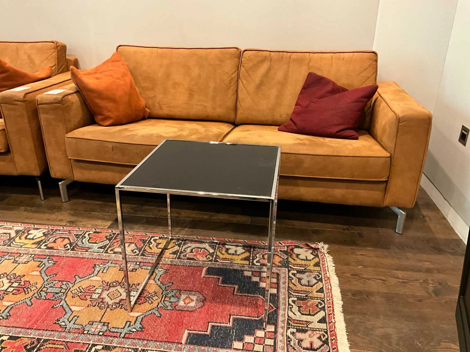 Inclusief salontafel, afmeting: H50xB50xD50cm, zonder kleed. Merk: Montel Lengte: 85cm Breedte: 187cm Hoogte: 60cm Zithoogte: 43cm Diepte: 54cm