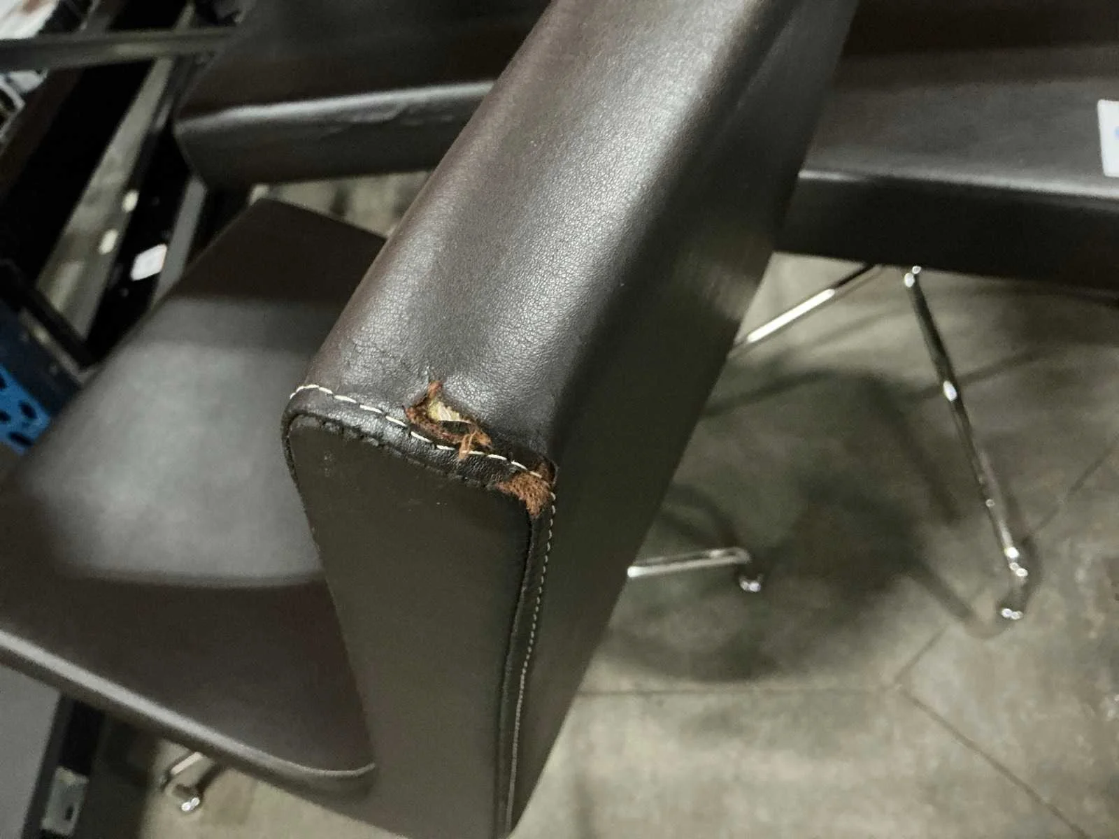 Er zitten bij 3 stoelen een beschadiging op Hoogte: 90cm Zithoogte: 49cm Diepte: 33cm