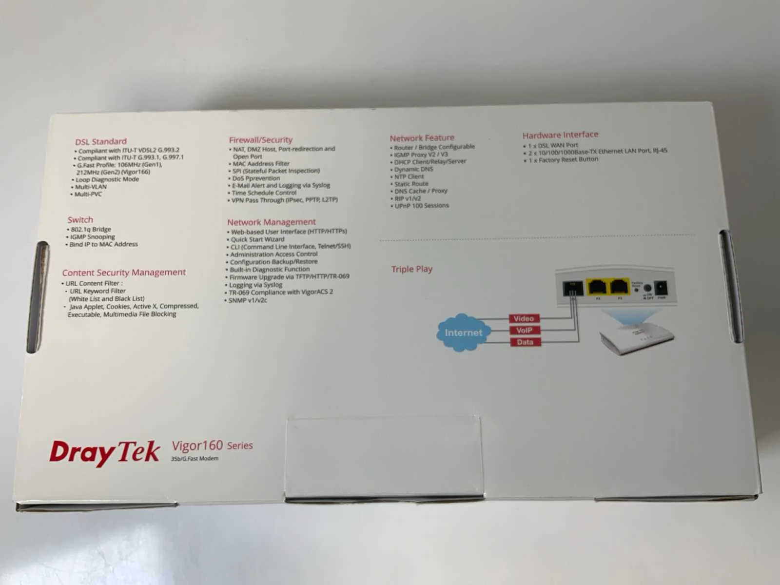(Vigor165) VDSL2 35b Supervectoring Modems; - In Open Box. Merk: DrayTek