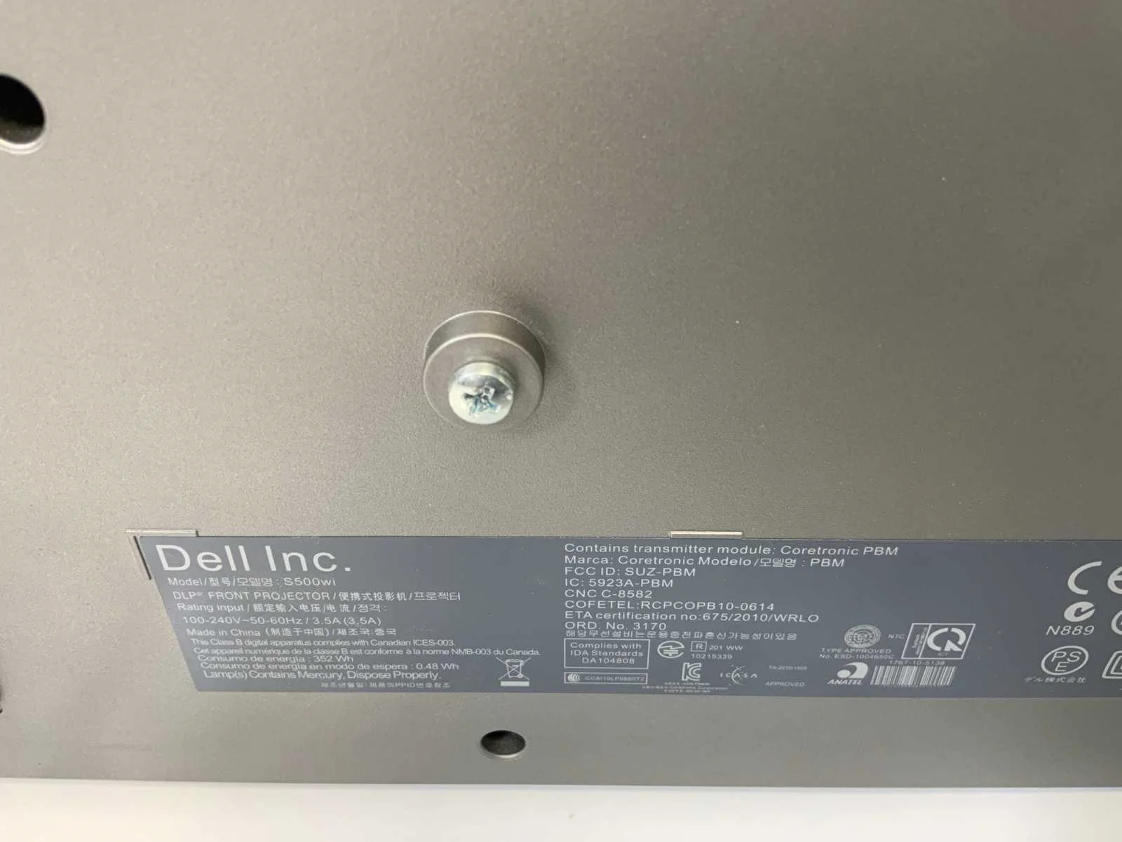 (S500wi) 3200 Lumen WXGA Projector (299 Hrs - Lamp Hours); - Tested For Power, - Excl. Power Cable. Merk: Dell