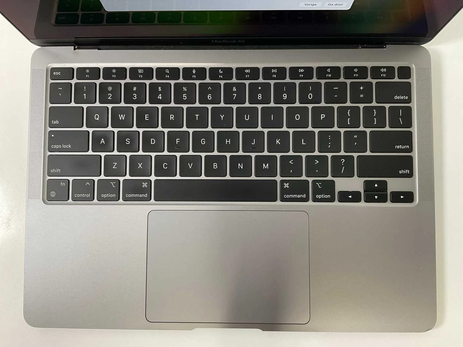 MacBook Air 13.3”, Apple M1, 8 GB RAM, 256 GB SSD Laptop; - Lightly Spots - Excl. Charger. Merk: Apple Processor type: Apple M1 8-core Processorsnelheid Ghz: 2.1 RAM Geheugen: 8GB Totale opslagcapaciteit: 256GB Type datadrager: SSD Type videokaart: Apple GPU 7-core Zonder adapter: true Beeldscherm type: IPS Beelddiagonaal: 13'' Wifi: true Bluetooth: true USB-Type: Type C USB poorten: 2 Webcam: true