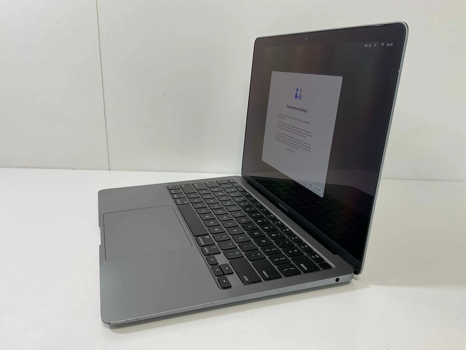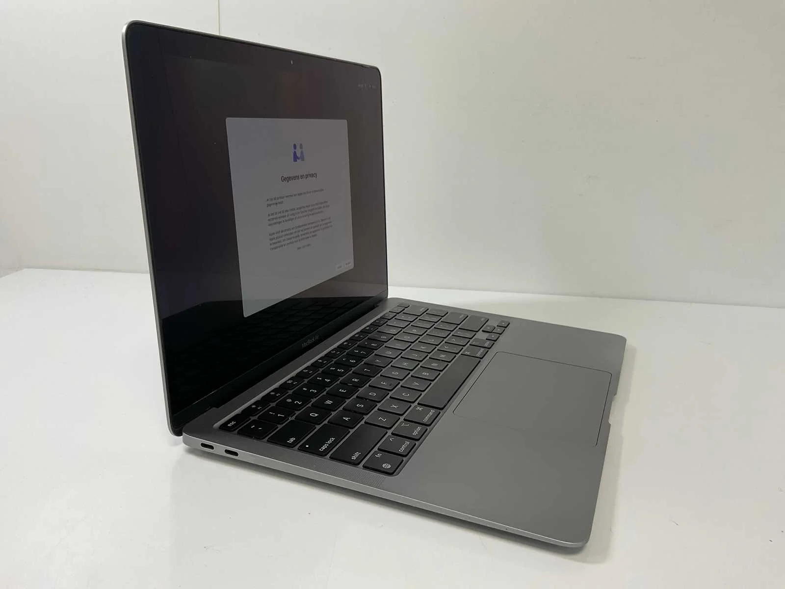 MacBook Air 13.3”, Apple M1, 8 GB RAM, 256 GB SSD Laptop; - Lightly Stains, - Excl. Charger. Merk: Apple Processor type: Apple M1 8-core Processorsnelheid Ghz: 2.1 RAM Geheugen: 8GB Totale opslagcapaciteit: 256GB Type datadrager: SSD Type videokaart: Apple GPU 7-core Zonder adapter: true Beeldscherm type: IPS Beelddiagonaal: 13'' Wifi: true Bluetooth: true USB-Type: Type C USB poorten: 2 Webcam: true