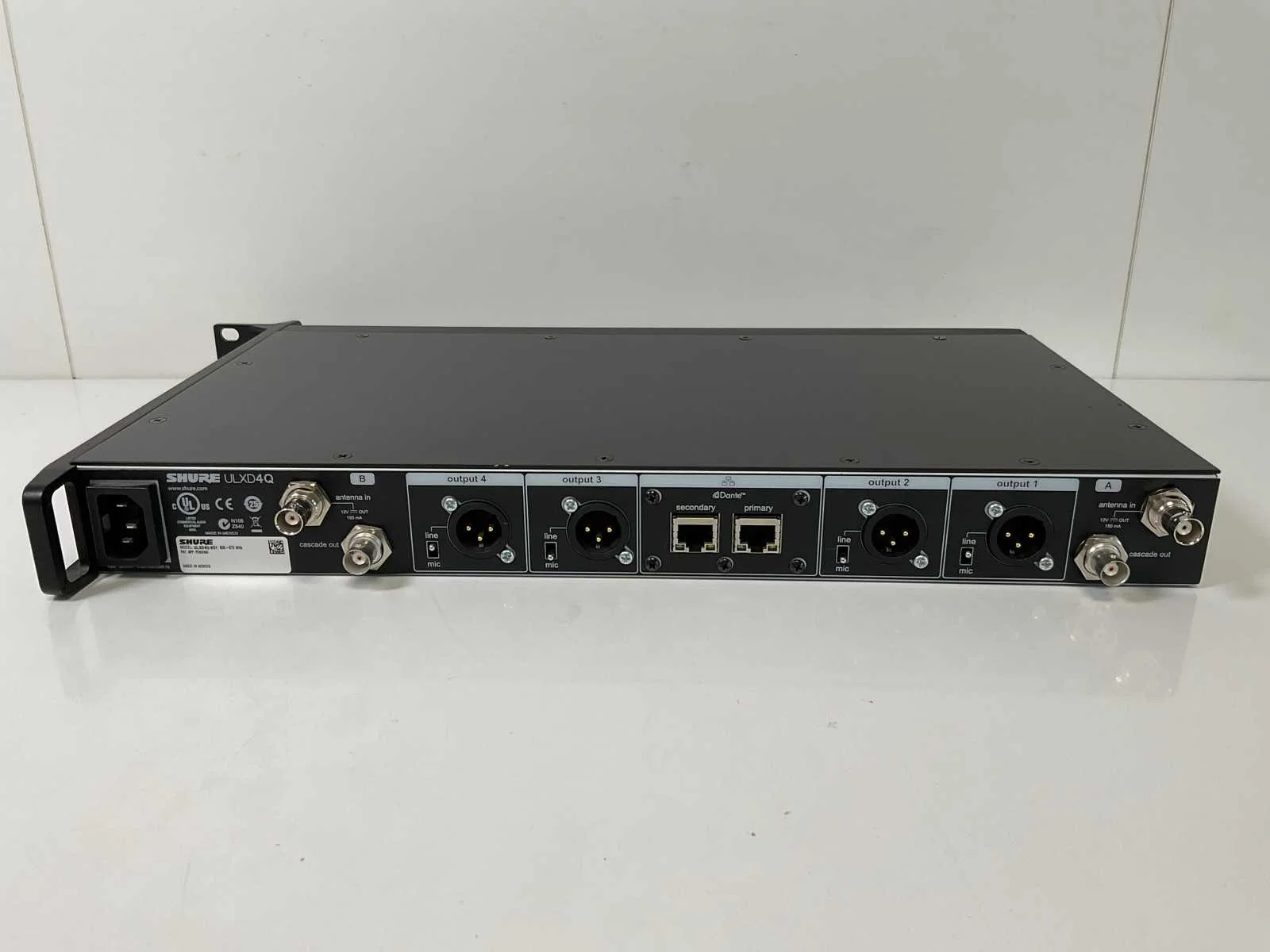 (ULXD4Q), Quad Channel Receiver - For use with ULX-D Digital Wireless Microphone System; - Tested for Power, - Excl. Power and Connection Cables. Merk: Shure
