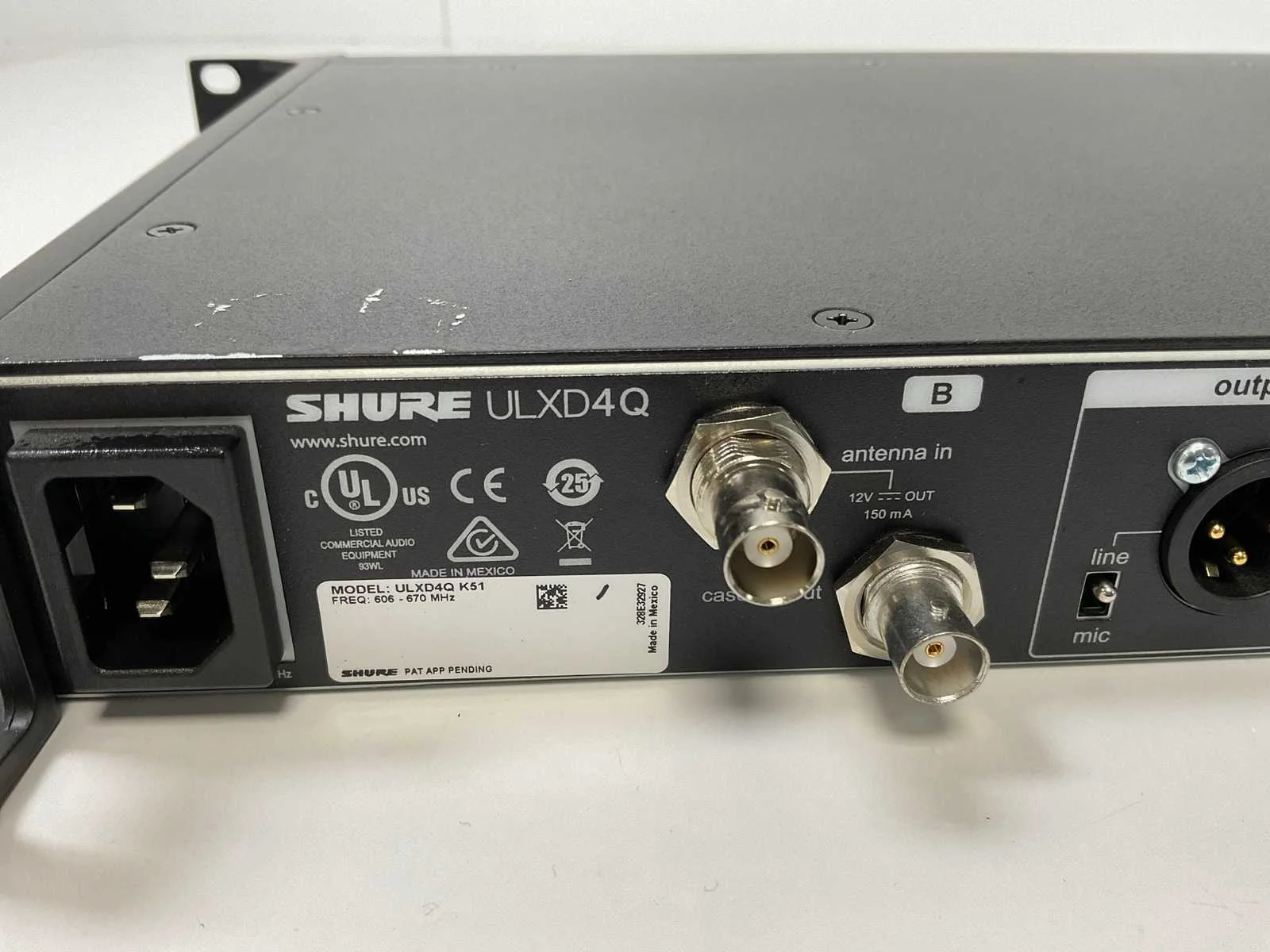 (ULXD4Q), Quad Channel Receiver - For use with ULX-D Digital Wireless Microphone System; - Tested for Power, - Excl. Power and Connection Cables. Merk: Shure