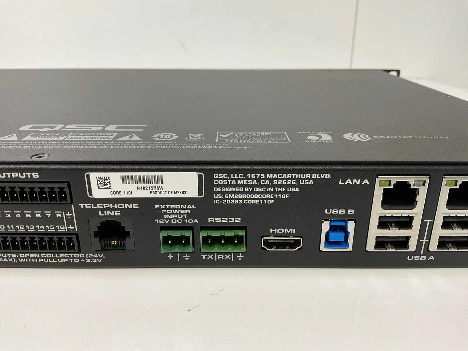 (Q-Sys Core 110f), Network + Analog Audio Channels Processor; - Tested for Power. - Excl. Power and Connection Cables. Merk: QSC