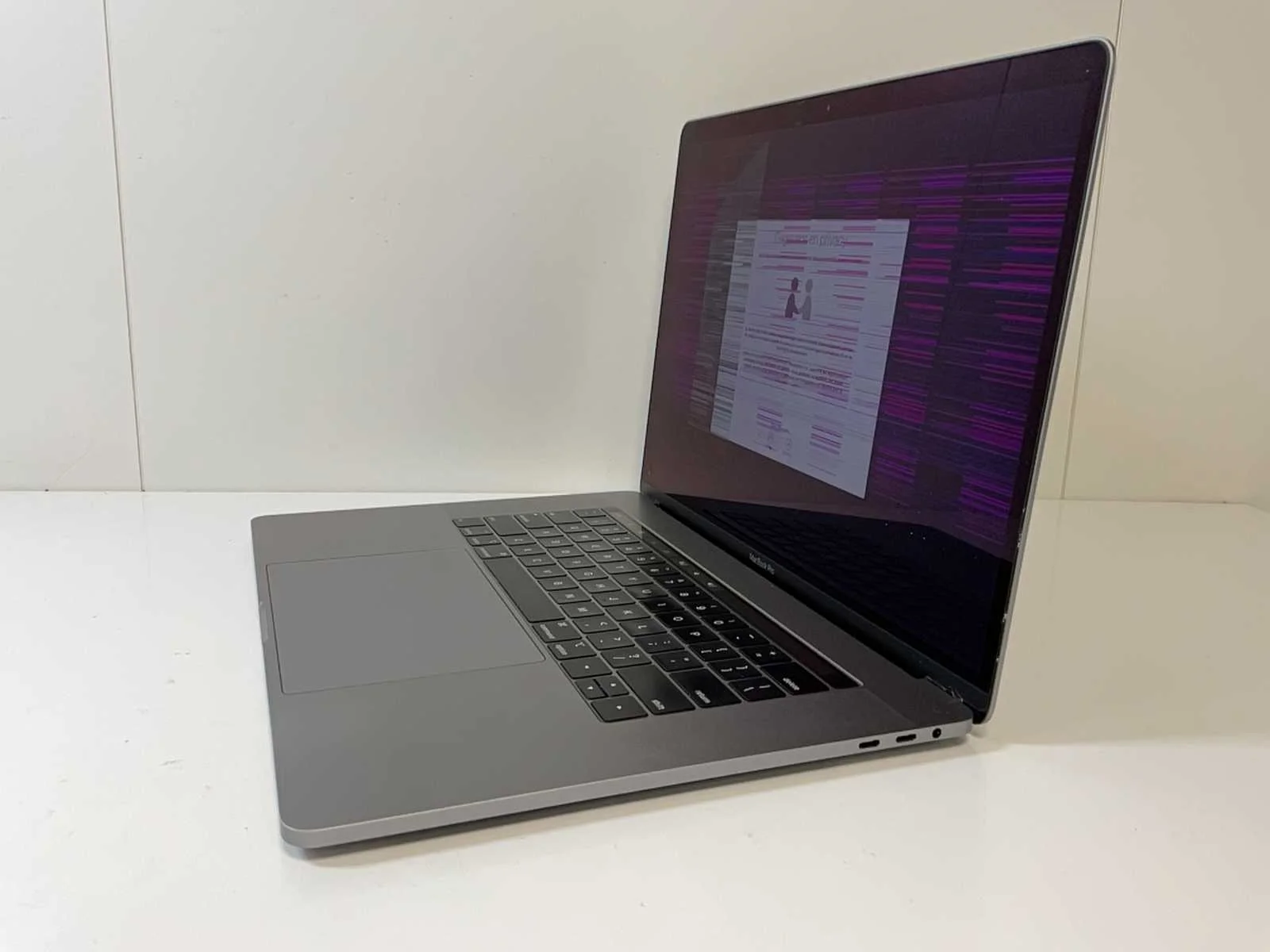 MacBook Pro 15.4”, Core(TM) i9 8th Gen, 16 GB RAM, 1 TB NVMe, AMD Radeon RX Pro 560X 4 GB Laptop; - Cracked Screen, - Excl. Charger. Merk: Apple Processor type: Intel(R) Core(TM) i9-8950HK Processorsnelheid Ghz: 2.90 RAM Geheugen: 16GB RAM Geheugen Type: DDR4 Totale opslagcapaciteit: 1001GB Type datadrager: NVMe Type videokaart: AMD Radeon RX Pro 560X 4 GB Zonder adapter: true Beeldscherm type: IPS Resolutie: 2880x1800 Beelddiagonaal: 15'' Wifi: true Bluetooth: true USB-Type: Type C USB poorten: 4 Webcam: true