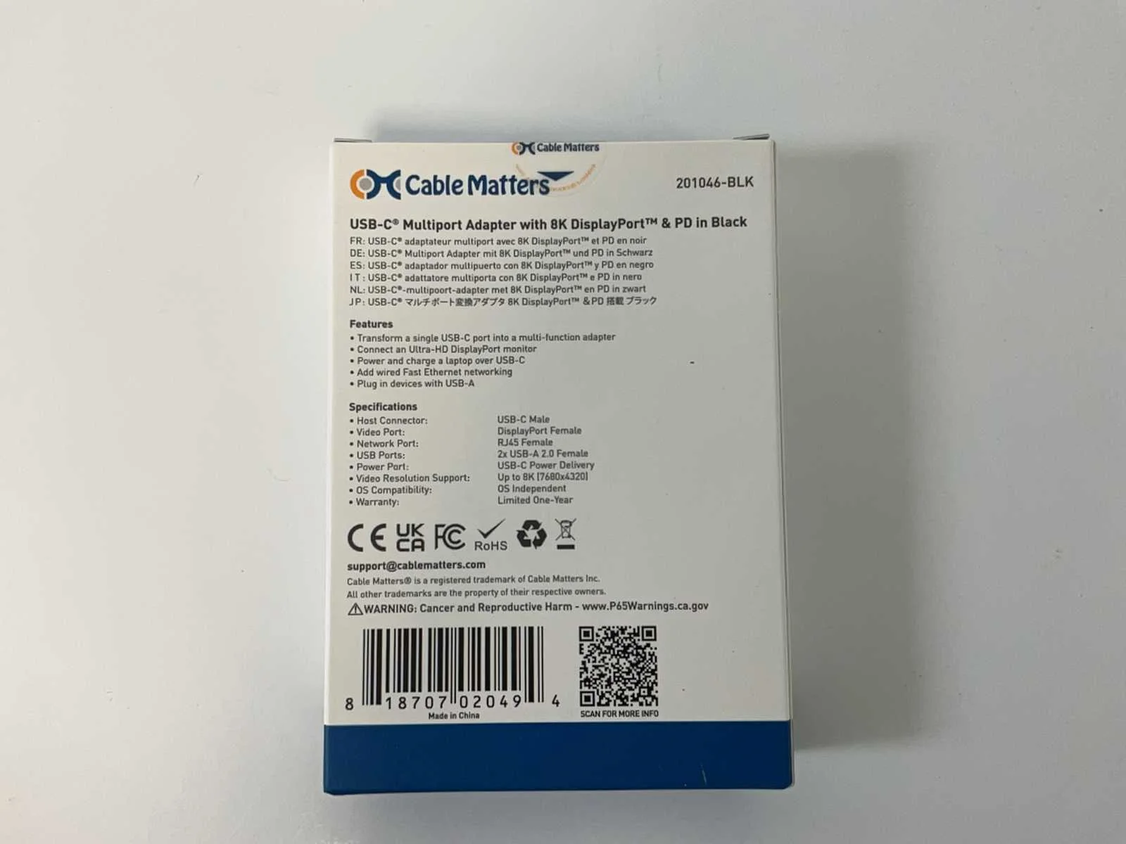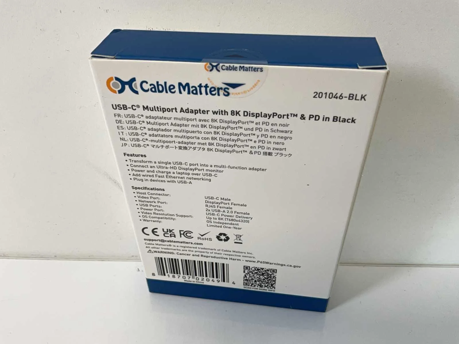 (201046-BLK) USB-C Multiport Adapter with 8k DisplayPort & PD; - New in Box. Merk: Cable Matters