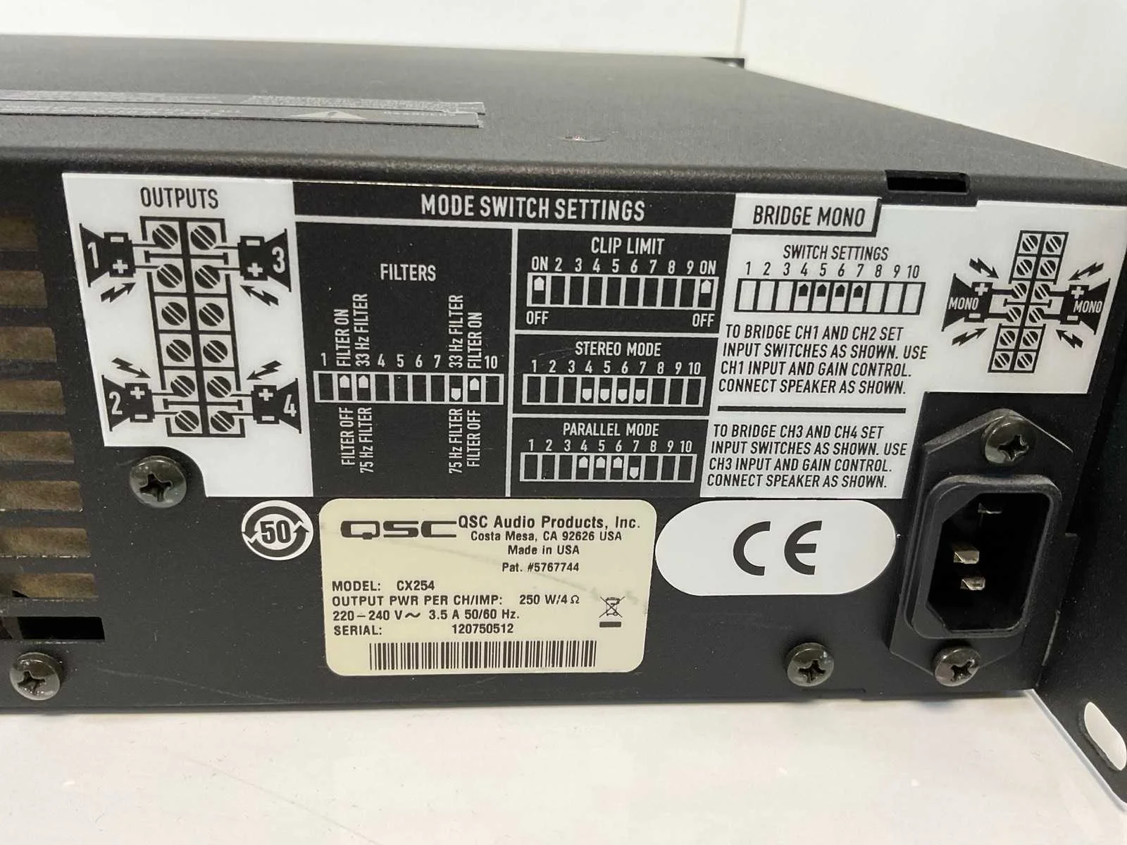 (CX254), Audio 4-Channel Power Amplifier Rack; - Tested for Power. - Excl. Power and Connection Cables. Merk: QSC