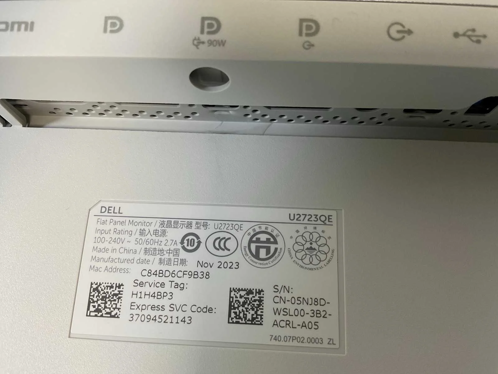 Dell (u2723qe) 27”, 3840x2160 (uhd) ips monitor