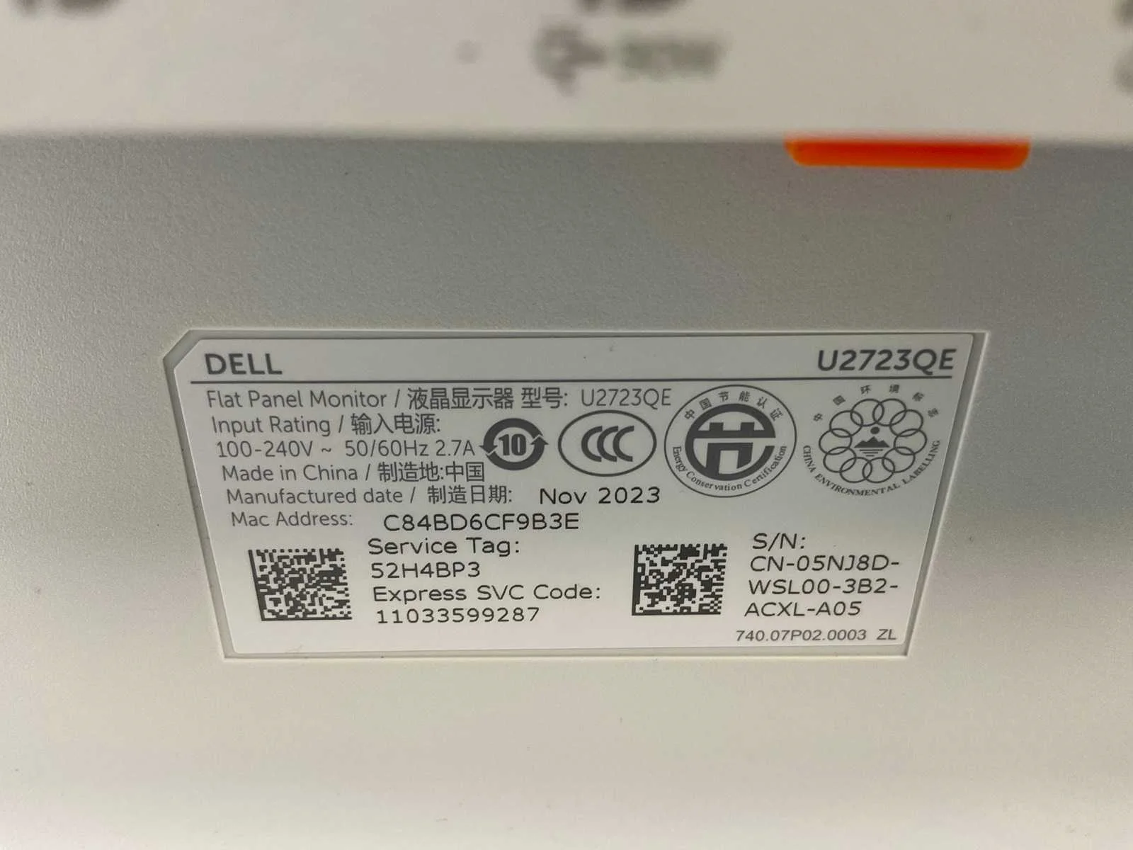 Dell (u2723qe) 27”, 3840x2160 (uhd) ips monitor