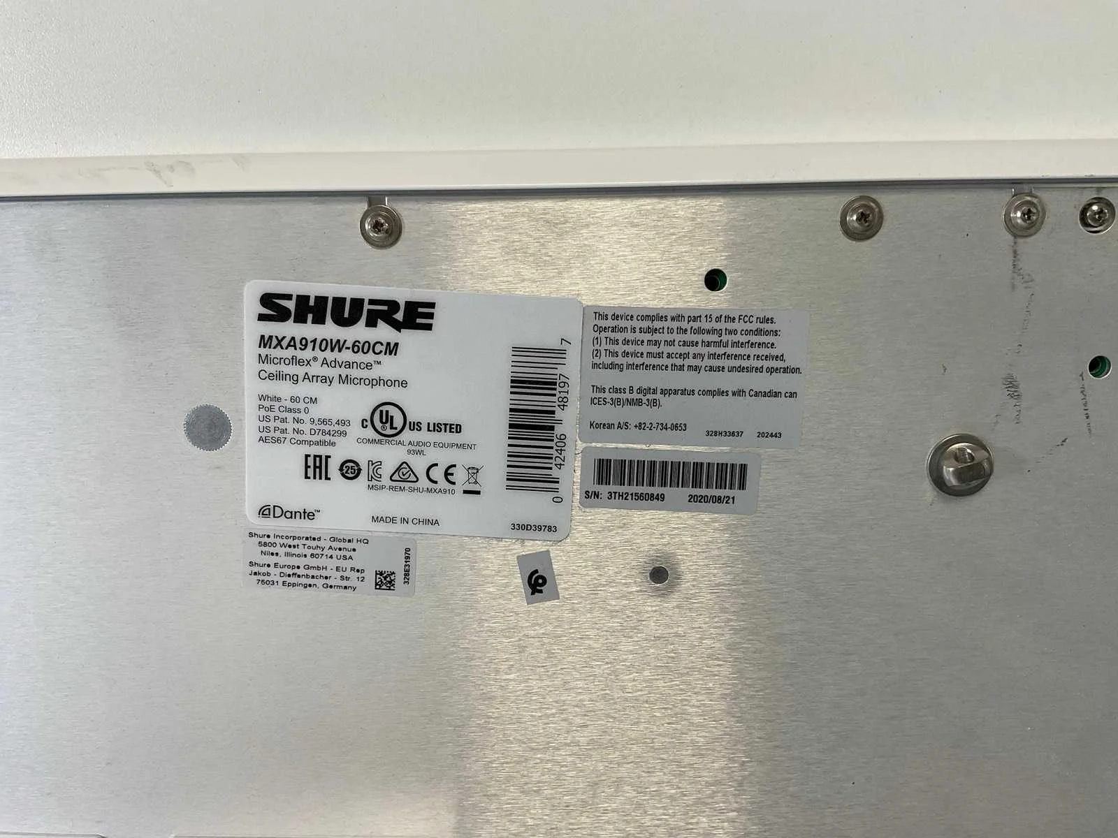 (MXA910Q-60CM), MicroFlex Advance ceiling Array Microphone; - Not Tested, - Excl. Power and connection cables. Merk: Shure