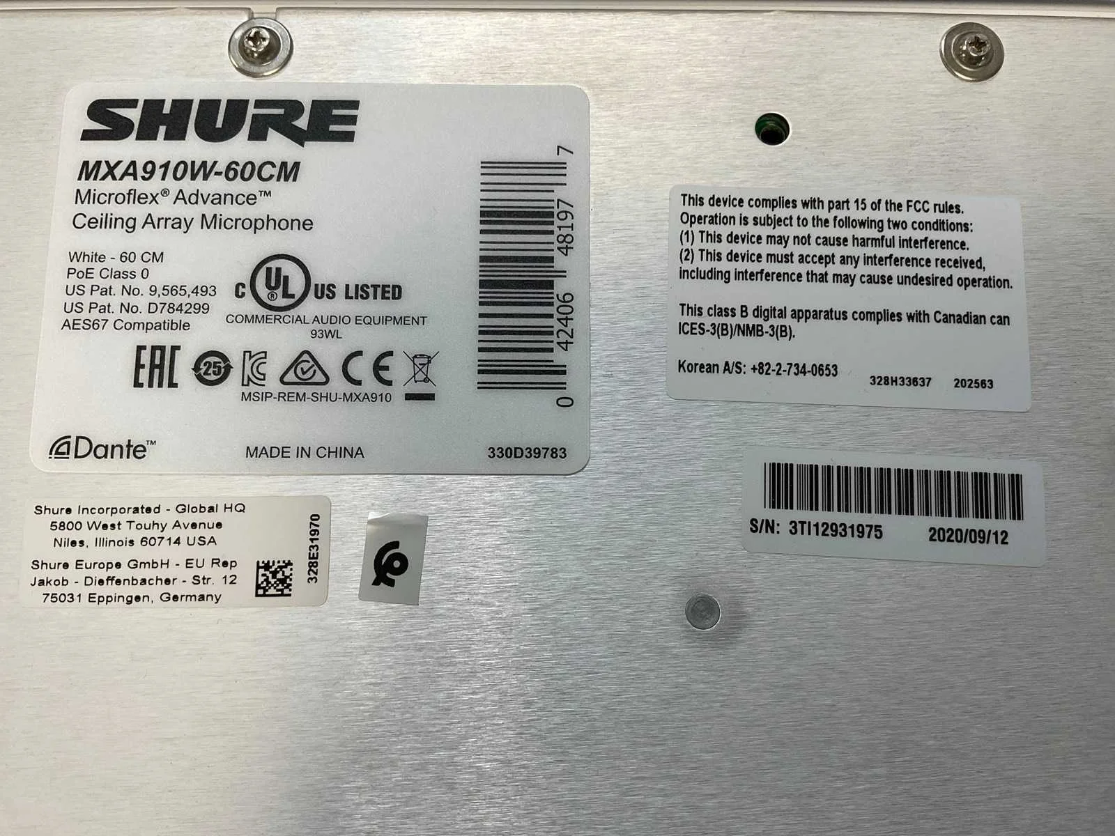 Shure (mxa910q-60cm), microflex advance ceiling array microphone (2x)