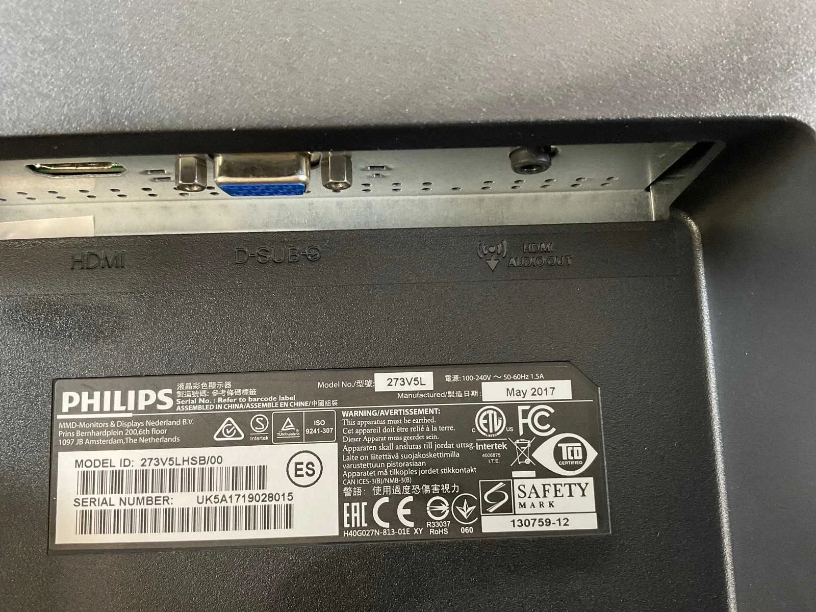 Philips (273v5l) 27”, 1920x1080 (fhd) lcd monitor