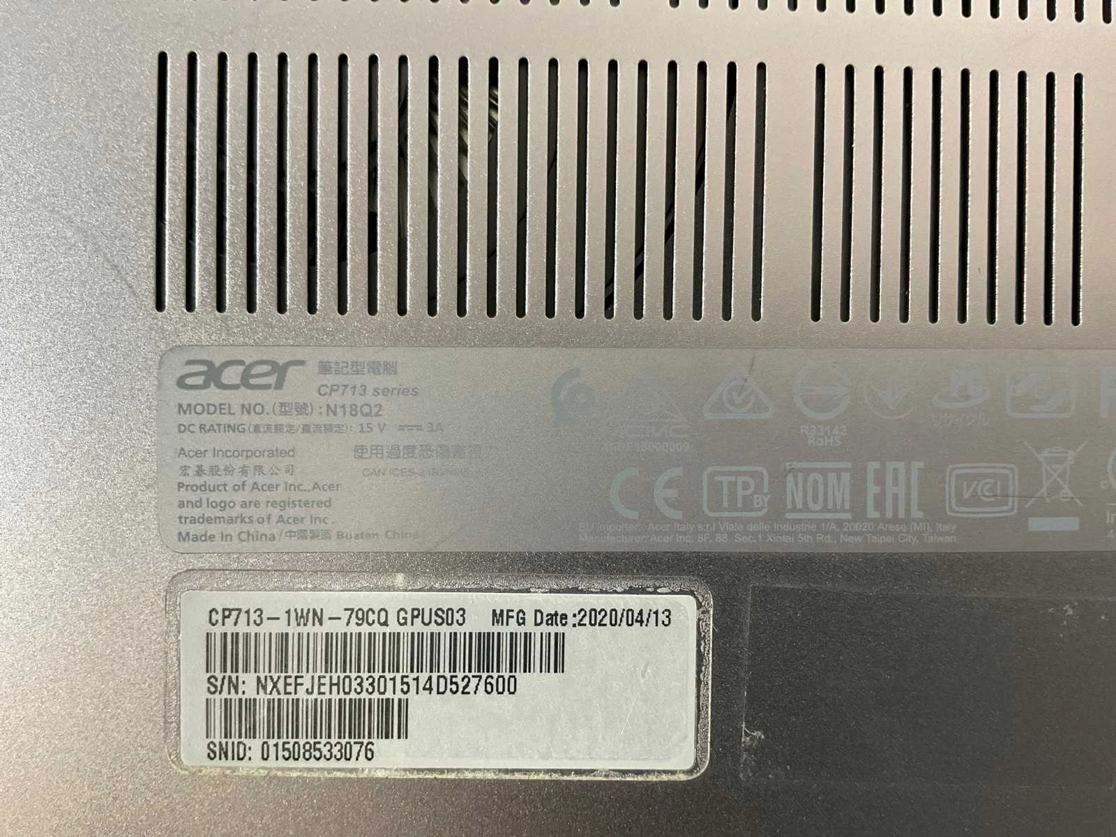 N18Q2 Spin 13” Chromebooks - Check Description; - 1x Core(TM) i7 8th Gen, 16 GB RAM, 128 GB HDD, - 1x Core(TM) i5 8th Gen, 8 GB RAM, 64 GB SSD, - 2x Battery defect, - 1x Screen cracked, - Excl. chargers. Merk: Acer Zonder adapter: true Beeldscherm type: IPS Resolutie: 1920x1080 Beelddiagonaal: 13'' Wifi: true Bluetooth: true USB-Type: Type A,C USB poorten: 3 Webcam: true