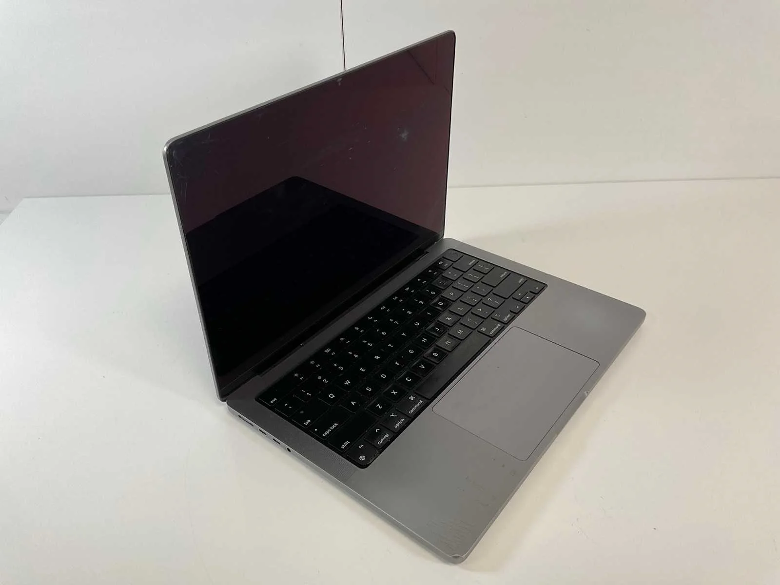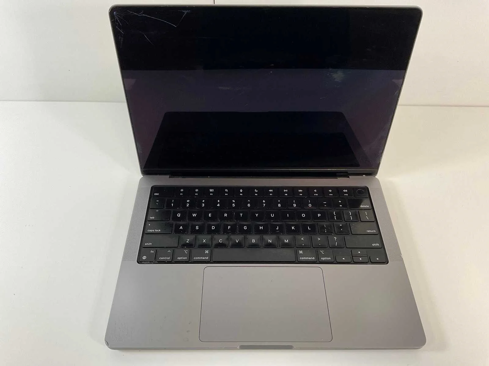 MacBook Pro 14”, M1 Pro, 16 GB RAM, 500 GB NVMe Laptop; - Screen cracked, - Excl. charger. Merk: Apple Processor type: M1 Pro Processorsnelheid Ghz: 3.20 RAM Geheugen: 16GB RAM Geheugen Type: DDR5 Totale opslagcapaciteit: 500GB Type datadrager: NVMe Zonder adapter: true Beeldscherm type: IPS Resolutie: 1920x1200 Beelddiagonaal: 14'' Wifi: true Bluetooth: true USB-Type: Type C USB poorten: 3 Webcam: true HDMI: 1