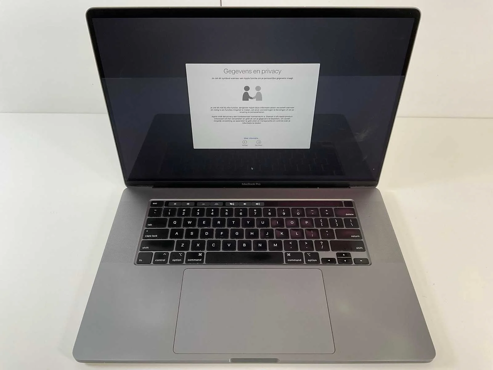 MacBook Pro 16”, Core(TM) i7 9th Gen, 16 GB RAM, 500 GB NVMe, AMD Radeon RX 5500M 4 GB Laptop; - Screen scratched/ lightly stained, - Excl. charger. Merk: Apple Processor type: Intel(R) Core(TM) i7-9750H Processorsnelheid Ghz: 2.60 RAM Geheugen: 16GB RAM Geheugen Type: DDR4 Totale opslagcapaciteit: 500GB Type datadrager: NVMe Type videokaart: AMD Radeon RX 5500M 4 GB Zonder adapter: true Beeldscherm type: IPS Resolutie: 3072x1920 Beelddiagonaal: 16'' Wifi: true Bluetooth: true USB-Type: Type C USB poorten: 4 Webcam: true