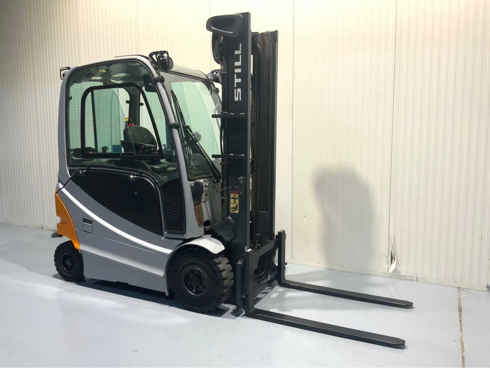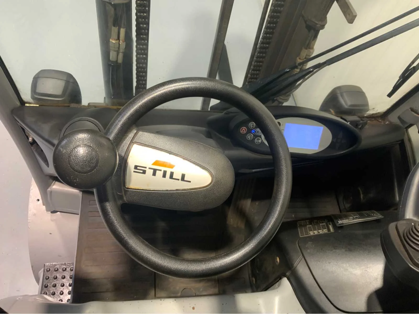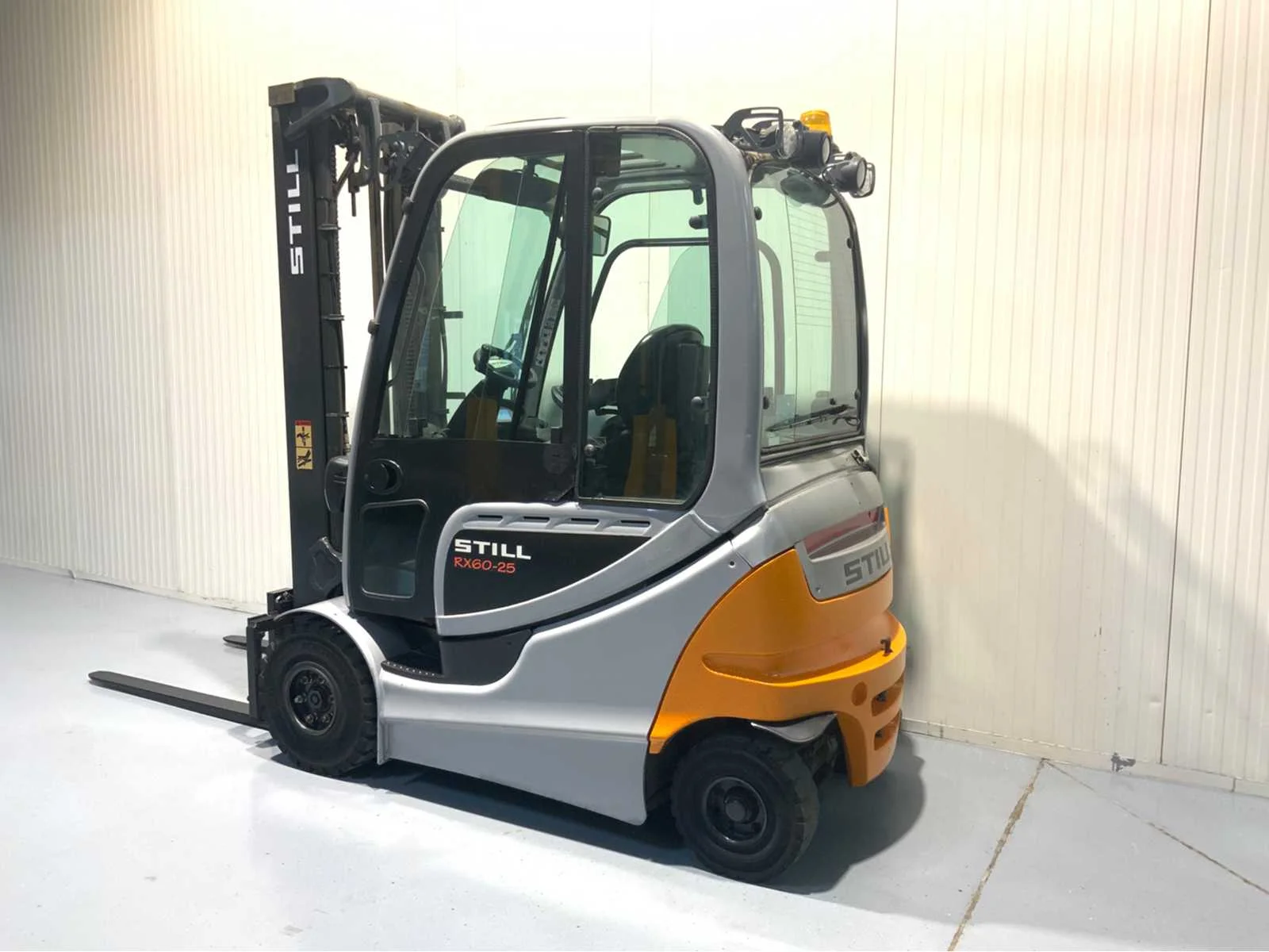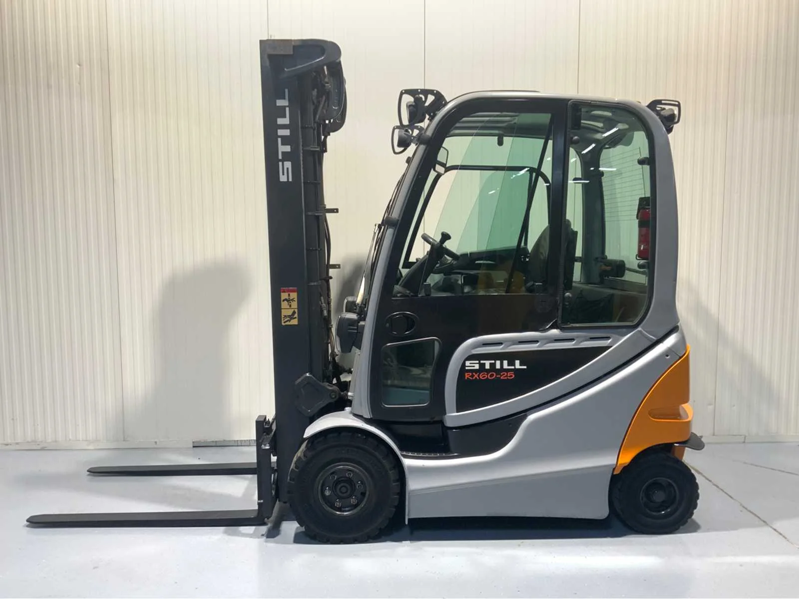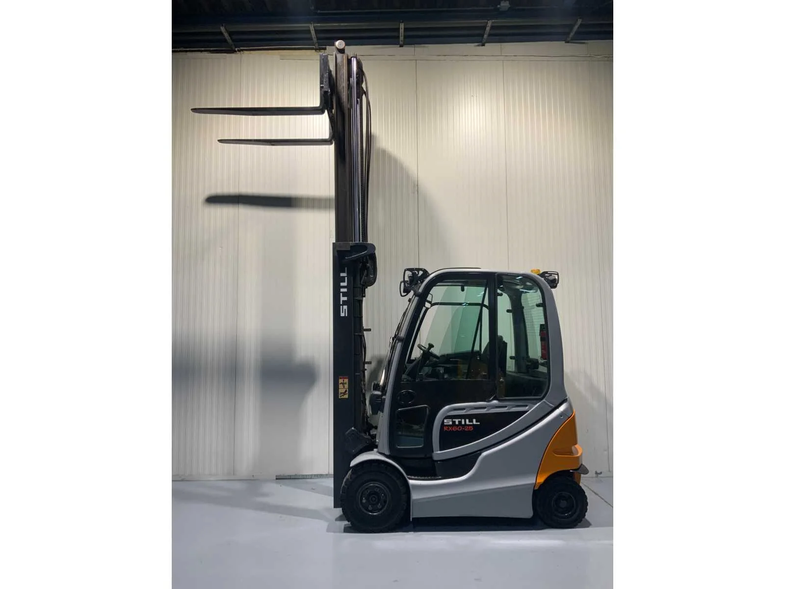 Extra opties: Led verlichting voorzijde, Led verstralers voorkant, Led verlichting achterzijde, Blue spot achterzijde, Fingertip besturing, Zwaailamp, 4de functie tot vorkenbord. Merk: Still Type: RX60-25 Bouwjaar: 2016 Brandstof: Elektrisch Mast: Duplex Soort band: Volrubber banden Aantal wielen: 4 Afgelezen urenstand: 1873 Duplex mast: true Eigen gewicht: 4731kg Hefvermogen: 2500kg Lepellengte: 1200mm Max. hefhoogte: 3670mm Hefhoogte: 3670mm Totale afmeting L: 3600mm Totale afmeting Breedte: 1200mm Totale afmeting Hoogte: 2500mm