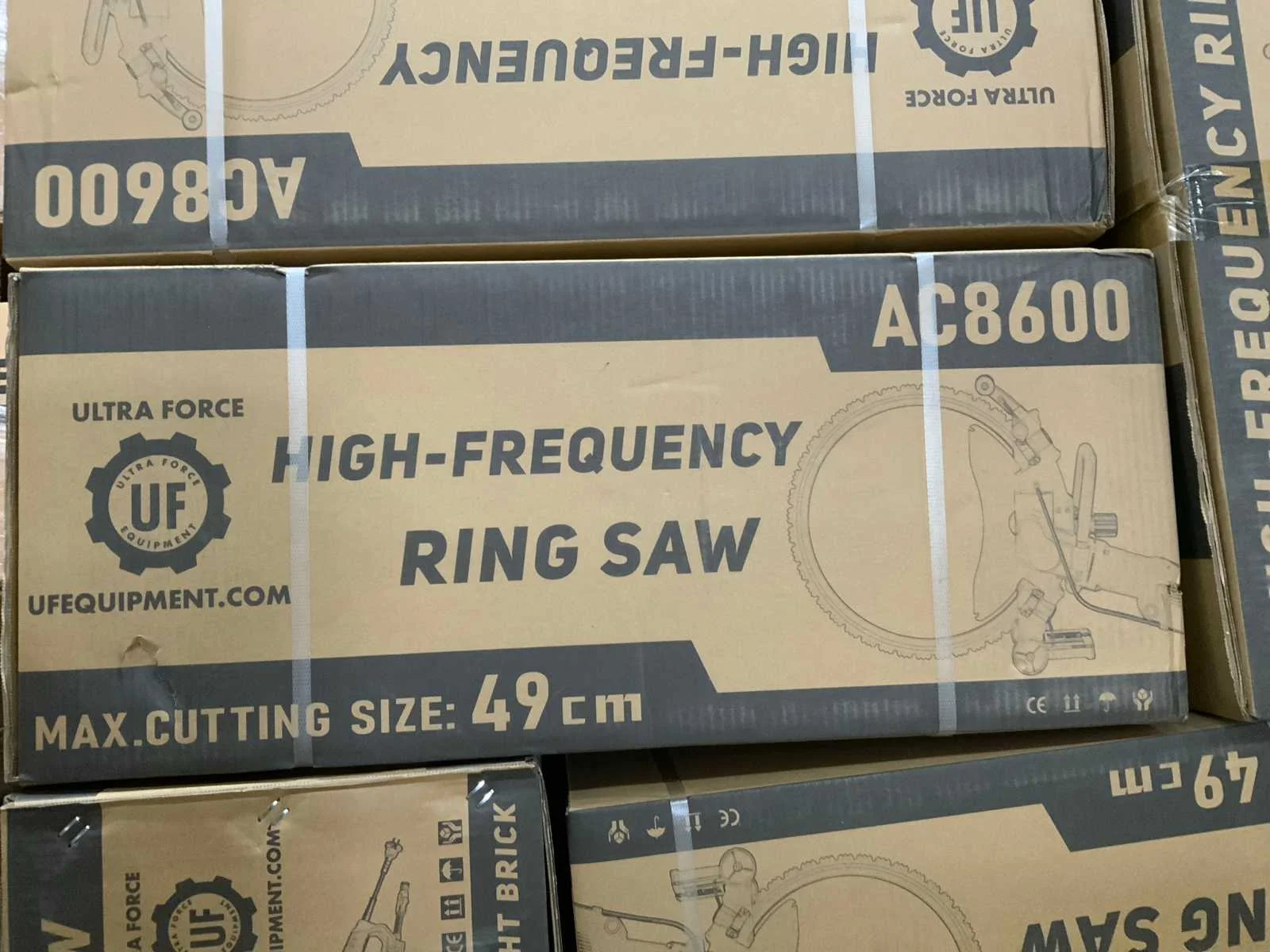 Oil-free & Brushless Ring Saw Rated power 5000w Constant RPM 1500rpm Voltage AC220V Max cutting size 49 cm Blade diameter 600 mm nw 11,5 kg Merk: Ultra Force Equipment Type: AC8600 Bouwjaar: 2025 Diameter zaagblad: 600mm Motorvermogen (kW): 5kW Eigen gewicht: 12kg Totale afmeting L: 700mm Totale afmeting Breedte: 660mm Totale afmeting Hoogte: 300mm
