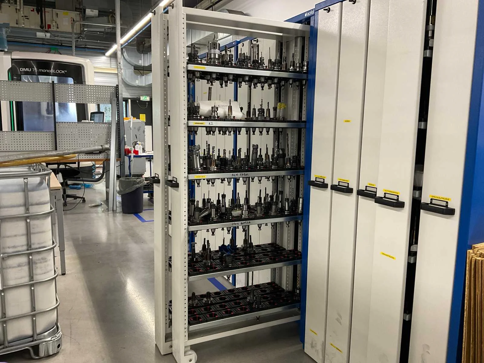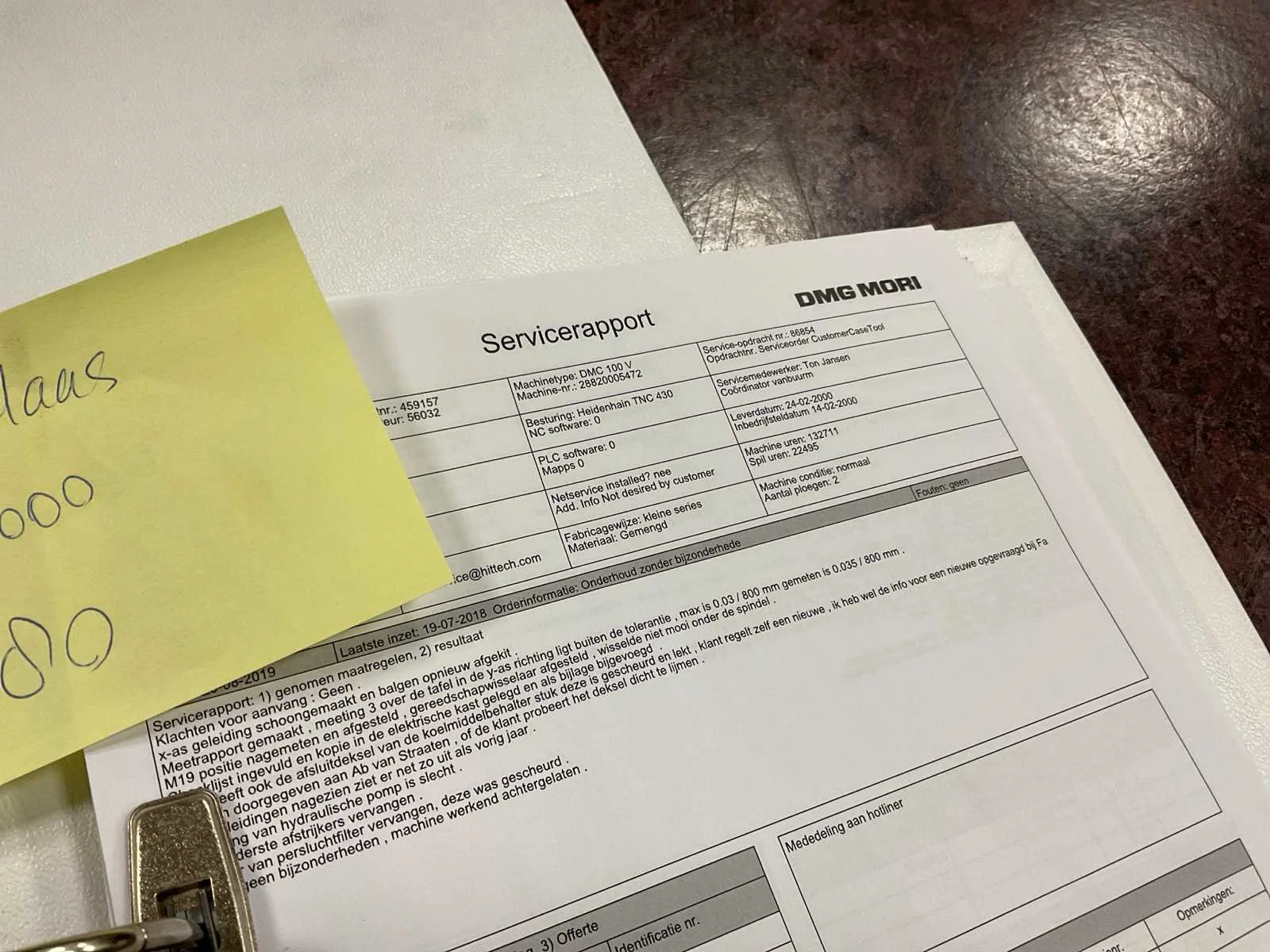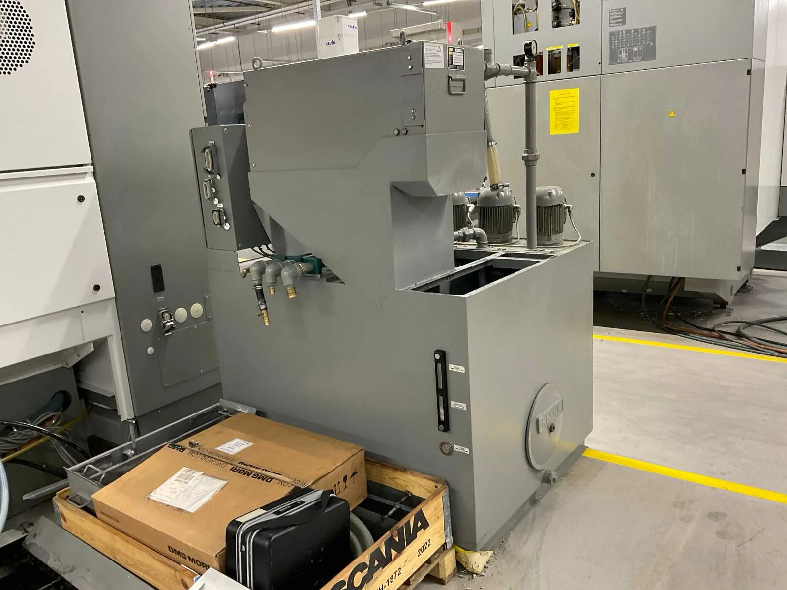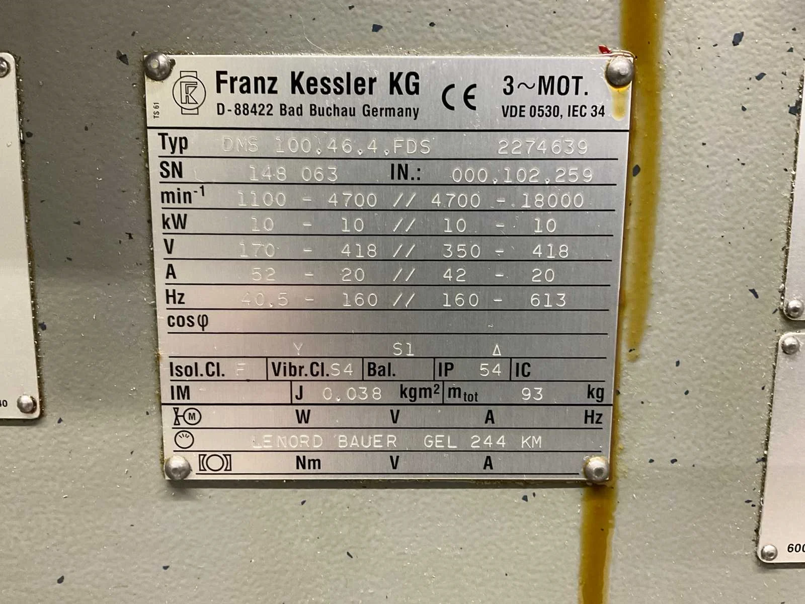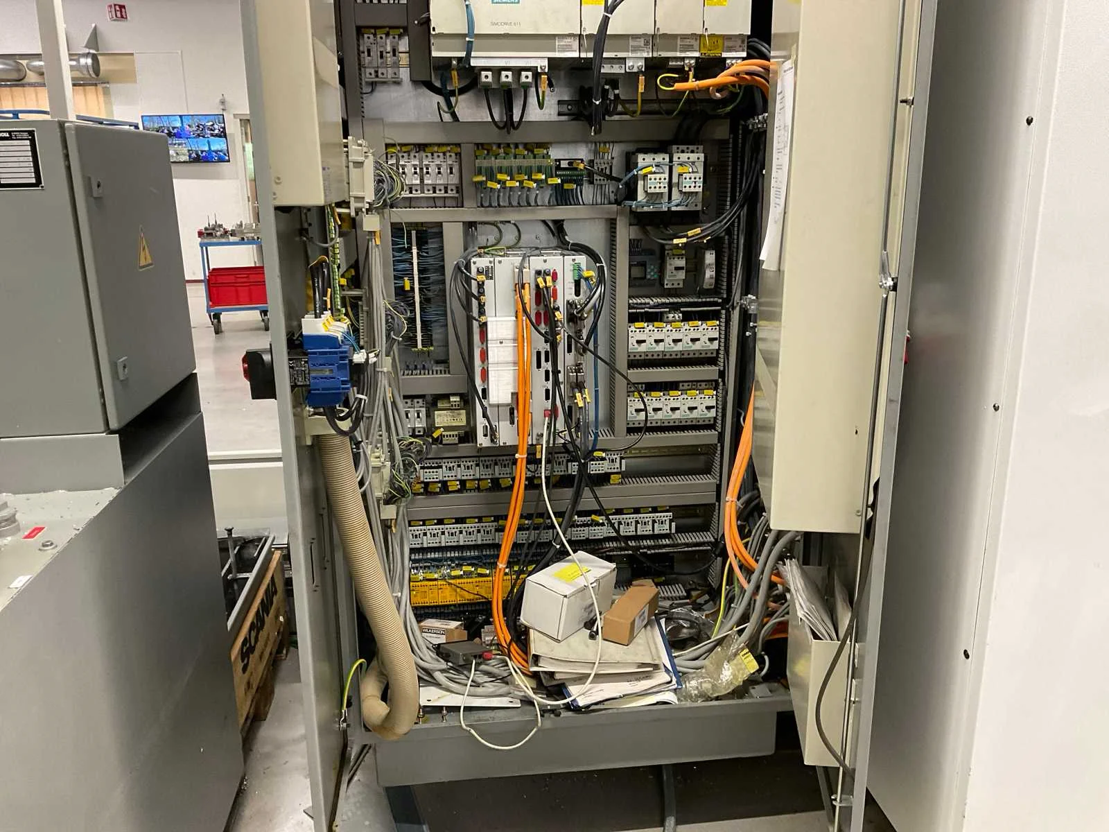 Voorzien van: spanentransporteur (4500mm), Knoll RF 200/1100 koelsysteem, DMG bedieningspaneel, documentatie, (zonder T-gleuf materiaalklem), gereedschapswisselstation (30 plaatsen), Merk: Deckel Type: DMC 100V Hi-Dyn Bouwjaar: 1999 Serienummer: 28820005472 Verplaatsing x-as: 1000mm Verplaatsing y-as: 800mm Verplaatsing z-as: 500mm Opname: SK40 Snelheid tot n =: 30000rpm T-gleuf opspantafelafmeting L: 800mm T-gleuf opspantafelafmeting B: 1250mm Werkstuk gewicht max.: 1200kg Spanentransporteur: true CNC-besturing, merk, type: DMG Machinegewicht: 9000kg Afmeting l: 3100mm Afmeting b: 2400mm Afmeting h: 2600mm