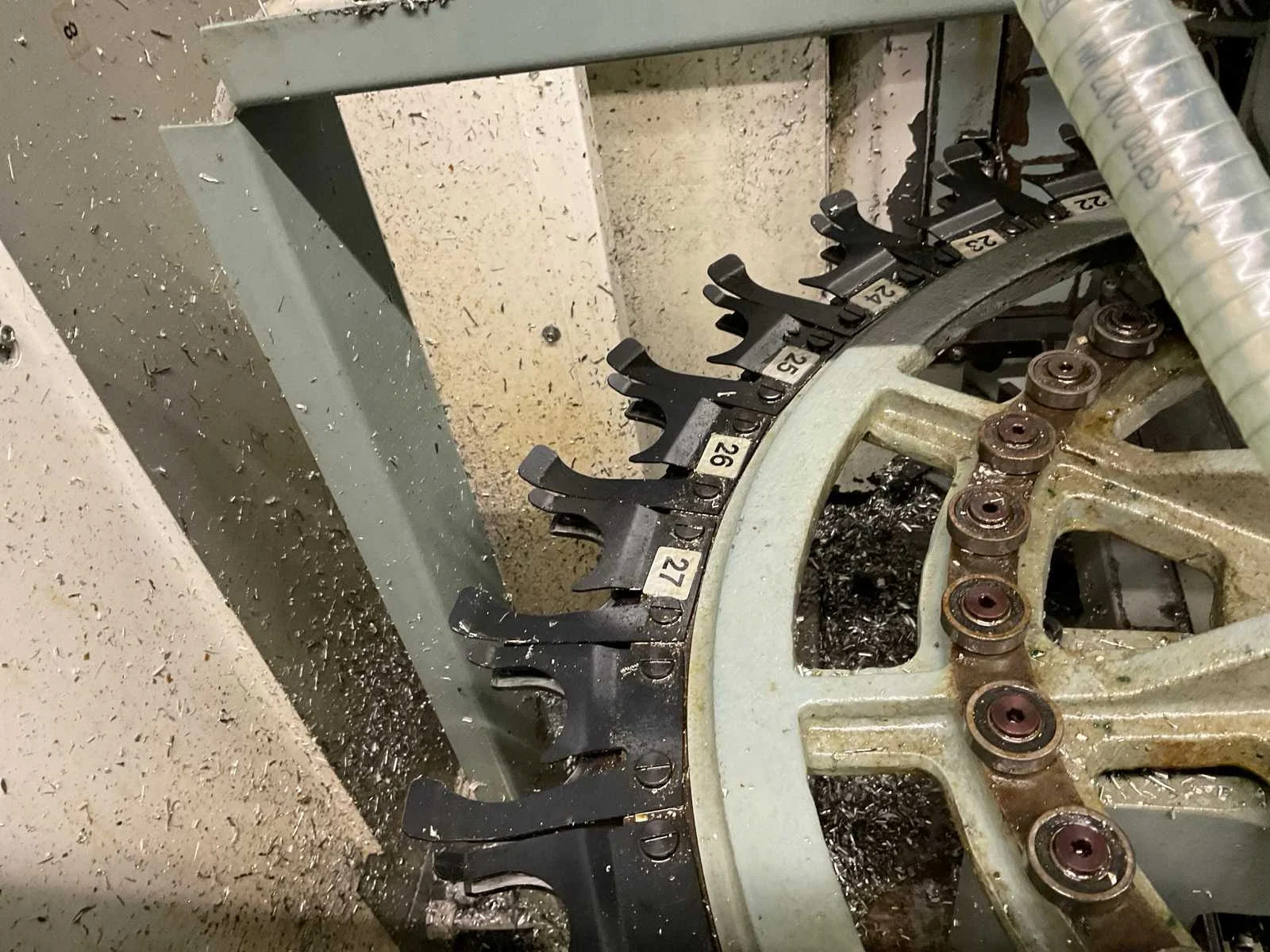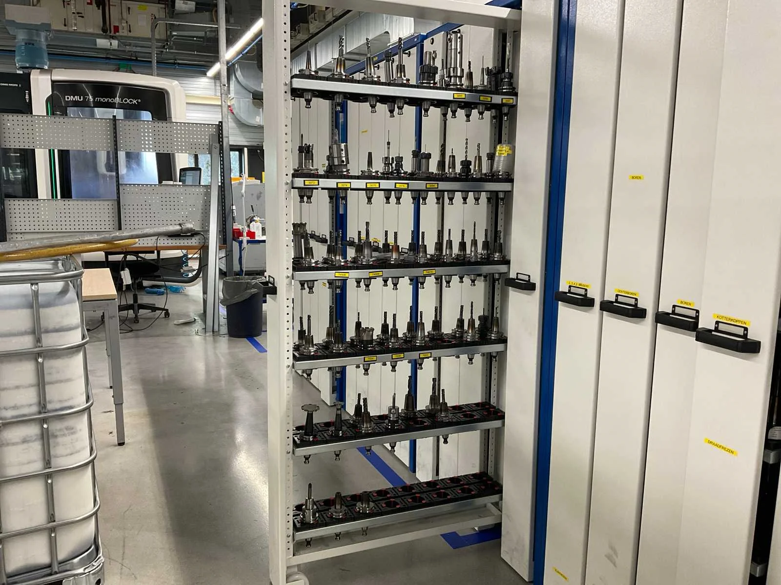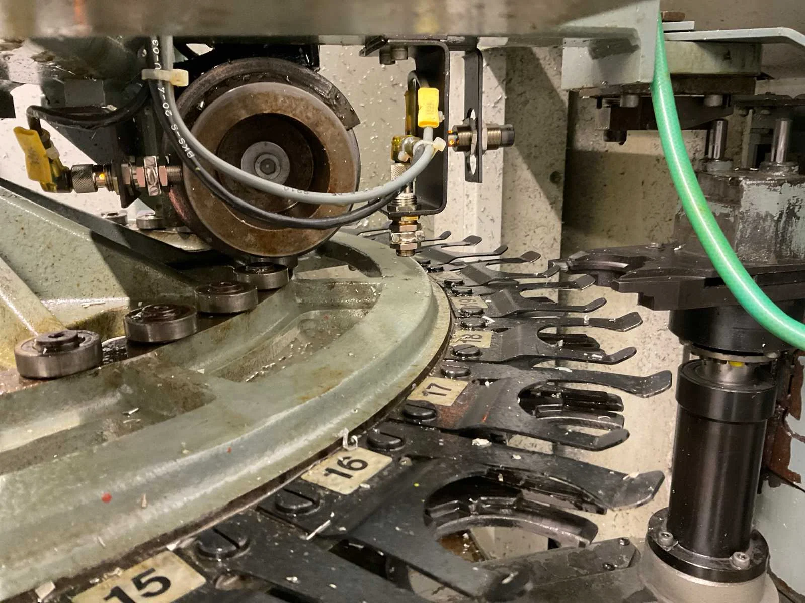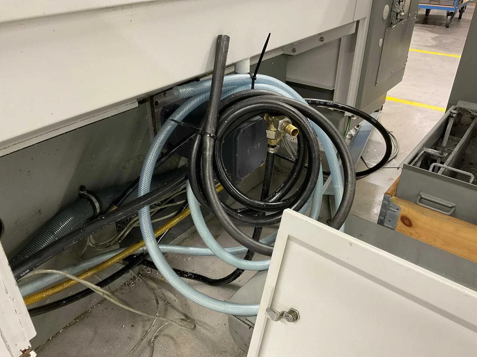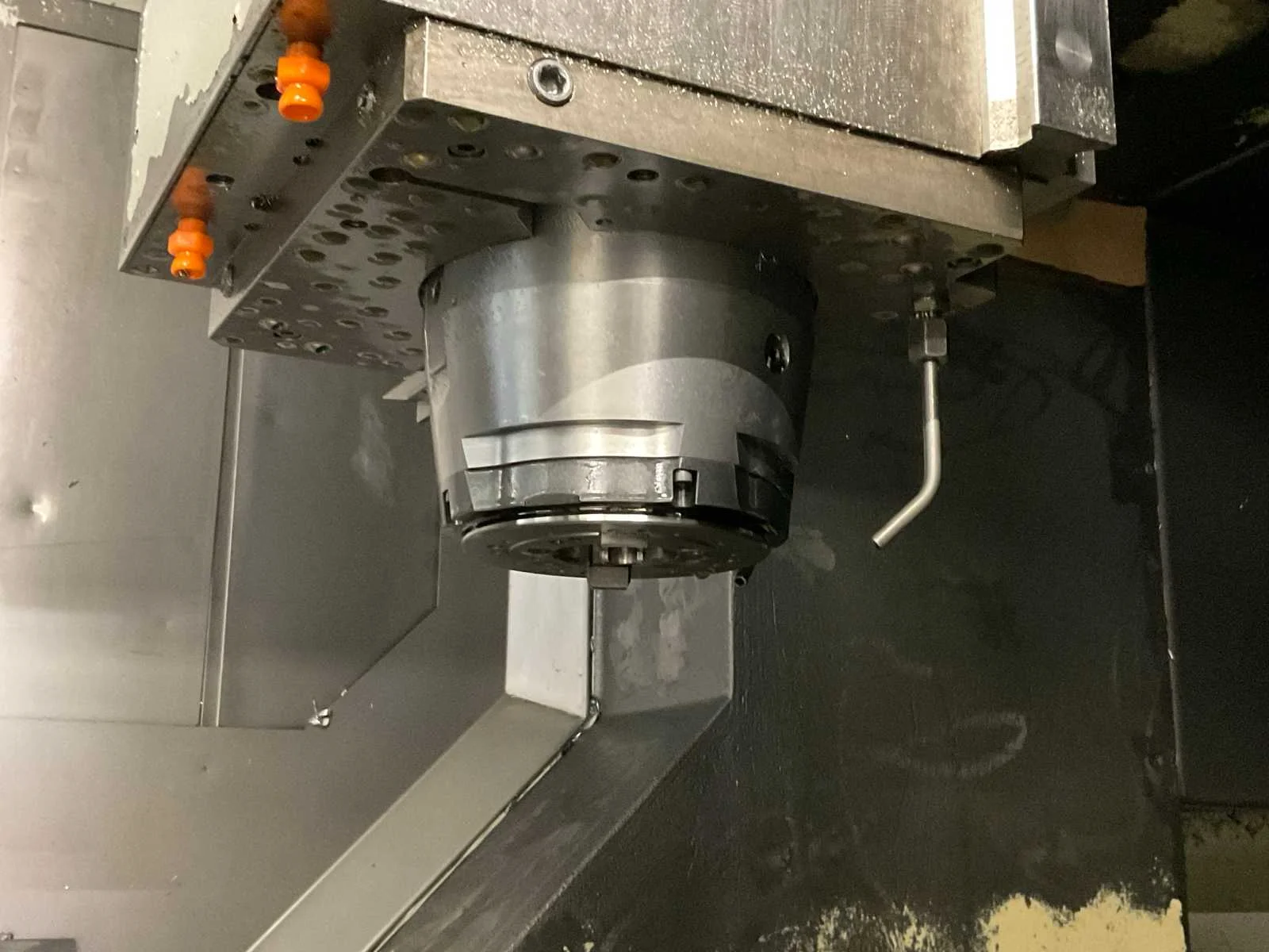 Voorzien van: spanentransporteur (4500mm), Knoll RF 200/1100 koelsysteem, DMG bedieningspaneel, documentatie, (zonder T-gleuf materiaalklem), gereedschapswisselstation (30 plaatsen), Merk: Deckel Type: DMC 100V Hi-Dyn Bouwjaar: 1999 Serienummer: 28820005472 Verplaatsing x-as: 1000mm Verplaatsing y-as: 800mm Verplaatsing z-as: 500mm Opname: SK40 Snelheid tot n =: 30000rpm T-gleuf opspantafelafmeting L: 800mm T-gleuf opspantafelafmeting B: 1250mm Werkstuk gewicht max.: 1200kg Spanentransporteur: true CNC-besturing, merk, type: DMG Machinegewicht: 9000kg Afmeting l: 3100mm Afmeting b: 2400mm Afmeting h: 2600mm