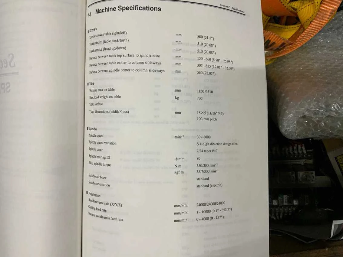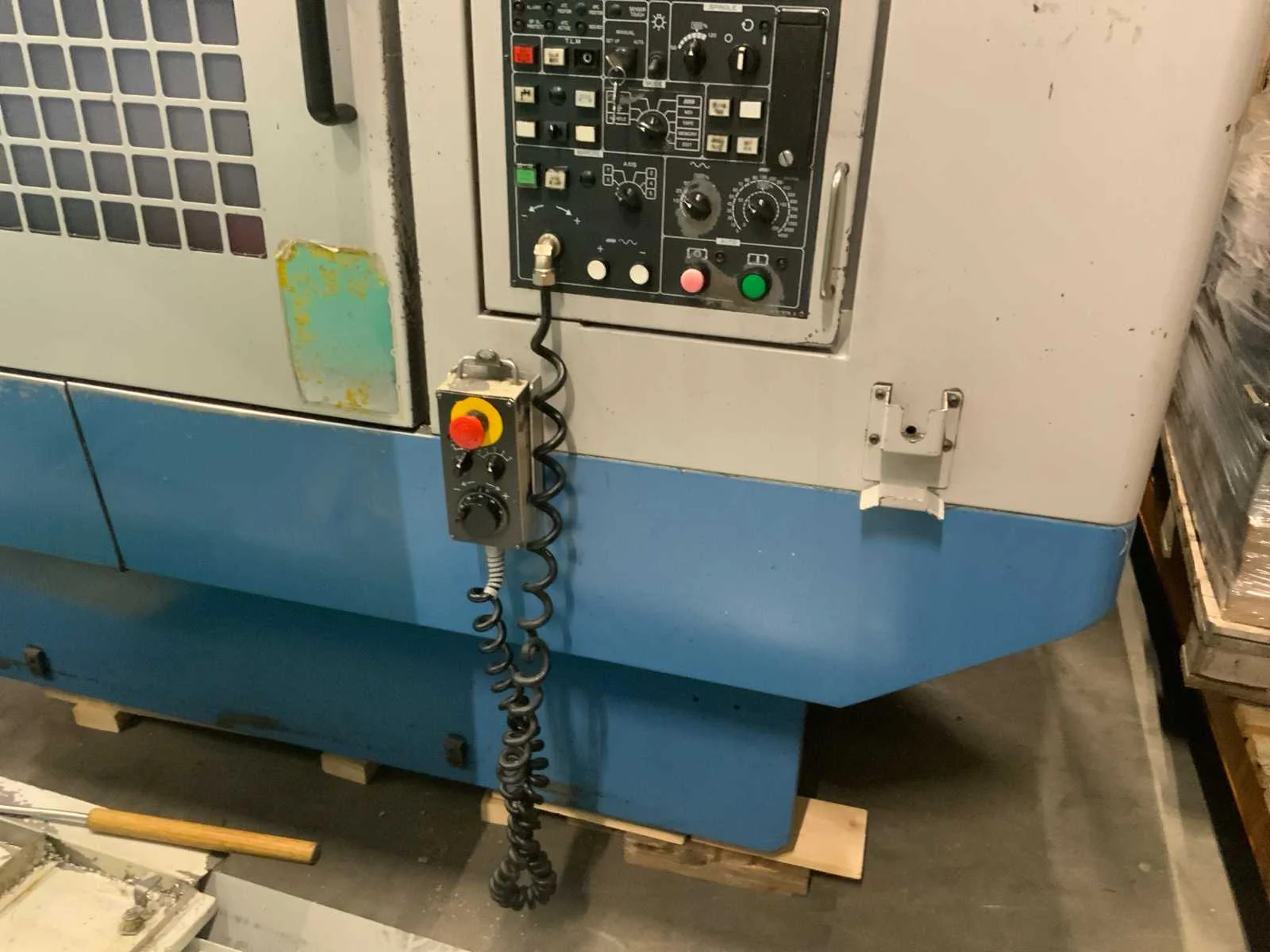 Let op!! ophalen op afspraak Merk: Matsuura Type: MC-800VG Bouwjaar: 1998 Serienummer: 980713212 Opname iso: JOS B 6339 tool scank 40T Verplaatsing x-as: 800mm Verplaatsing y-as: 510mm Verplaatsing z-as: 510mm Snelheid van n =: 30rpm Snelheid tot n =: 8000rpm Werkstuk gewicht max.: 700kg T-gleuf opspantafelafmeting B: 510mm T-gleuf opspantafelafmeting L: 1150mm Aansluiting: 400V Totale afmeting Hoogte: 2970mm Totale afmeting Breedte: 4245mm Totale afmeting L: 4410mm Machinegewicht: 6400kg