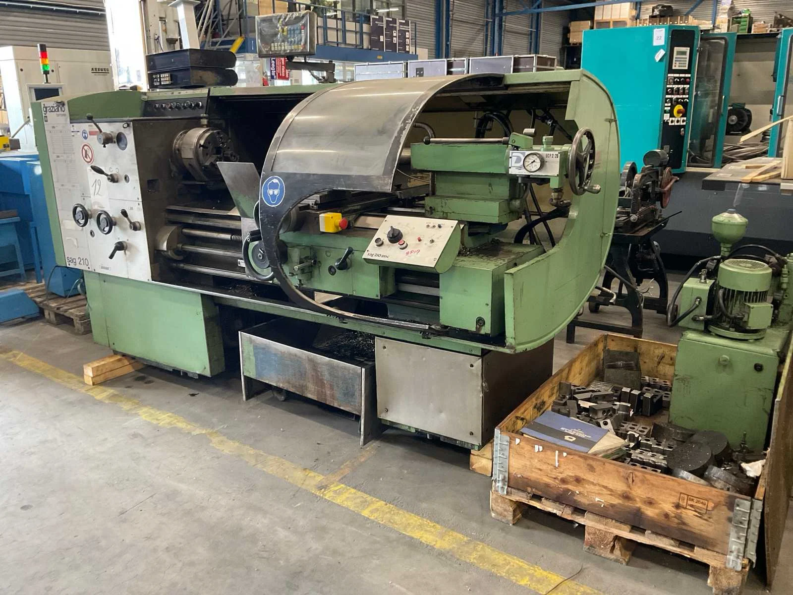 Voorzien van DITRON D60 -2V digitale X-Y uitlezing en diverse machine toebehoren in pallet Merk: Graziano Tortona Type: sag 210 imc Draailengte: 1000mm Draai: 500mm Holle spil Ø: 35mm Aantal snelheden: 4 Koelmiddelpomp: true Aansluiting: 400V Afmeting l: 2850mm Afmeting b: 1500mm Afmeting h: 850mm