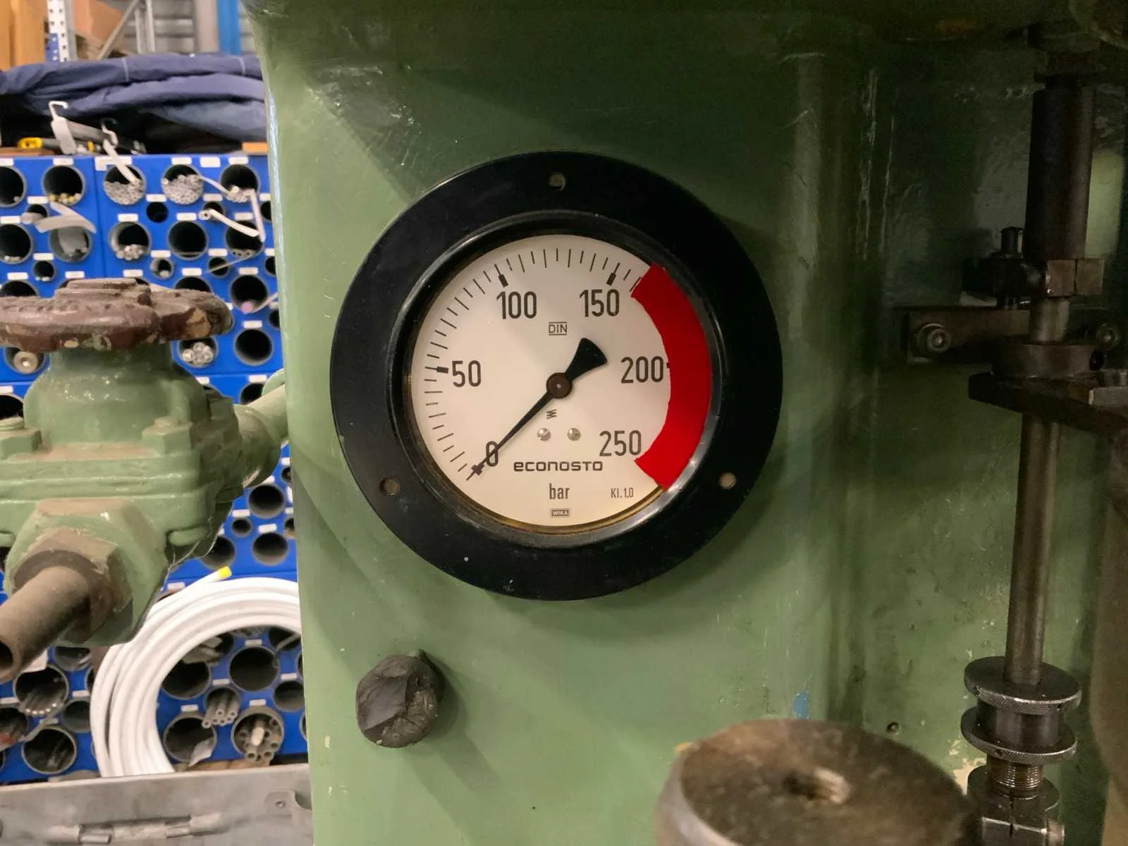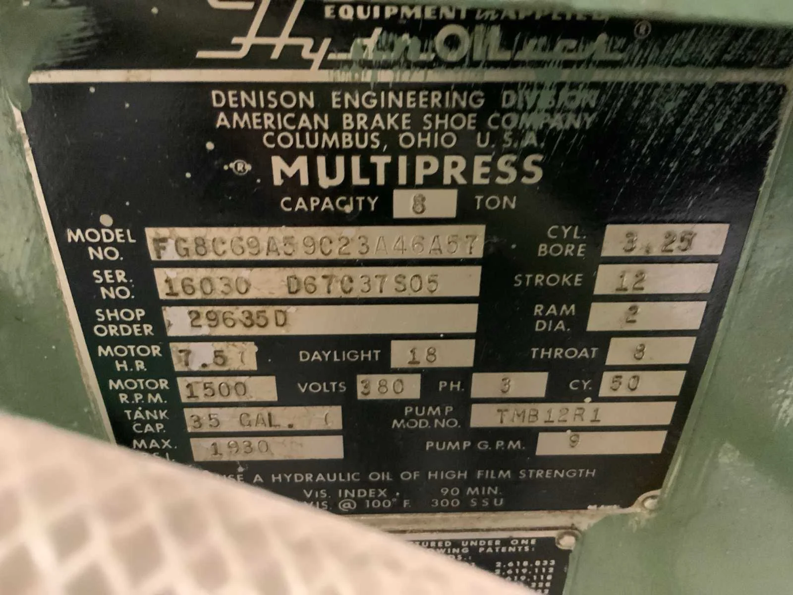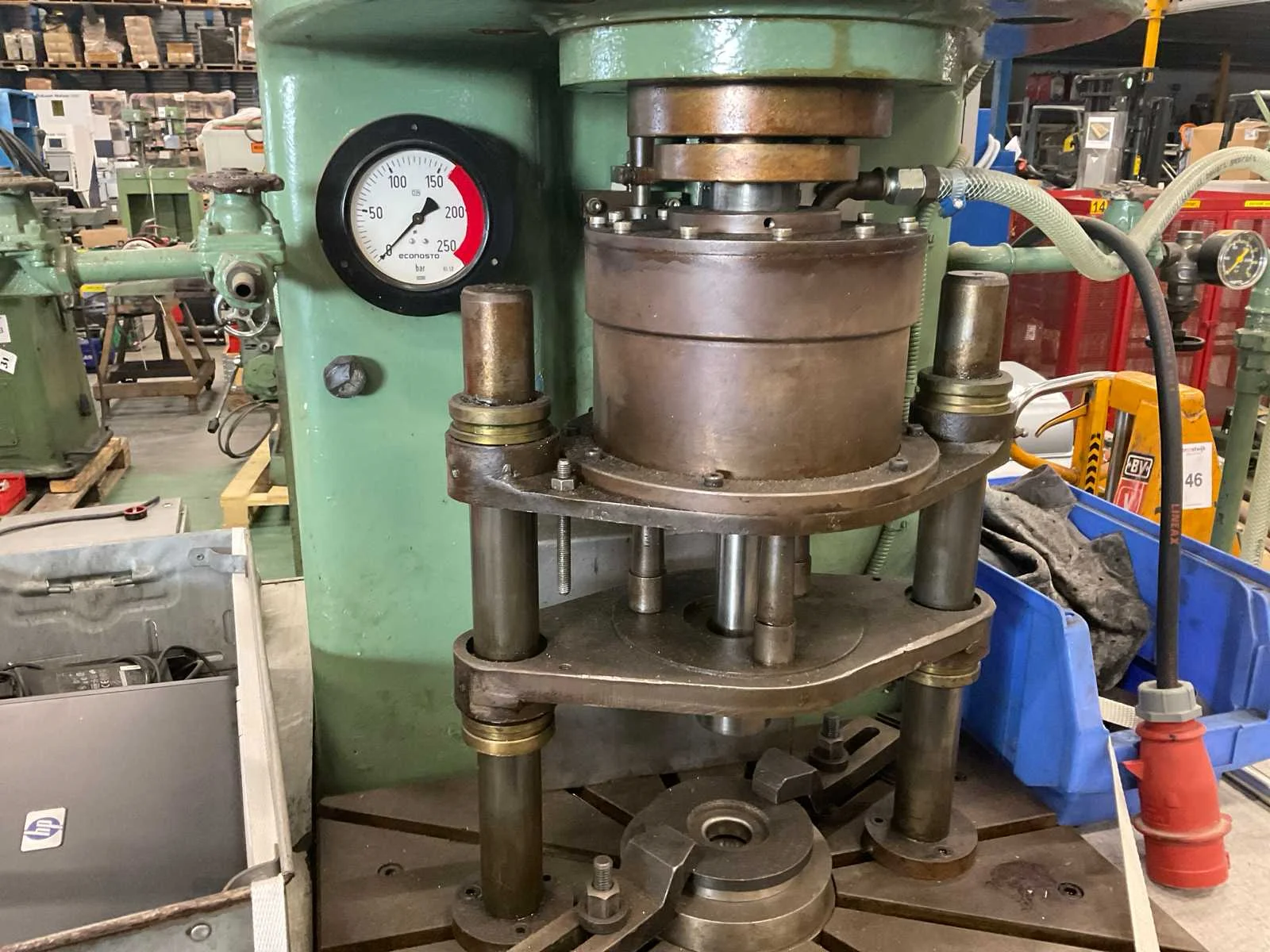 Voorzien van T-gleuf opspantafel (550x350 mm), inclusief HP laptop. Let op!! ophalen 3e uitleveringsdag Merk: Denison Type: Multipress Serienummer: 16030 D67C37S05 Capaciteit.: 8t Slag: 300mm Aansluiting: 400V Afmeting l: 1170mm Afmeting b: 1100mm Afmeting h: 1800mm
