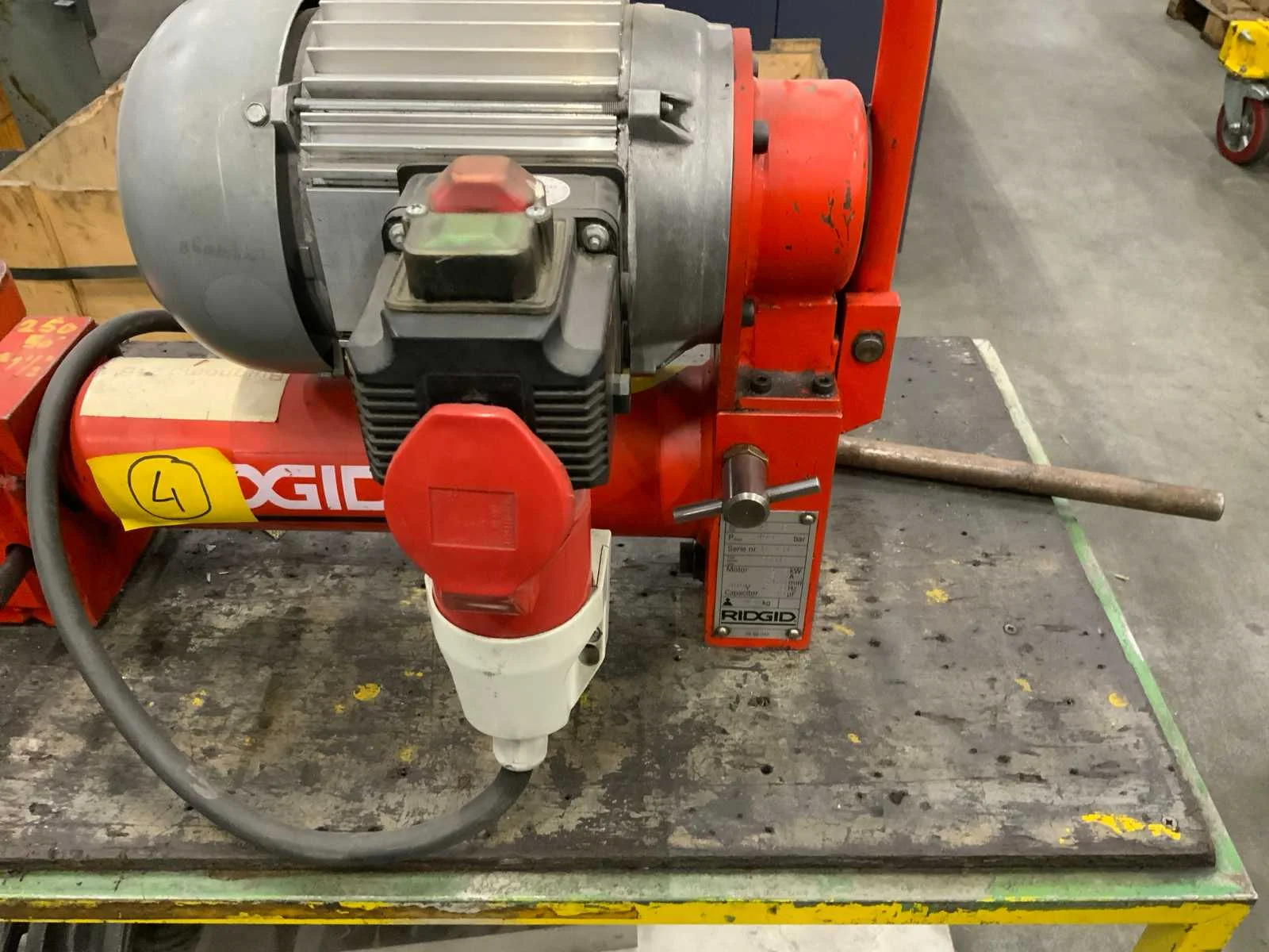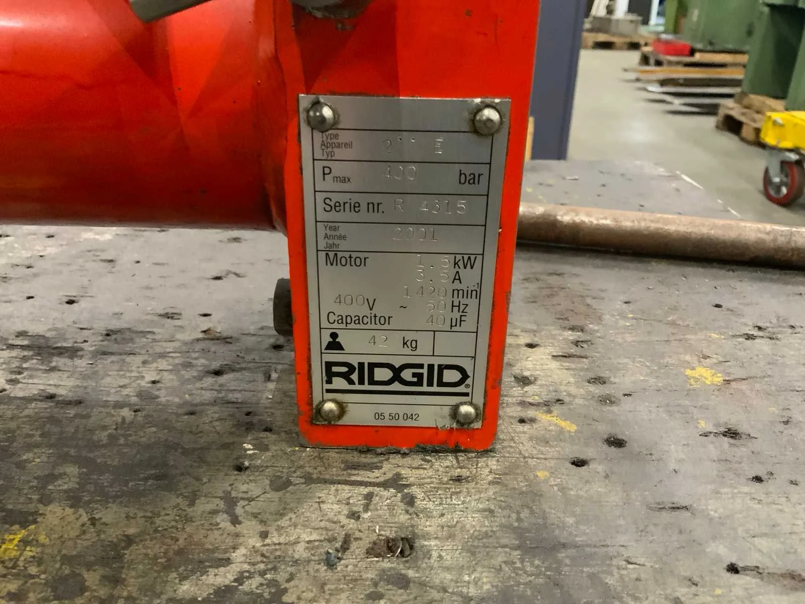 Capaciteit: 3/8” - 2”, op verrijdbare tafel, inclusief buigmallen Merk: Ridgid Bouwjaar: 2001 Serienummer: 4315 Motorvermogen (kW): 1.5kW Aansluiting: 400V Machinegewicht: 42kg Afmeting l: 960mm Afmeting b: 650mm Afmeting h: 1150mm