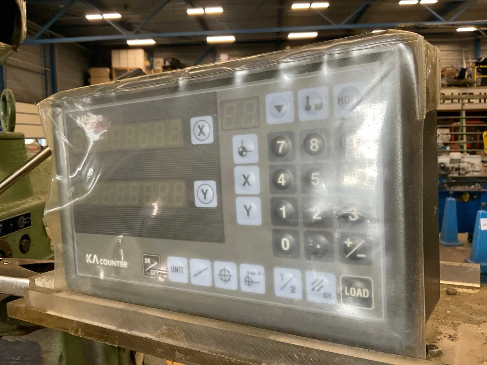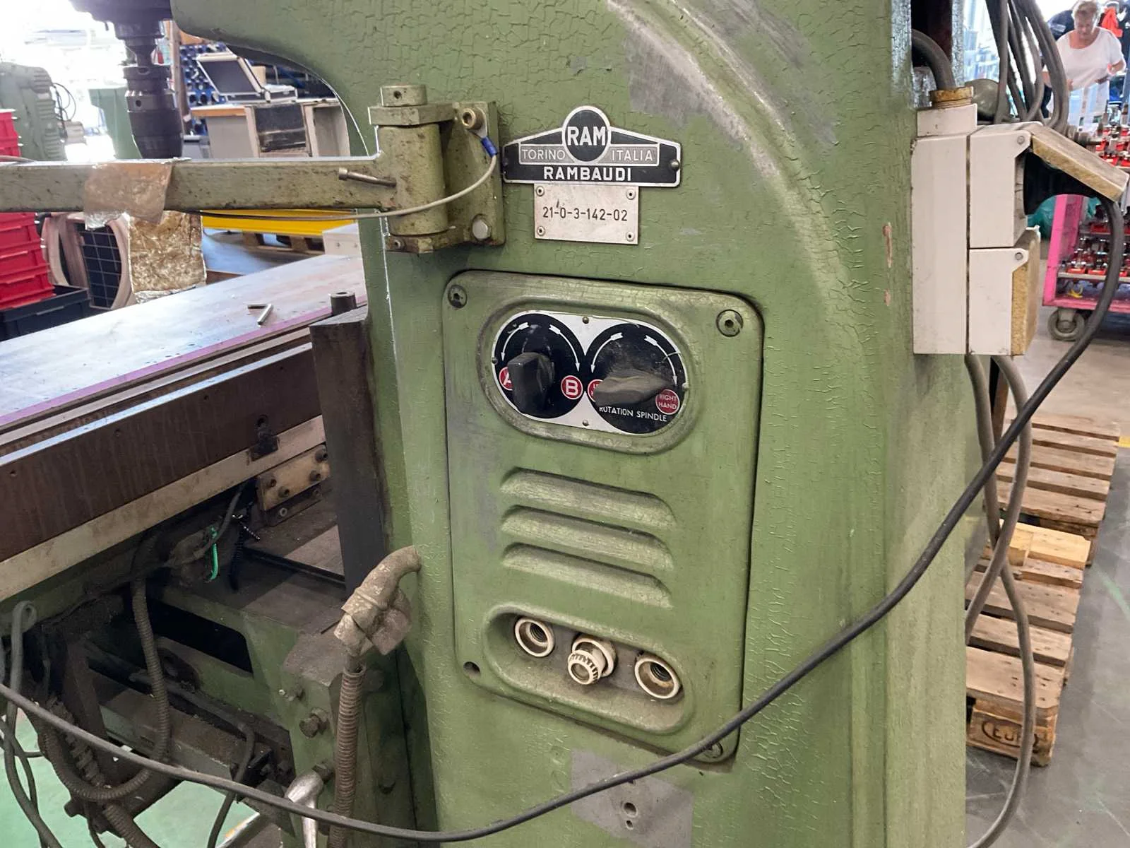 Voorzien van Mitutoyo digitale teller, model: K 12 Merk: Rambaudi Aantal snelheden: 8 Snelheid van n =: 500rpm Snelheid tot n =: 4750rpm T-gleuf opspantafelafmeting L: 1215mm T-gleuf opspantafelafmeting B: 300mm Aansluiting: 380V Afmeting l: 1550mm Afmeting b: 1750mm Afmeting h: 2200mm