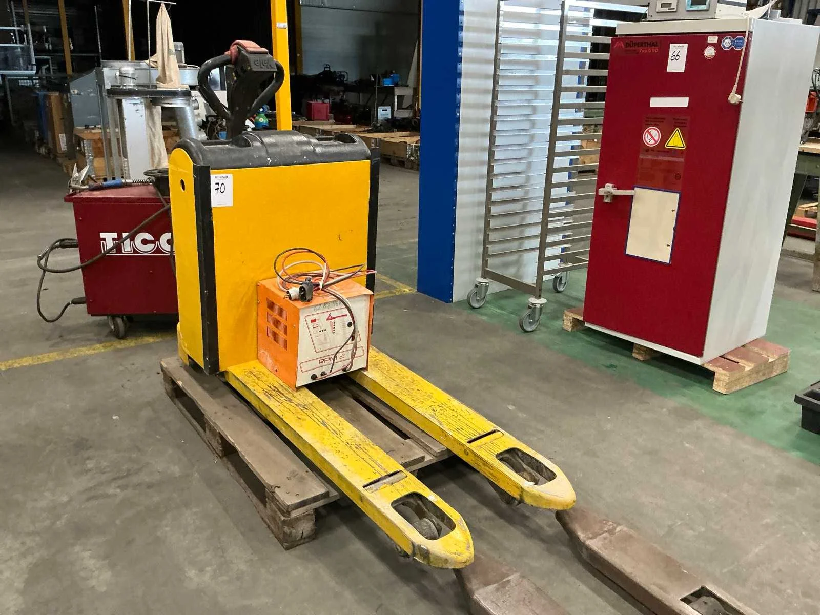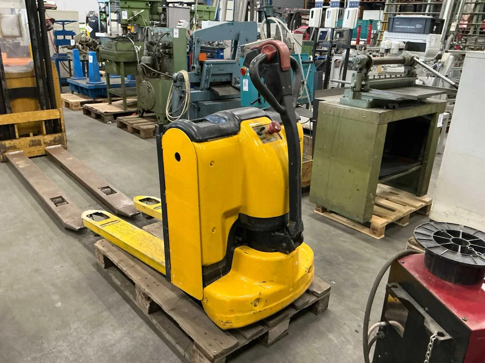 Merk: Yale Type: MP18 Bouwjaar: 2000 Serienummer: A841X03067X Hefvermogen: 1800kg Lepellengte: 1180mm Accu lader: true Afgelezen urenstand: 5535 Totale afmeting L: 1750mm Totale afmeting Breedte: 710mm Totale afmeting Hoogte: 1300mm