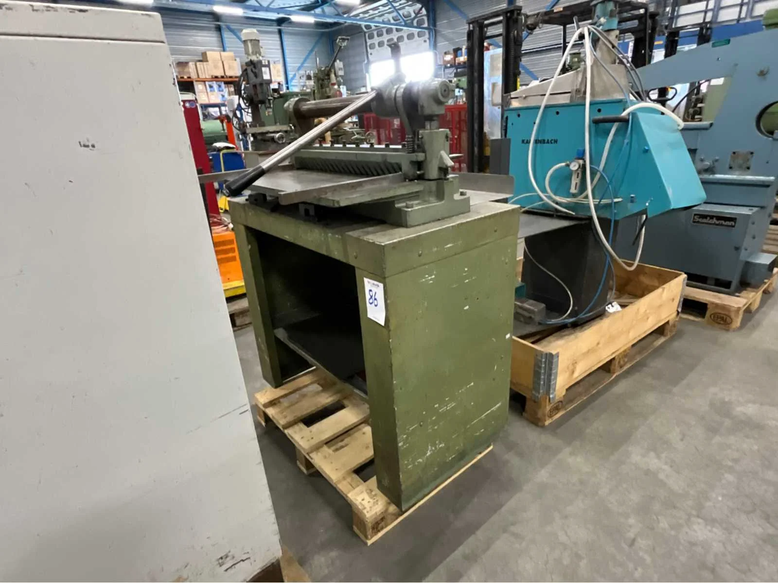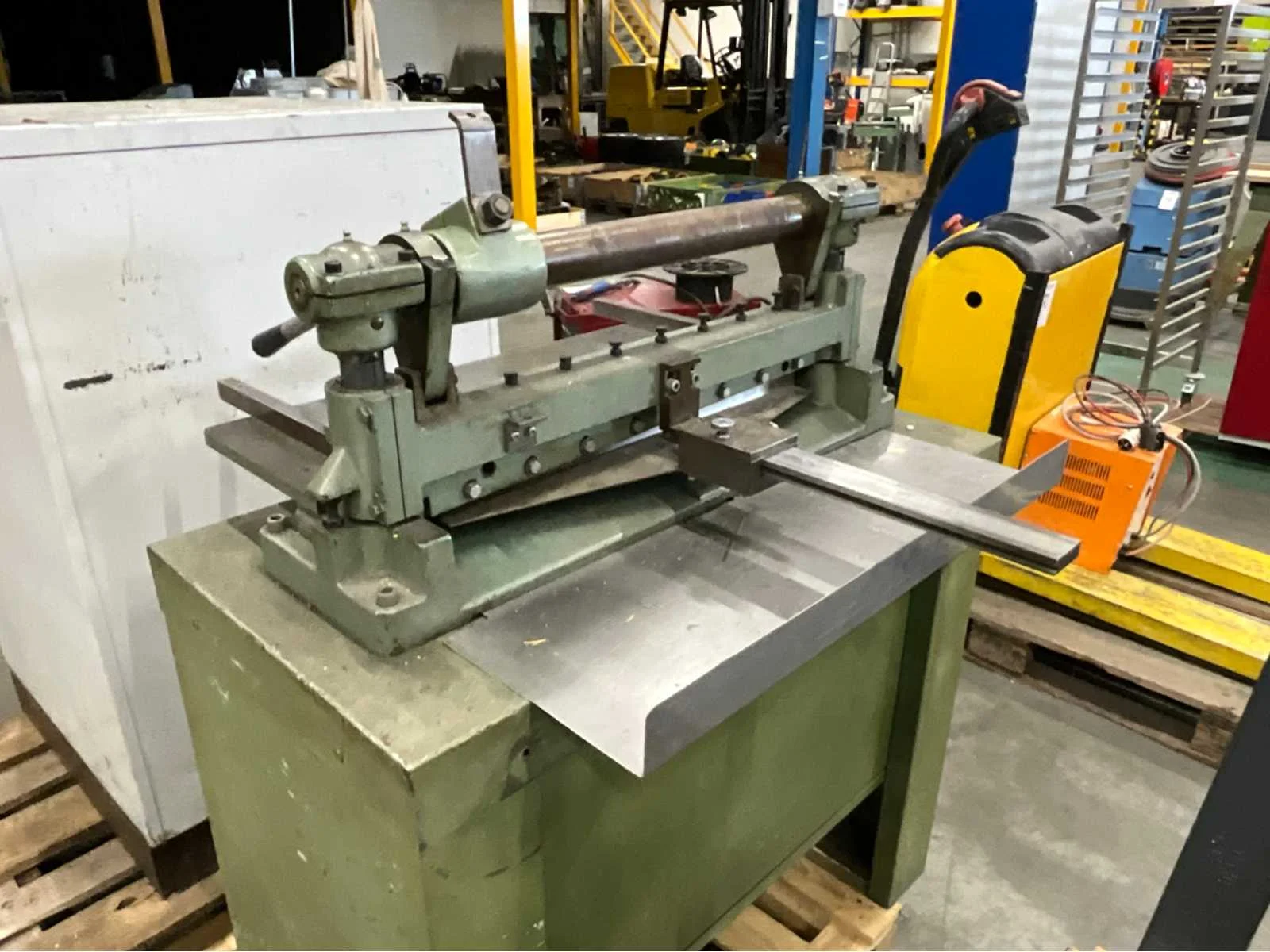 Maximale capaciteit 0,5 mm; werkbreedte 600 mm; regelbare achteraanslag Totale afmeting L: 960mm Totale afmeting Breedte: 760mm Totale afmeting Hoogte: 1200mm