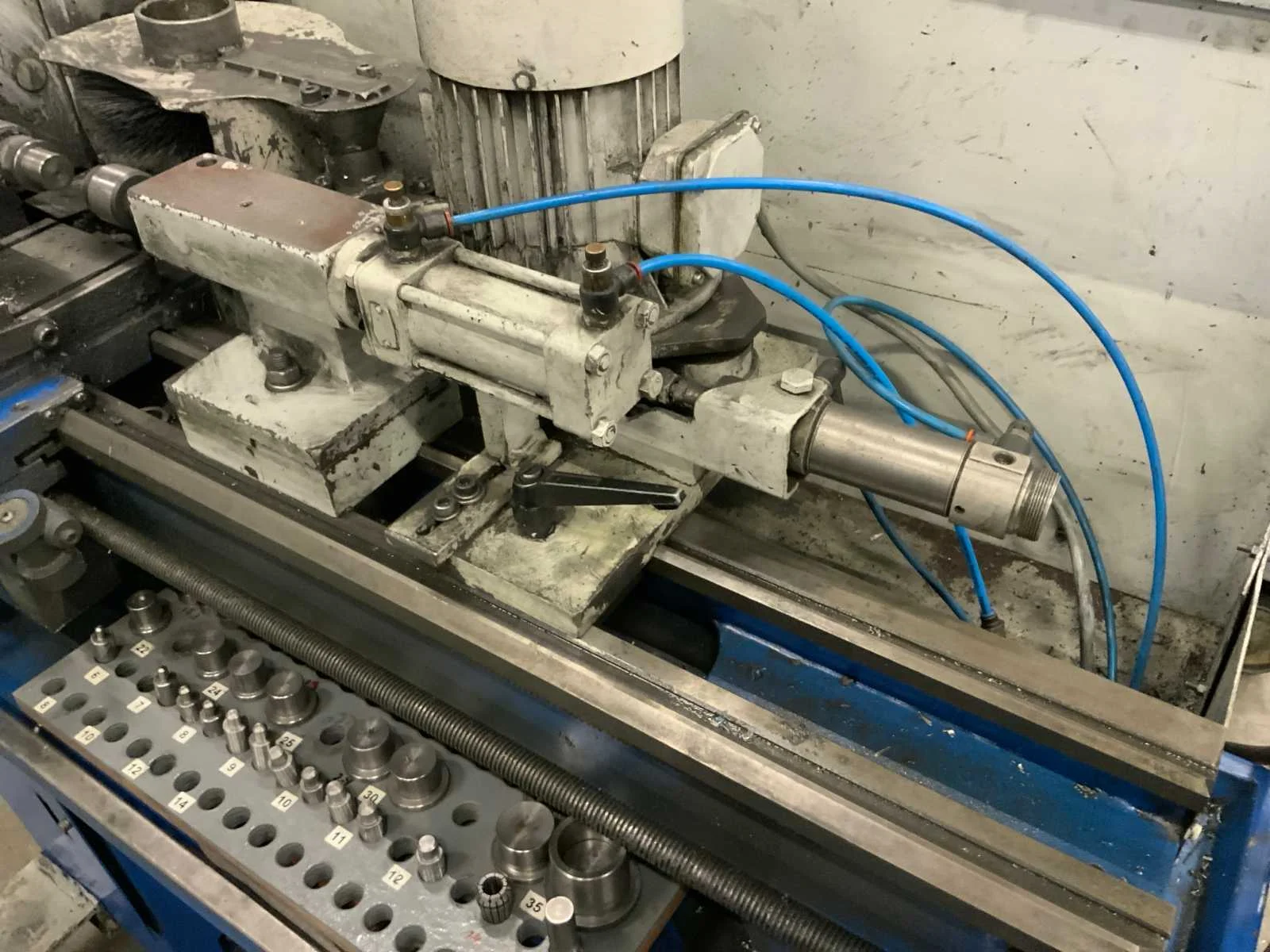 Voorzien van pneumatische gevoede staalborstel inrichting en tegencenter, op verrijdbaar onderstel. inclusief toebehoren Bouwjaar: 2002 Serienummer: 0260725 Draailengte: 500mm Draai: 260mm Holle spil Ø: 28mm Aantal snelheden: 6 Snelheid van n =: 125rpm Snelheid tot n =: 2000rpm Aansluiting: 380V Afmeting l: 1460mm Afmeting b: 820mm Afmeting h: 3270mm